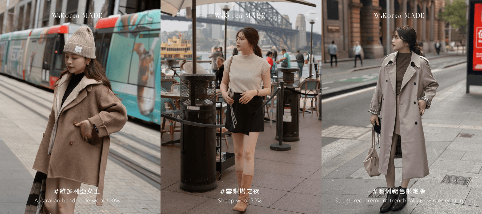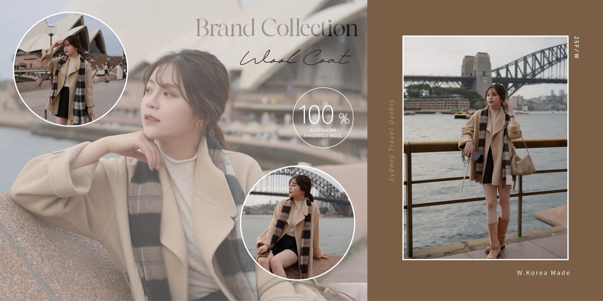 W.Korea #布里斯本河岸 喀什米爾100%澳洲羊毛前短後長立領手工大衣(0.85kg