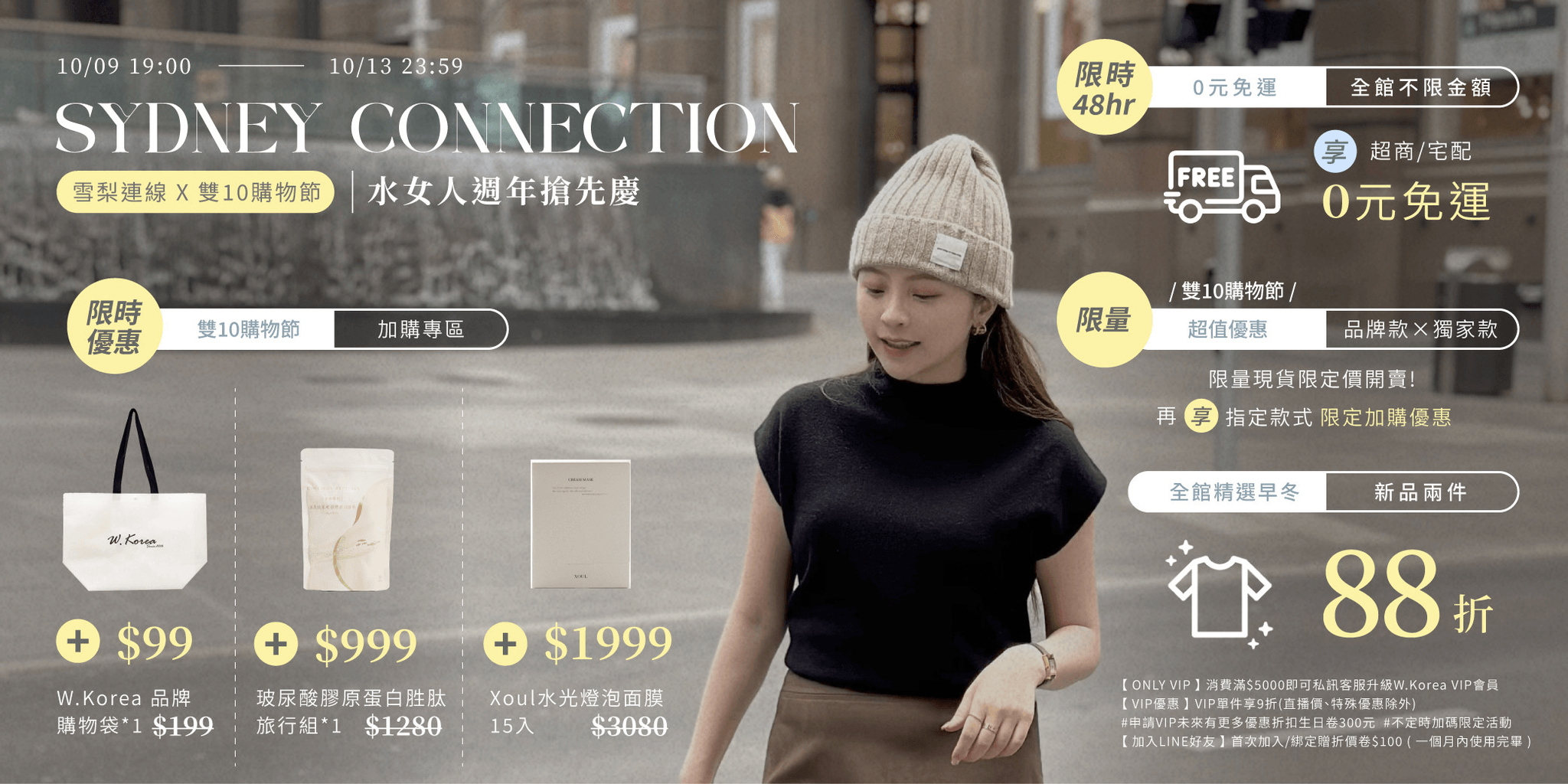 🎊雪梨連線 X 雙10購物節水女人週年搶先慶|全館精選早冬新品兩件88折🎊