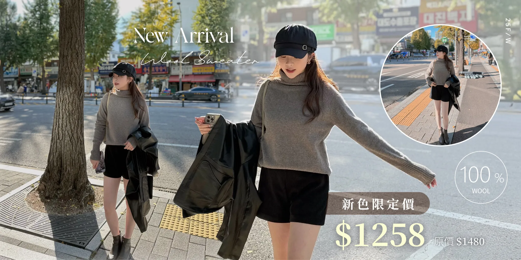 A81705#限量新色完售倒數 #摩天輪之夜 100%羊毛微落肩側開衩高領毛衣
