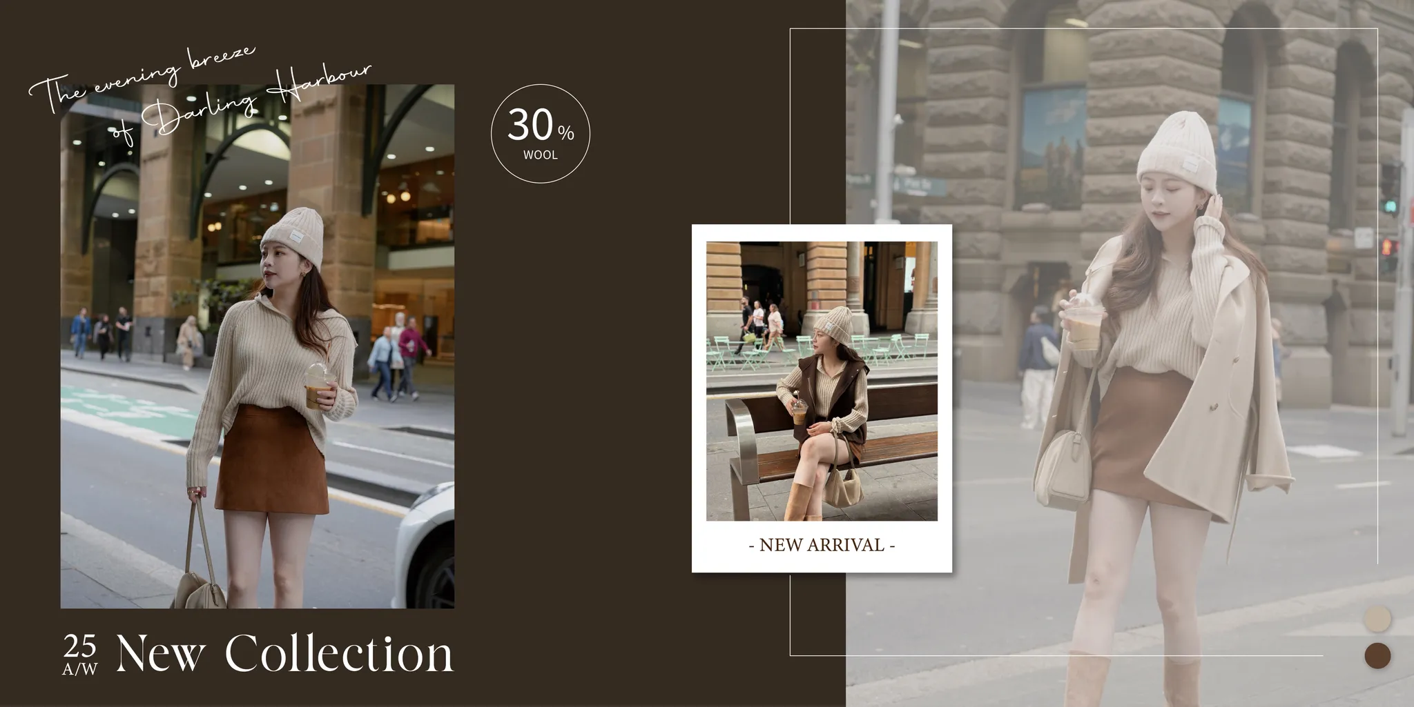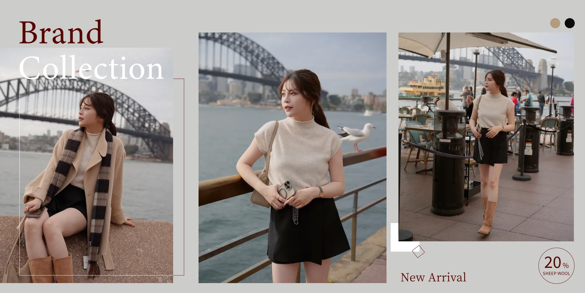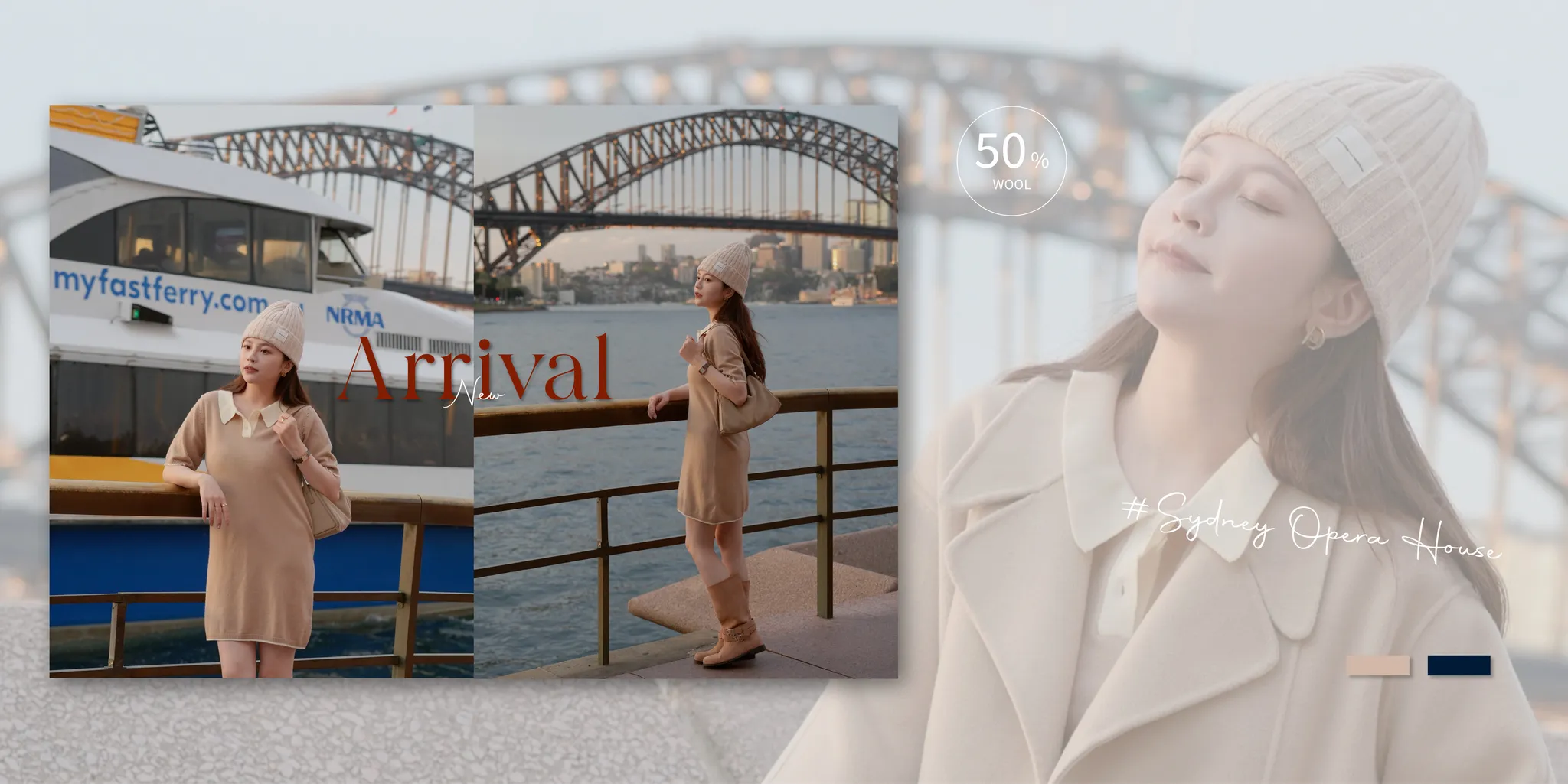 A10901 #雪梨歌劇院 50% WOOL撞色POLO翻領修身顯瘦短洋