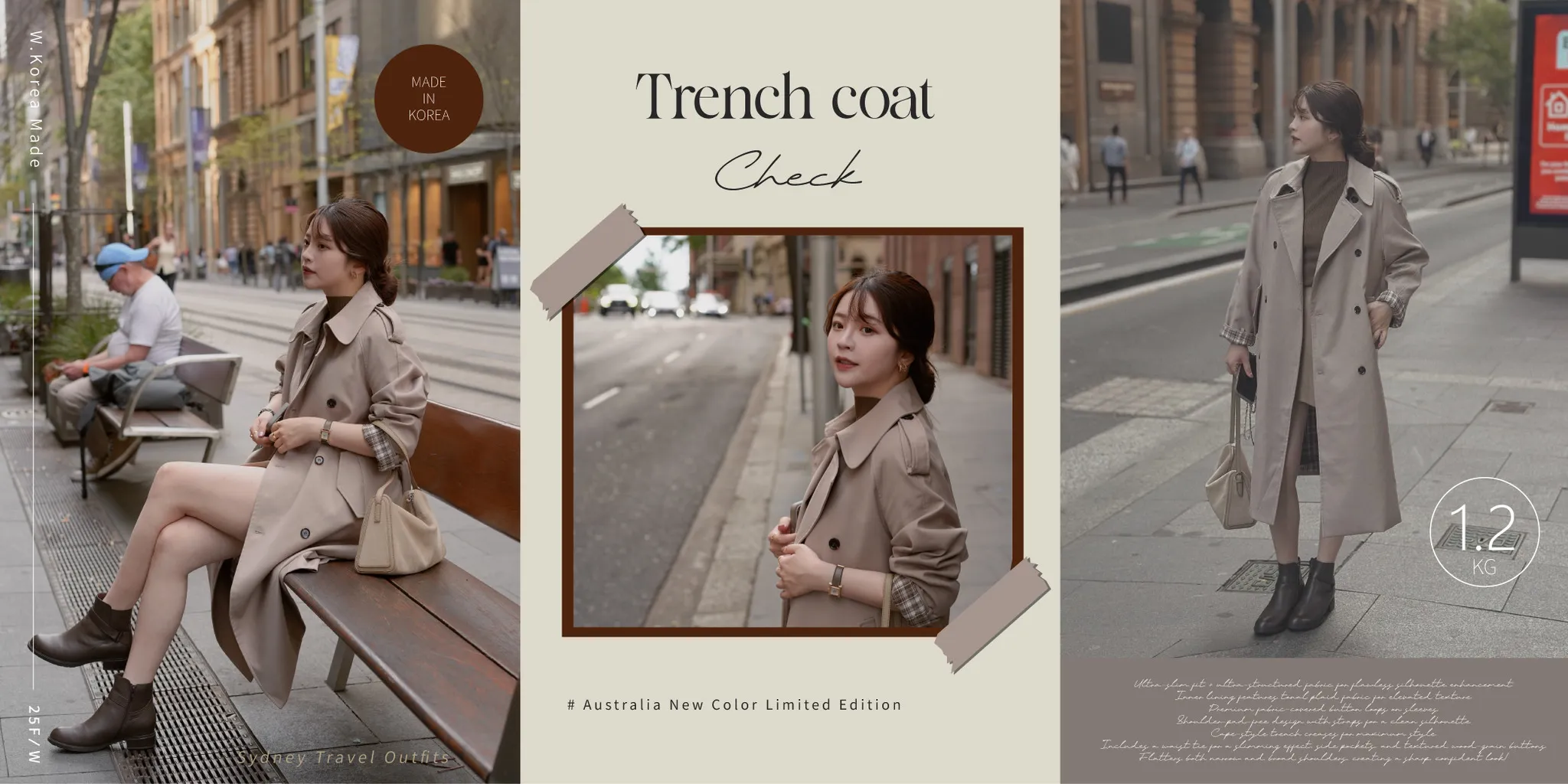 W.Korea #澳洲新色限定版 冬日格調長挺版拼接格紋排釦風衣外套(1.2kg)