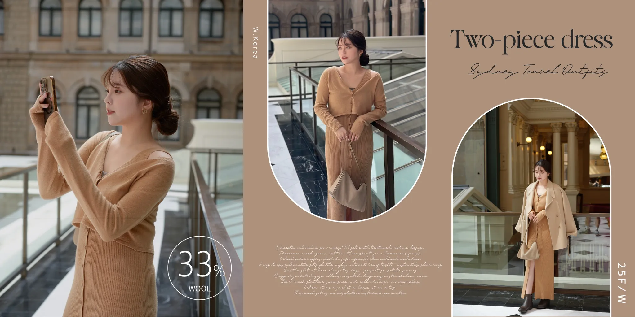 A81706 #在冬季相遇 33%羊毛木紋釦坑紋開衩套裝(長洋+小外套)