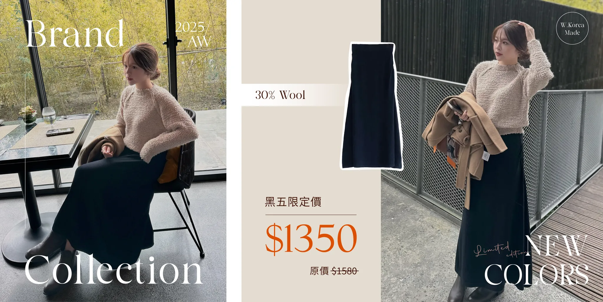 W.Korea #熱銷爆瘦新色限定 冬日限定30%羊毛抓褶鬆緊彈性爆瘦魚尾長裙