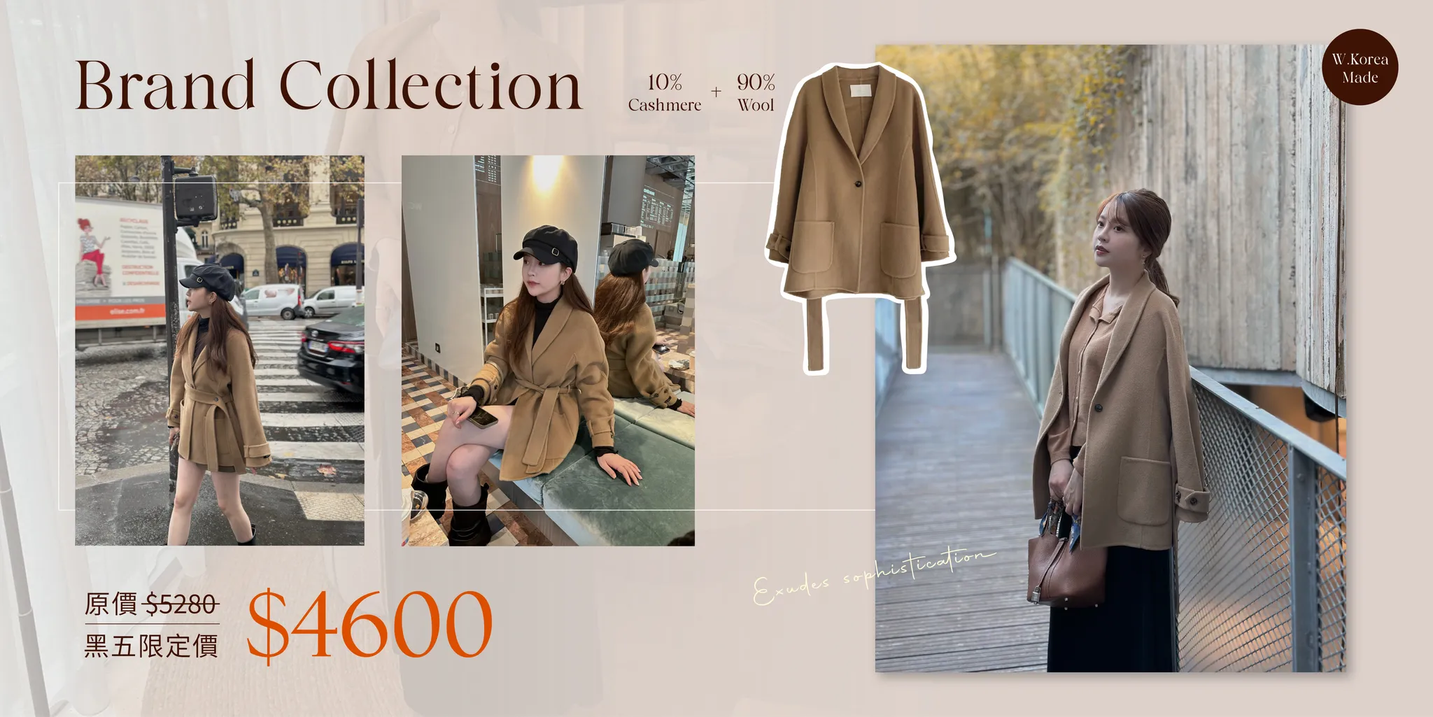 (熱銷完售釋出)W.Korea #布里斯本河岸 喀什米爾100%澳洲羊毛前短後長立領手工大