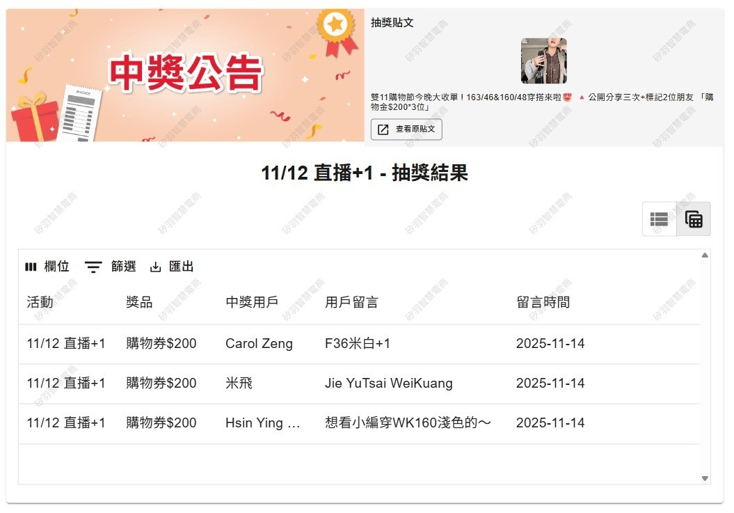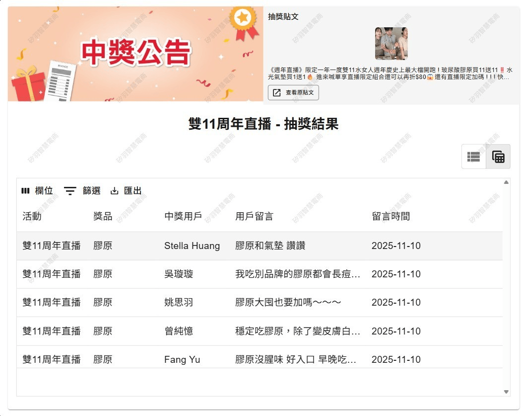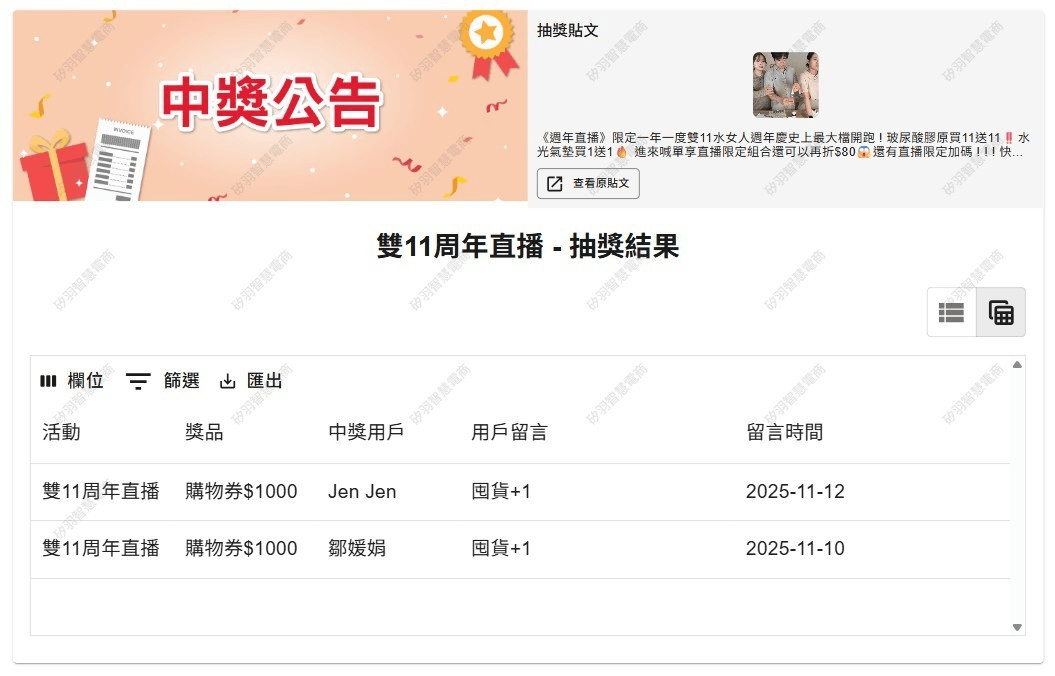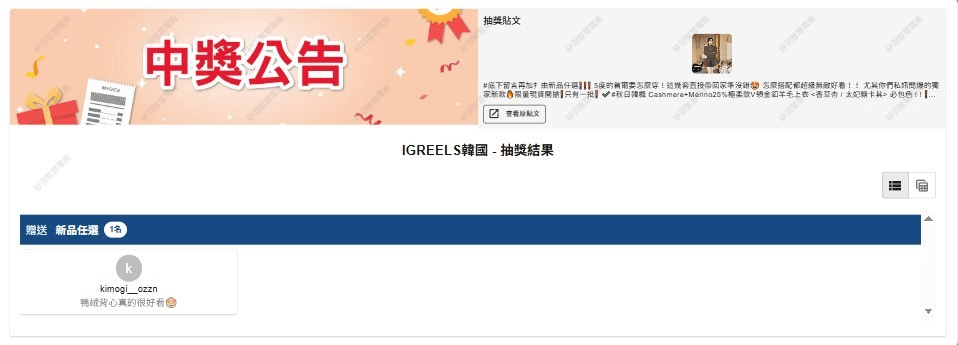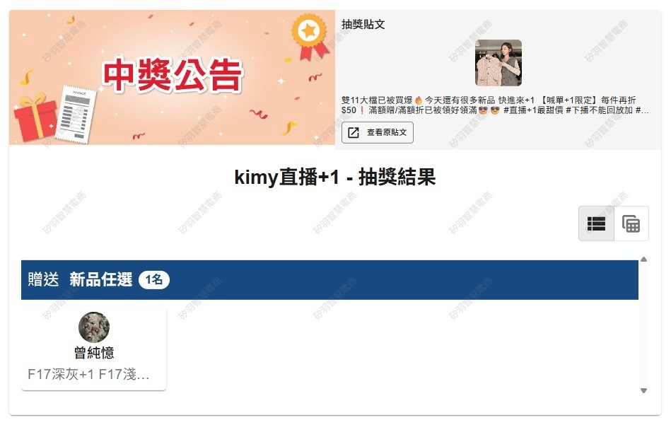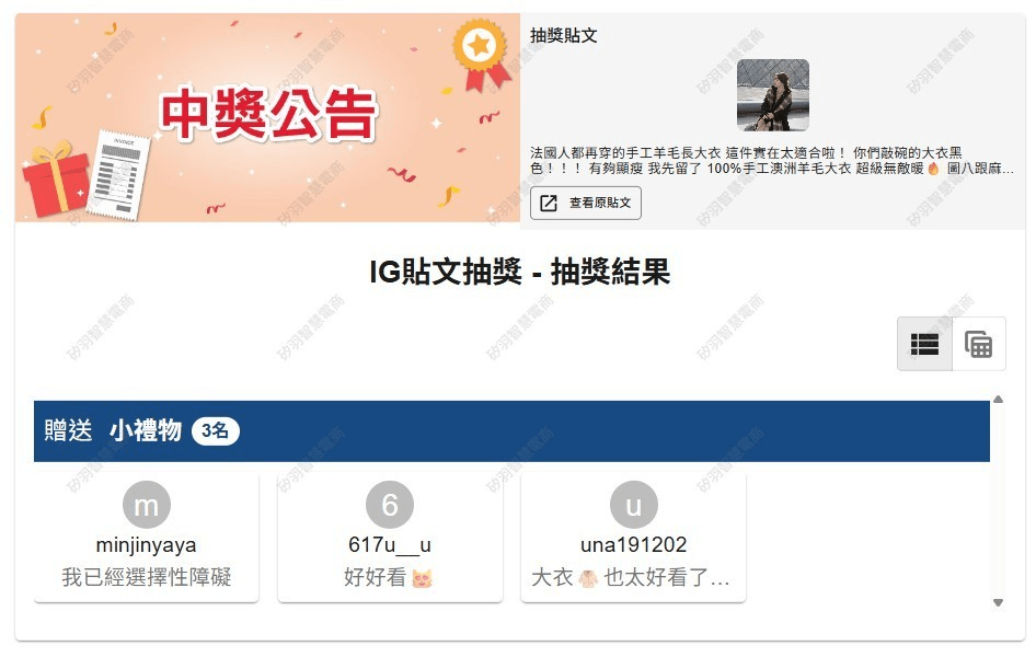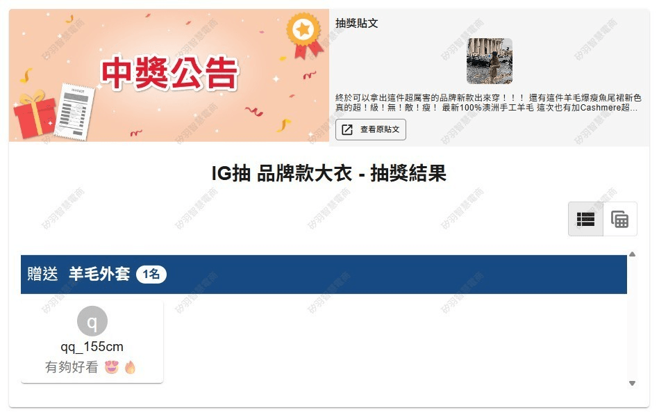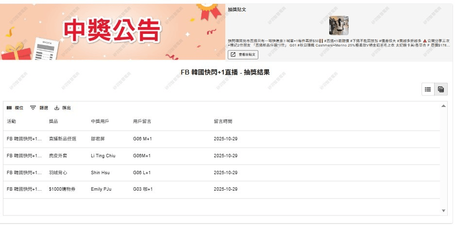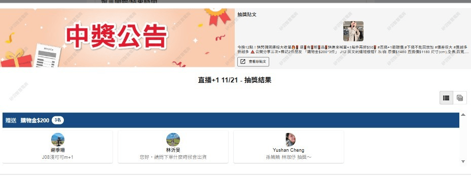 抽獎活動中獎名單公告區