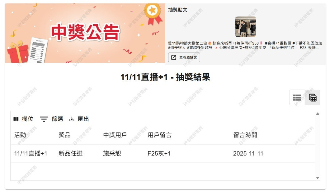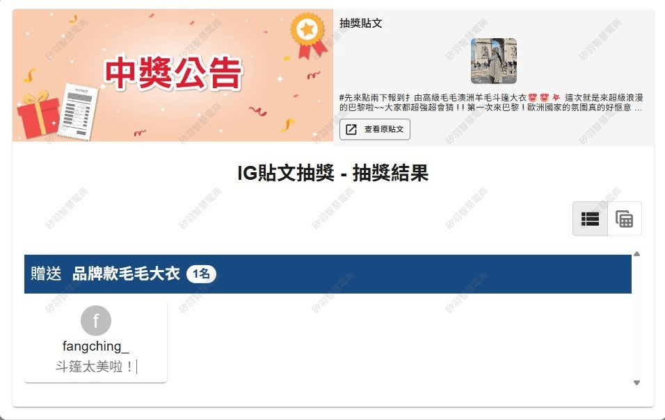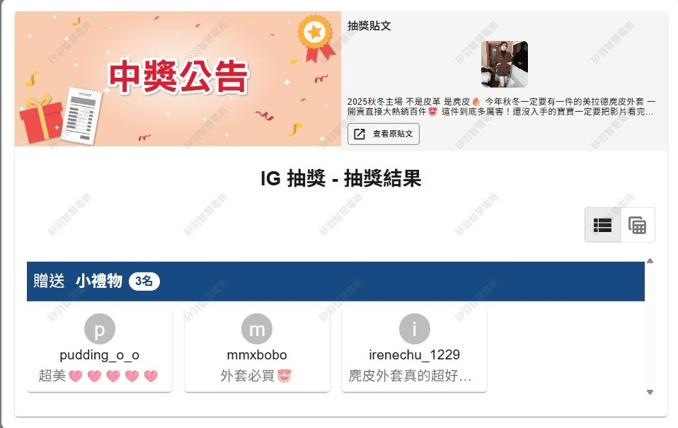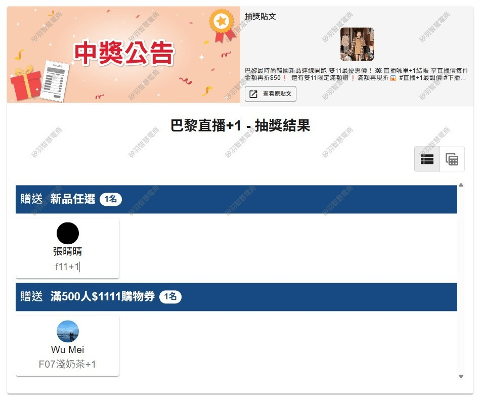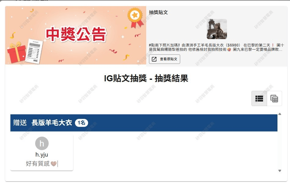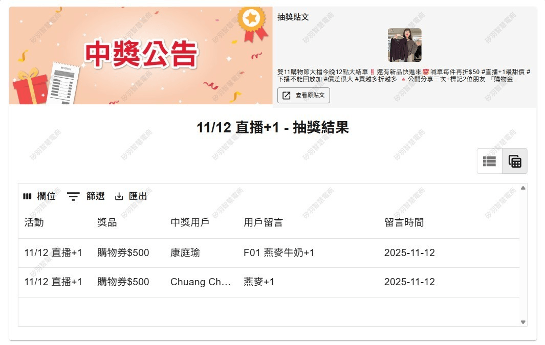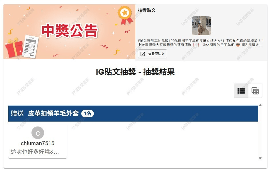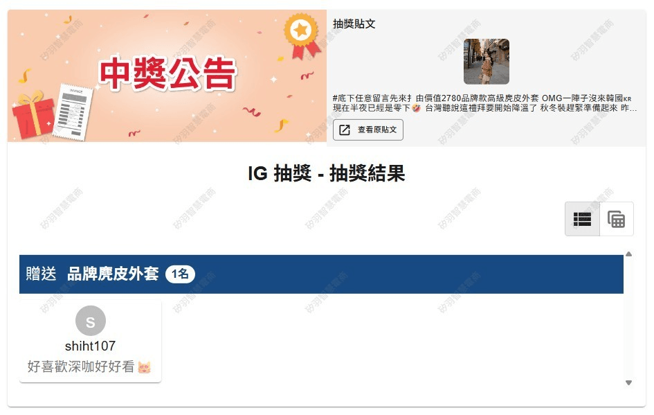 抽獎活動中獎名單公告區