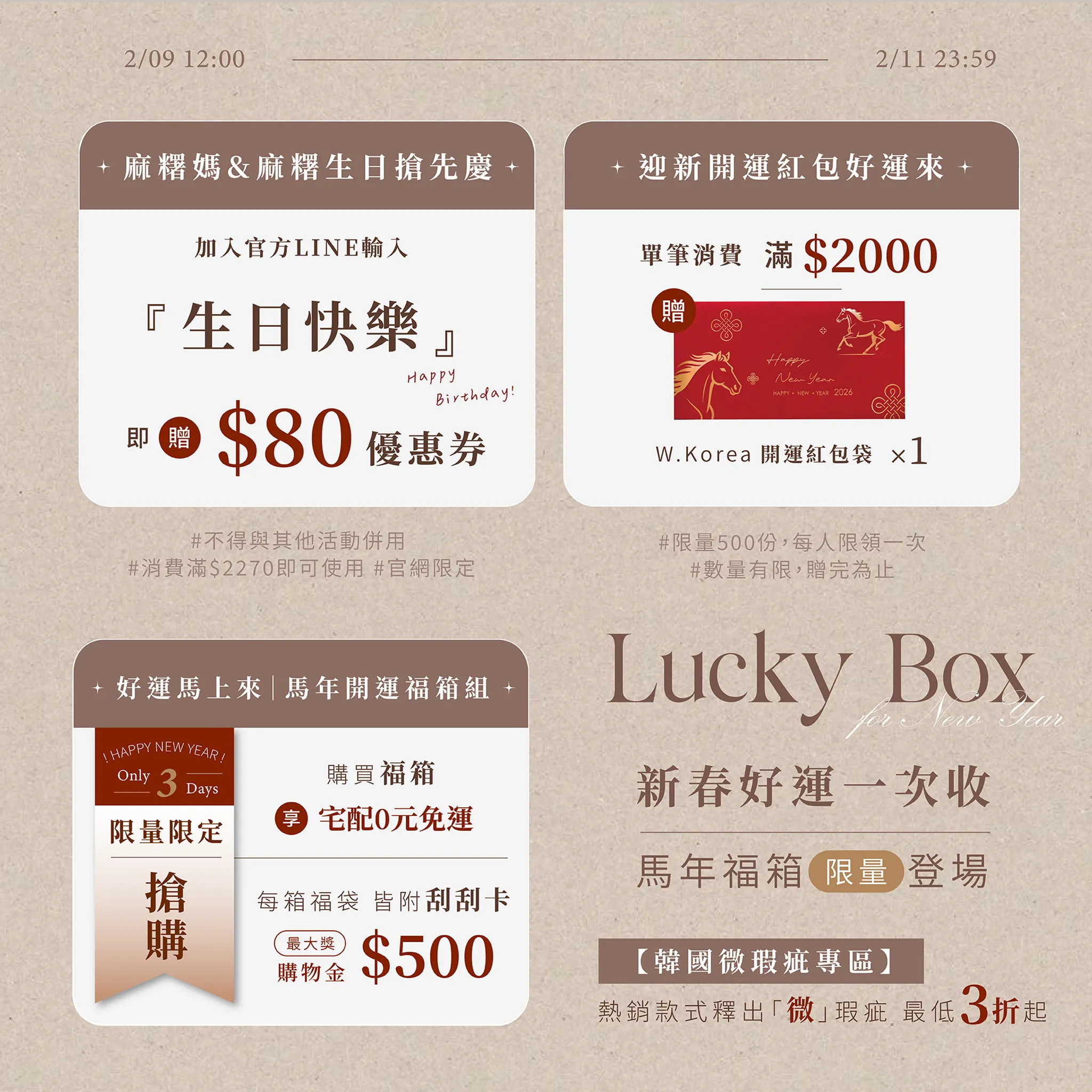2️⃣每箱福袋皆附 刮刮卡, 最大獎 $500購物金!