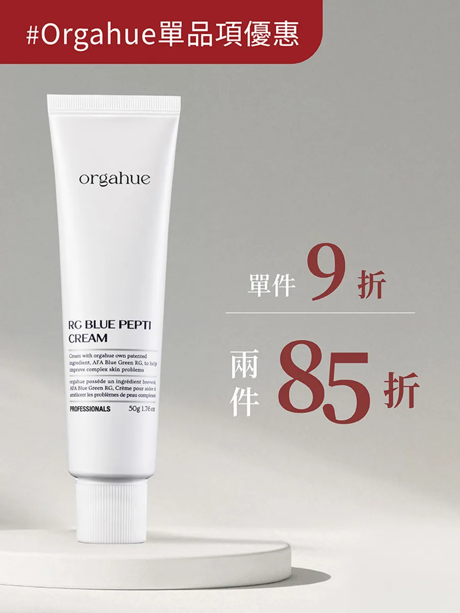 Orgahue 核心成分——AFA 藍綠藻精萃(AFA Blue Green RG™),富含胺基酸、維生素與天然修護因子,能夠強化肌膚防禦力,穩定膚況,同時減少乾癢、泛紅等異膚困擾。