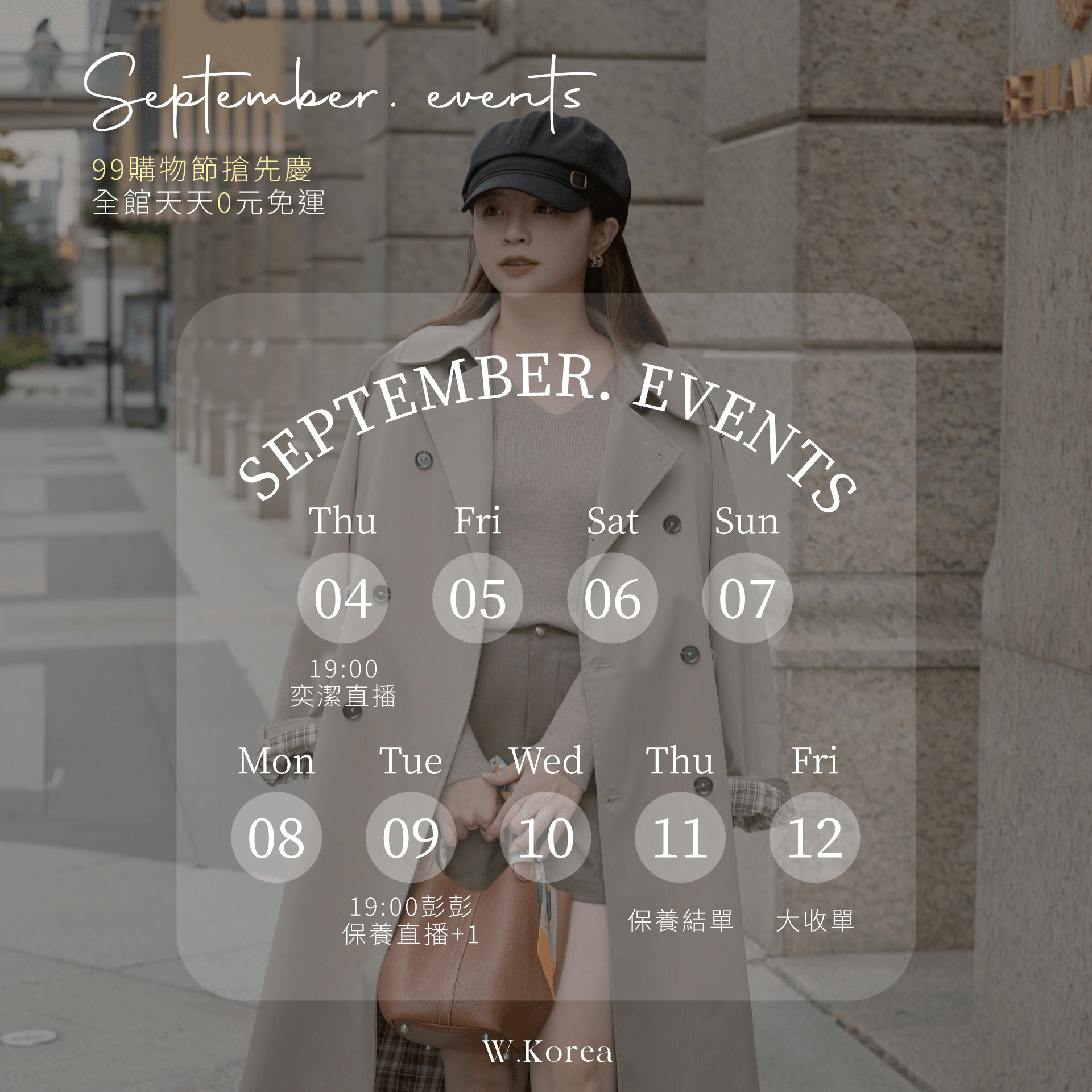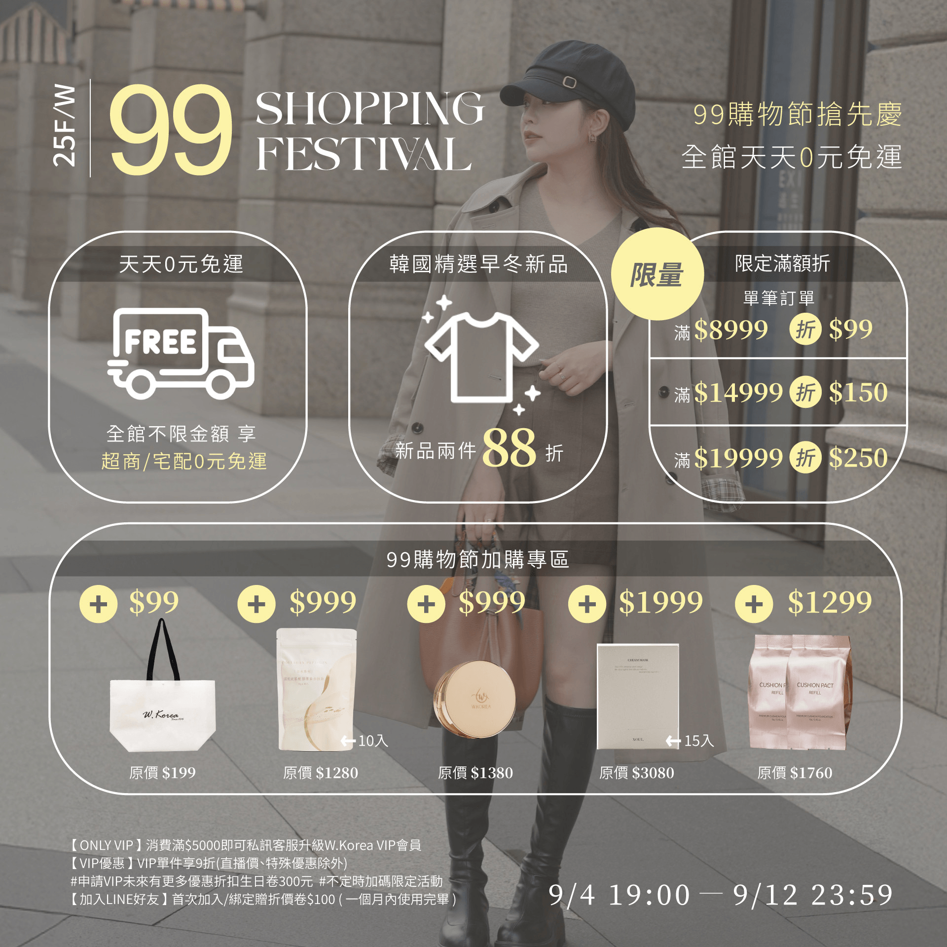 9/4-9/12【99購物節搶先慶 韓國早冬新品兩件88折】