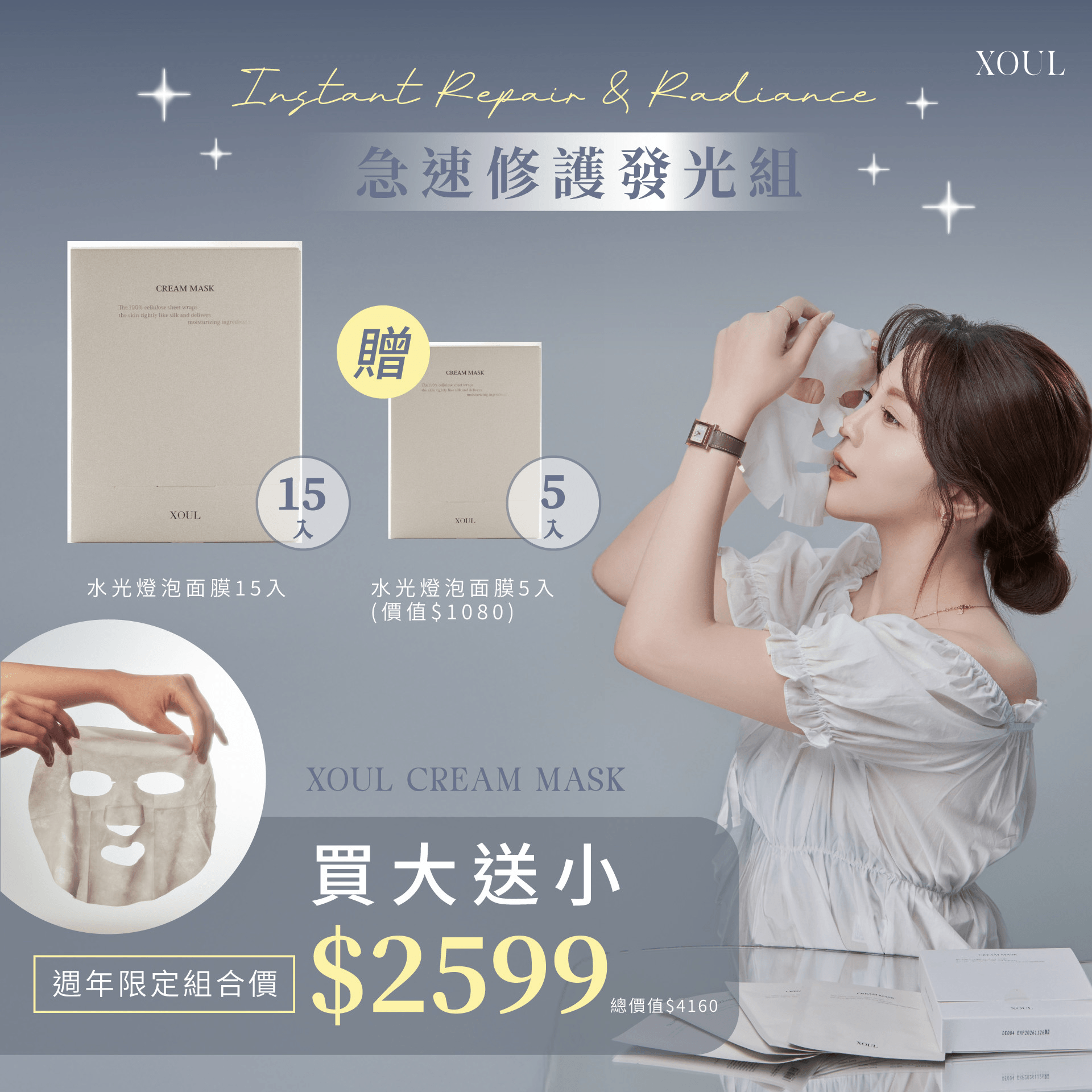 💖急速修護發光組|XOUL水光燈泡面膜買大送小