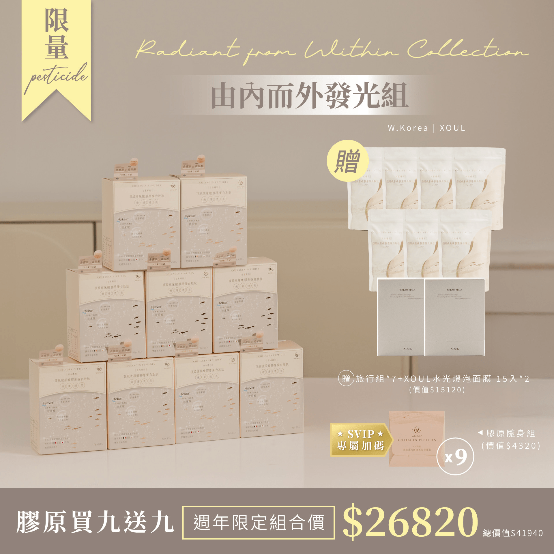 💖由內而外發光組|膠原買九送九(旅行組*7+XOUL水光燈泡面膜 15入*2)