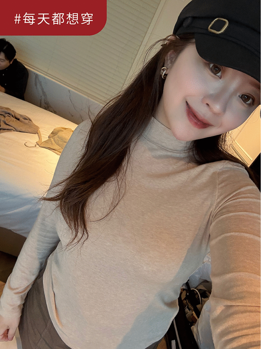 極親膚微高領上衣<高冷黑 / 暖日膚 / 深焙咖 / 霧灰杏>