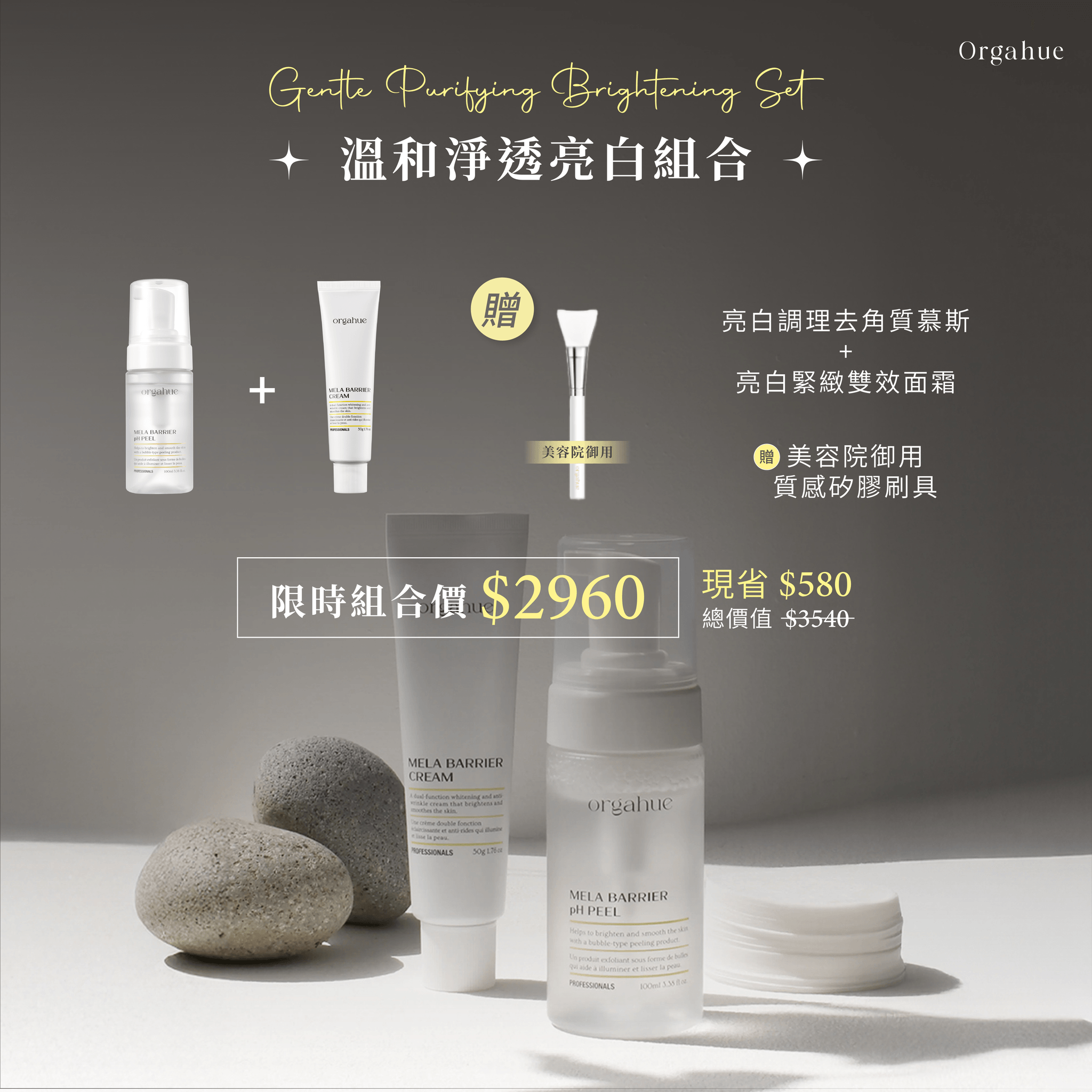 ✨溫和淨透亮白組|去角質慕斯+亮白霜 贈美容院御用質感矽膠刷具