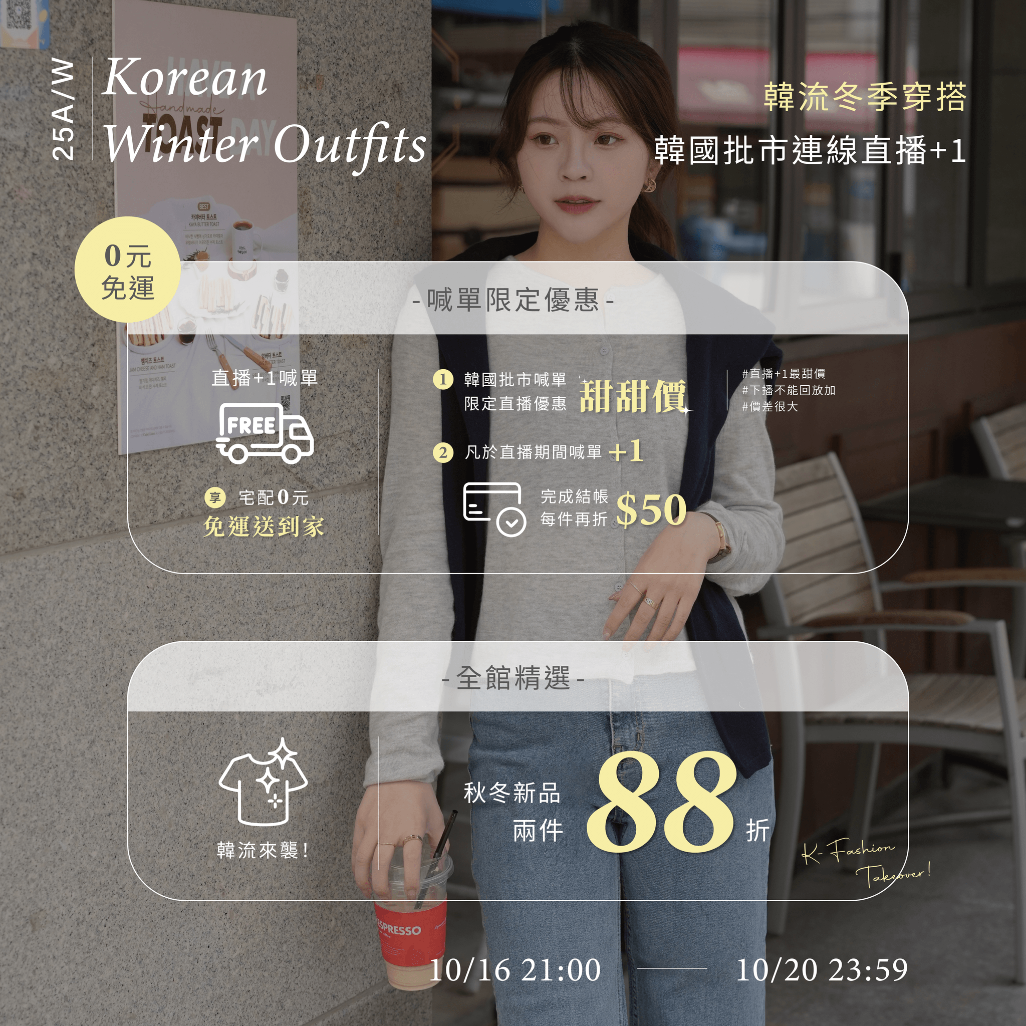 10/16-10/20【韓流冬季穿搭 韓國批市連線直播+1】