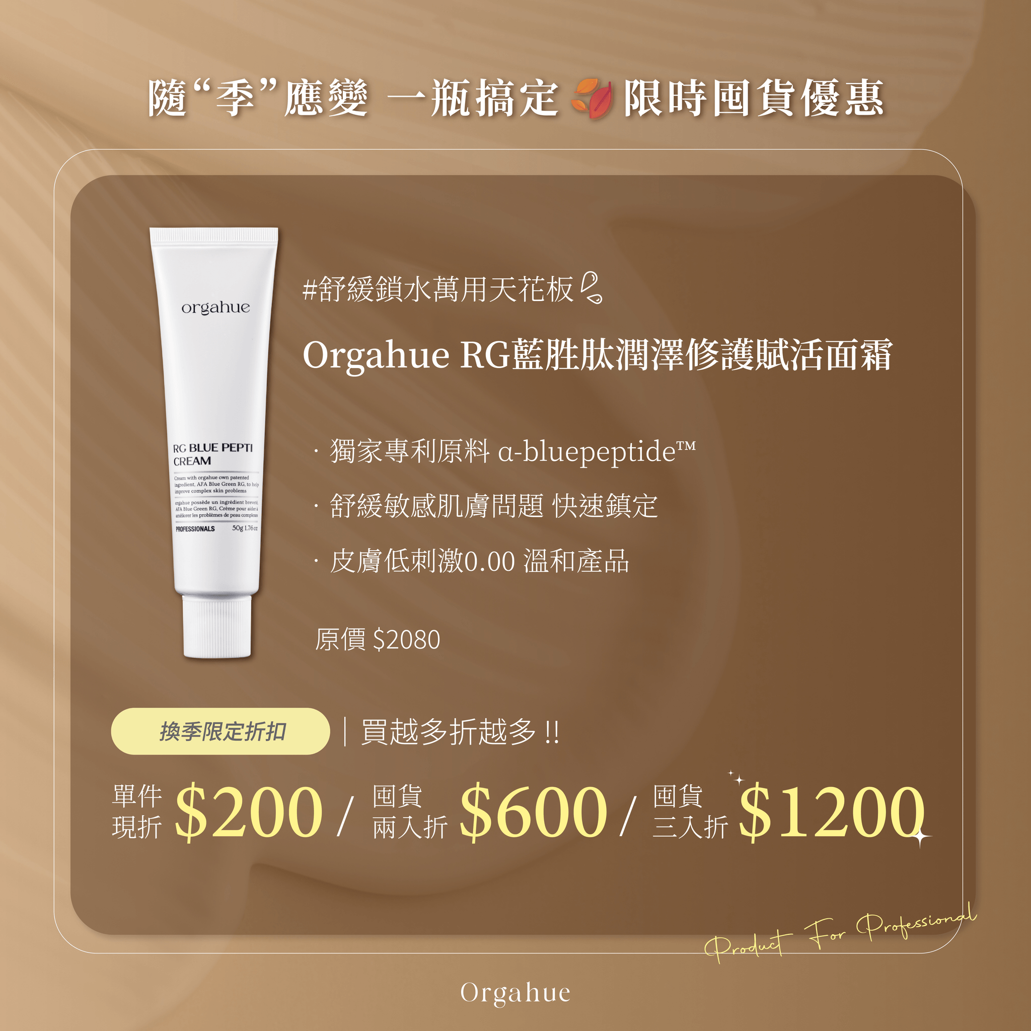 #舒緩鎖水萬用天花板 Orgahue RG藍胜肽潤澤修護賦活面霜