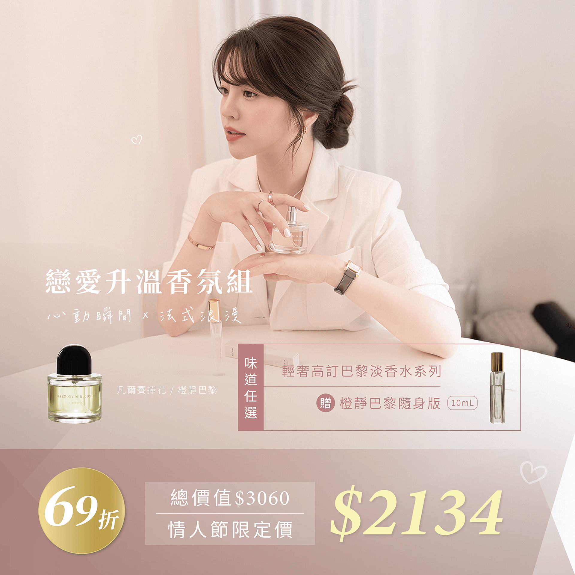 總價值$3060 情人節限定價 $2134 69折