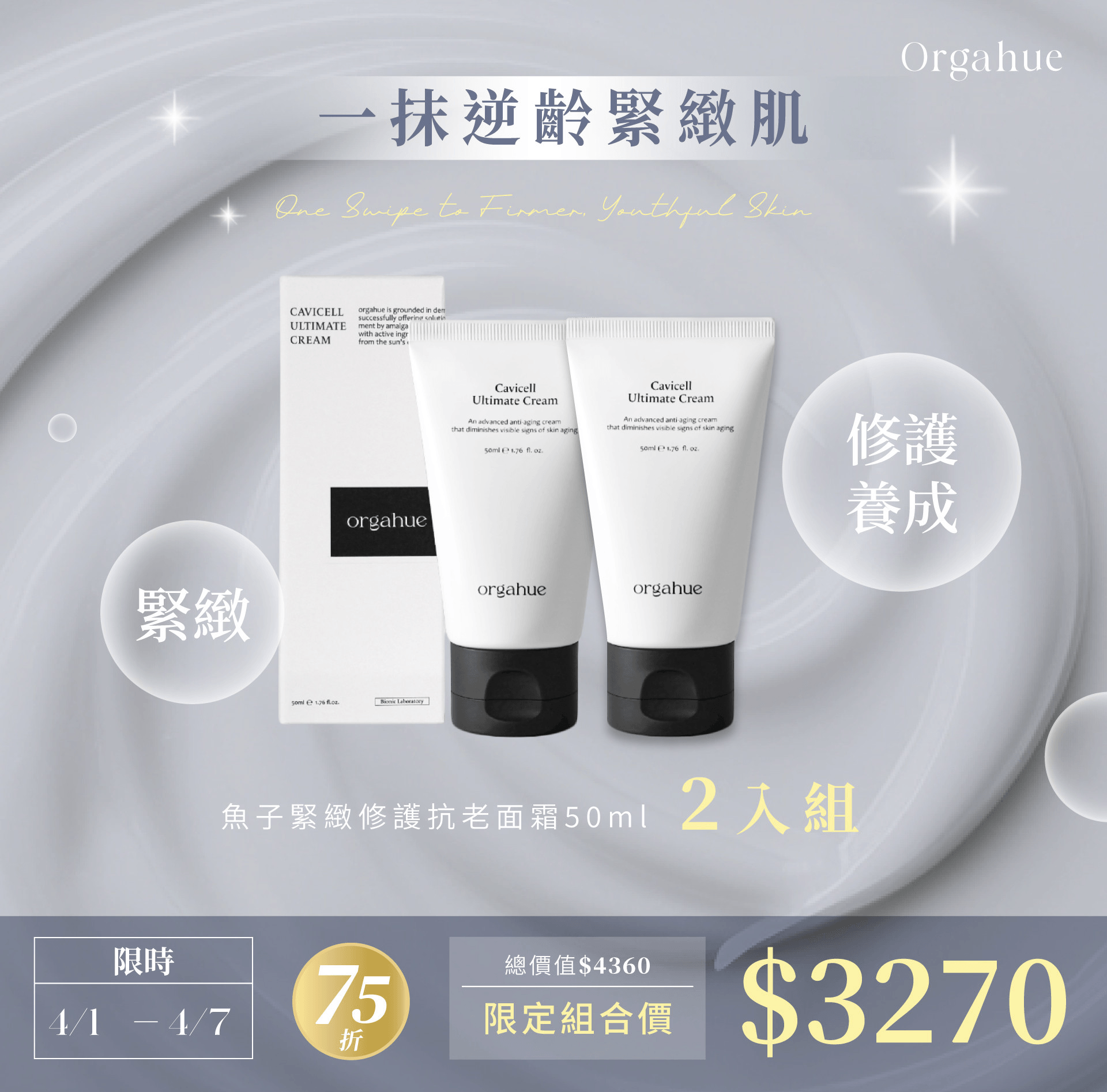 🌸一抹逆齡緊緻肌|魚子緊緻修護抗老面霜50ml 2入組