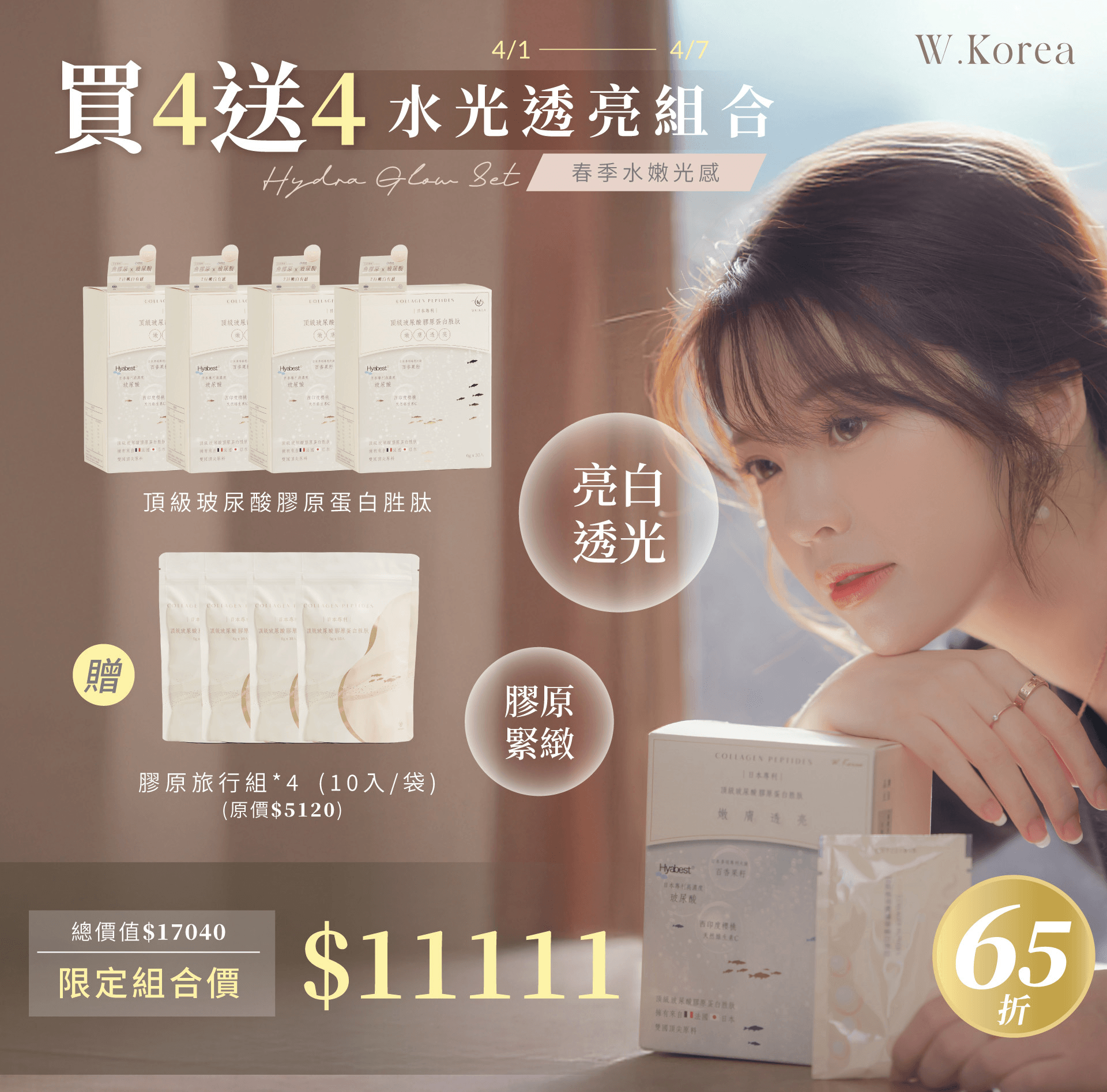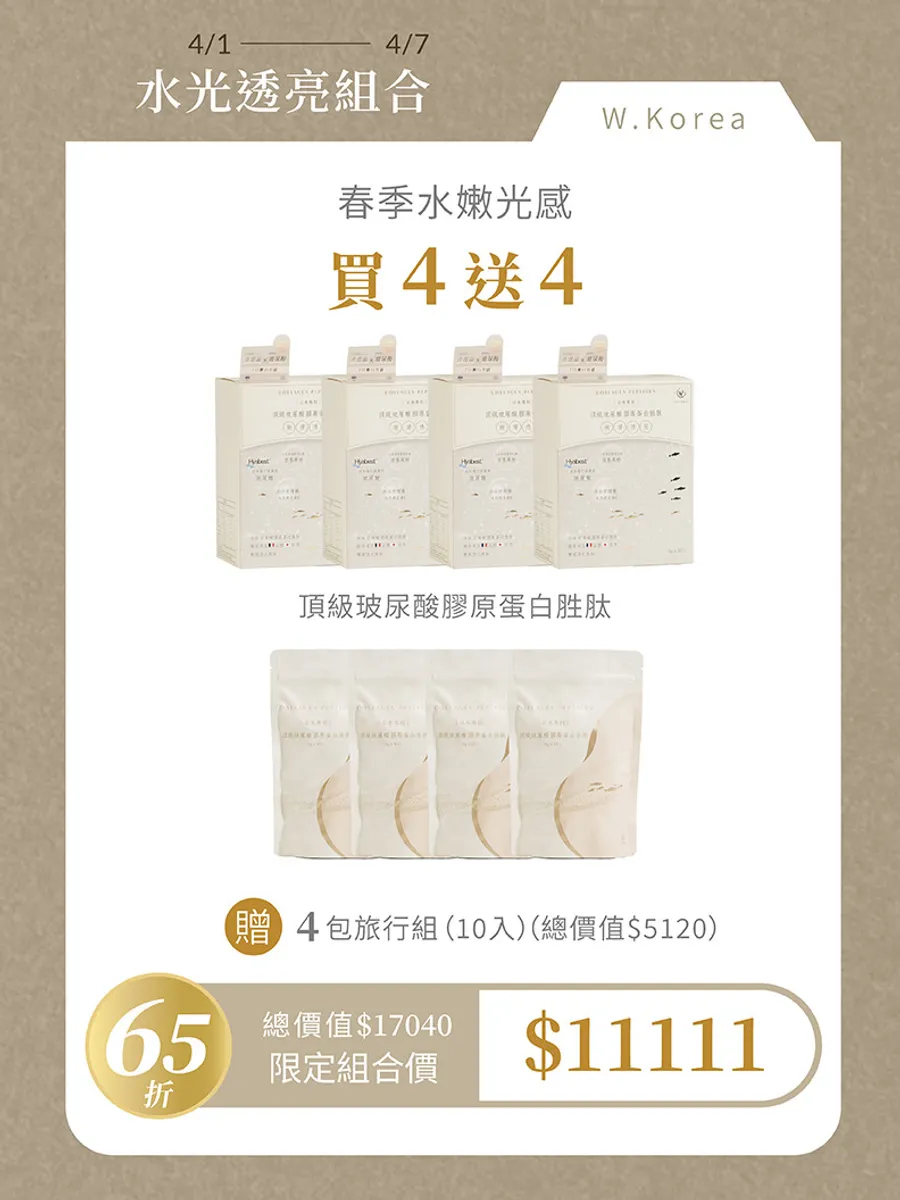 頂級玻尿酸膠原蛋白胜肽 買4 送4 (10入旅行組)