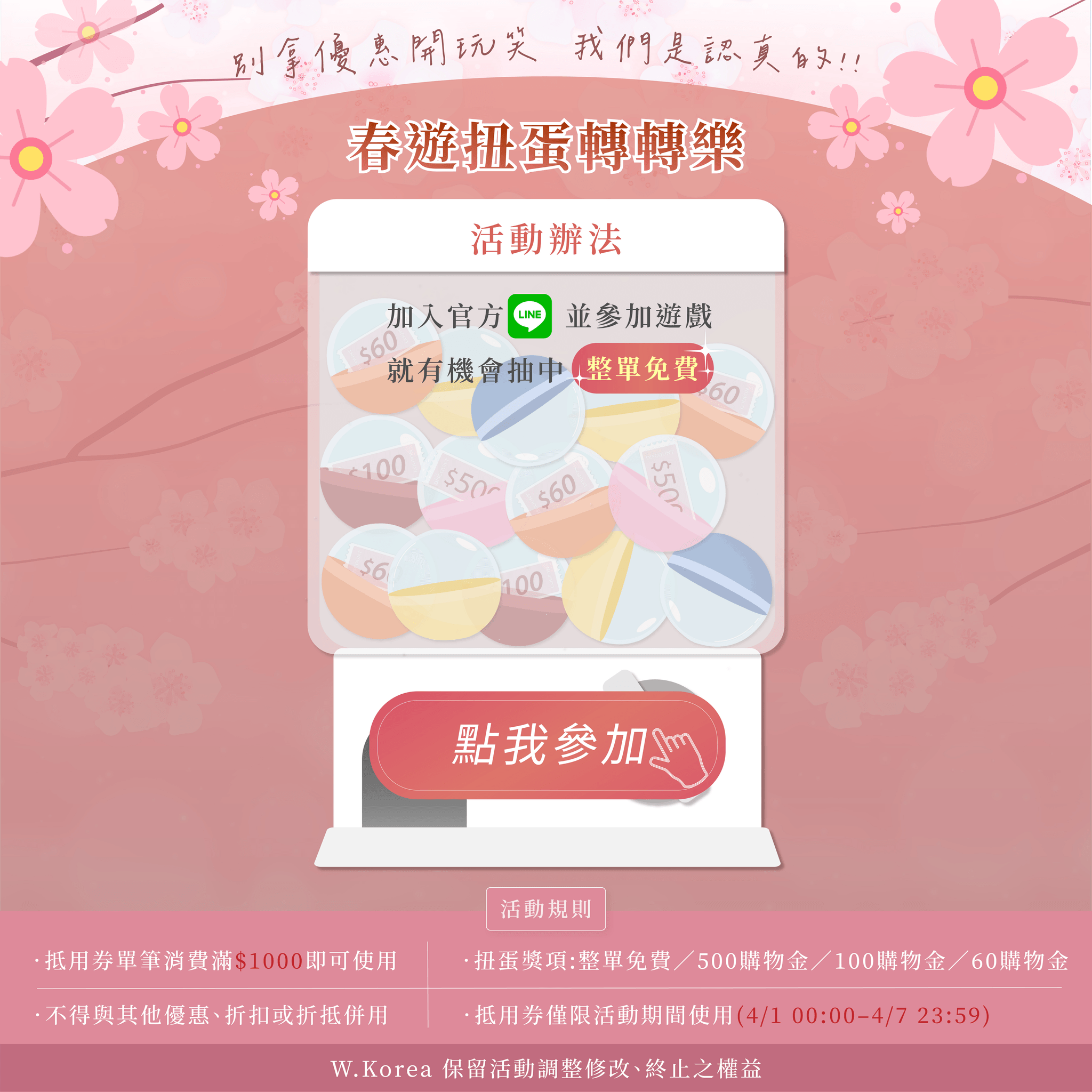 ✨春遊扭蛋轉轉樂|加入官方LINE並參加遊戲,就有機會抽中「整單免費」🎉