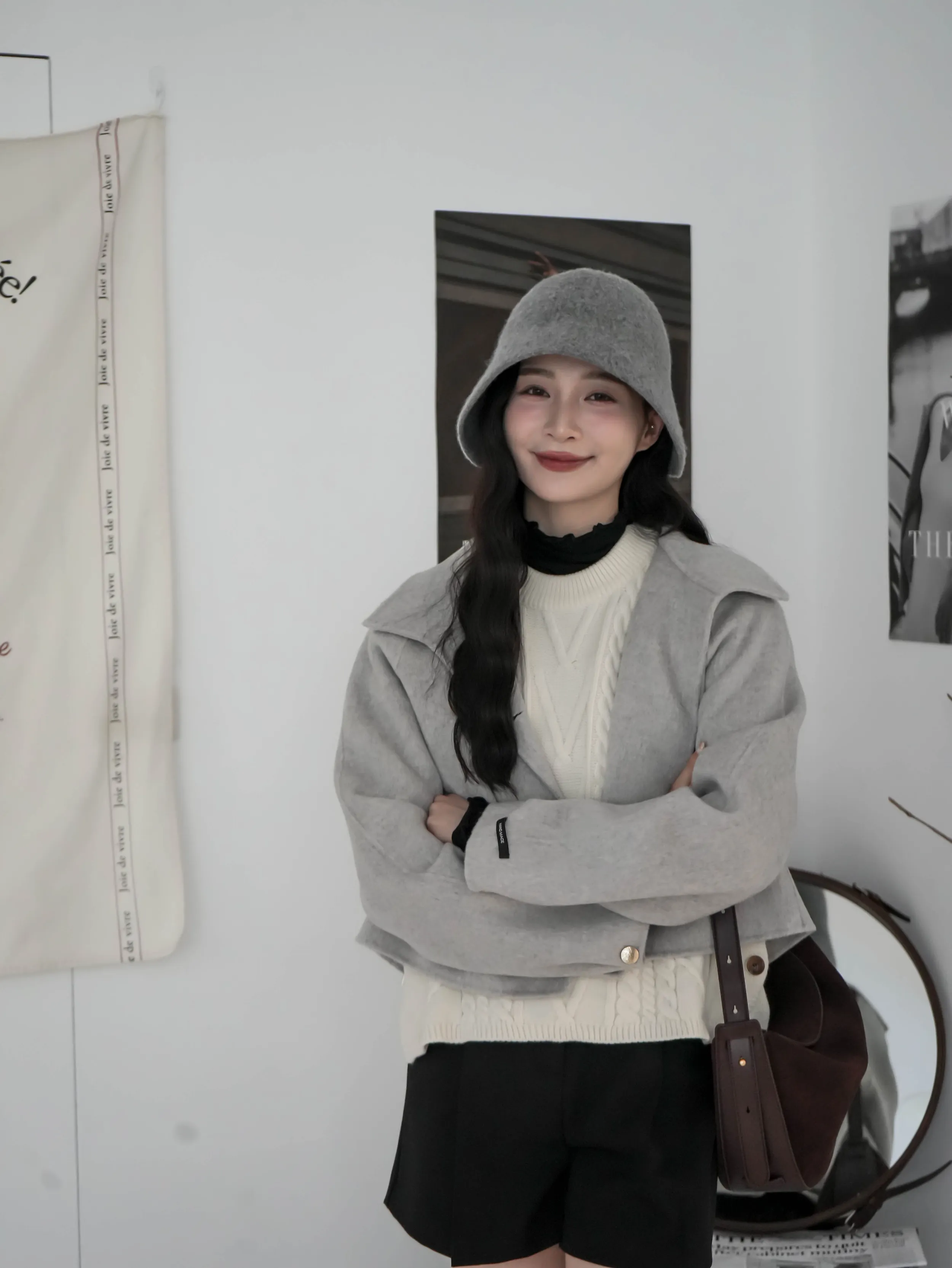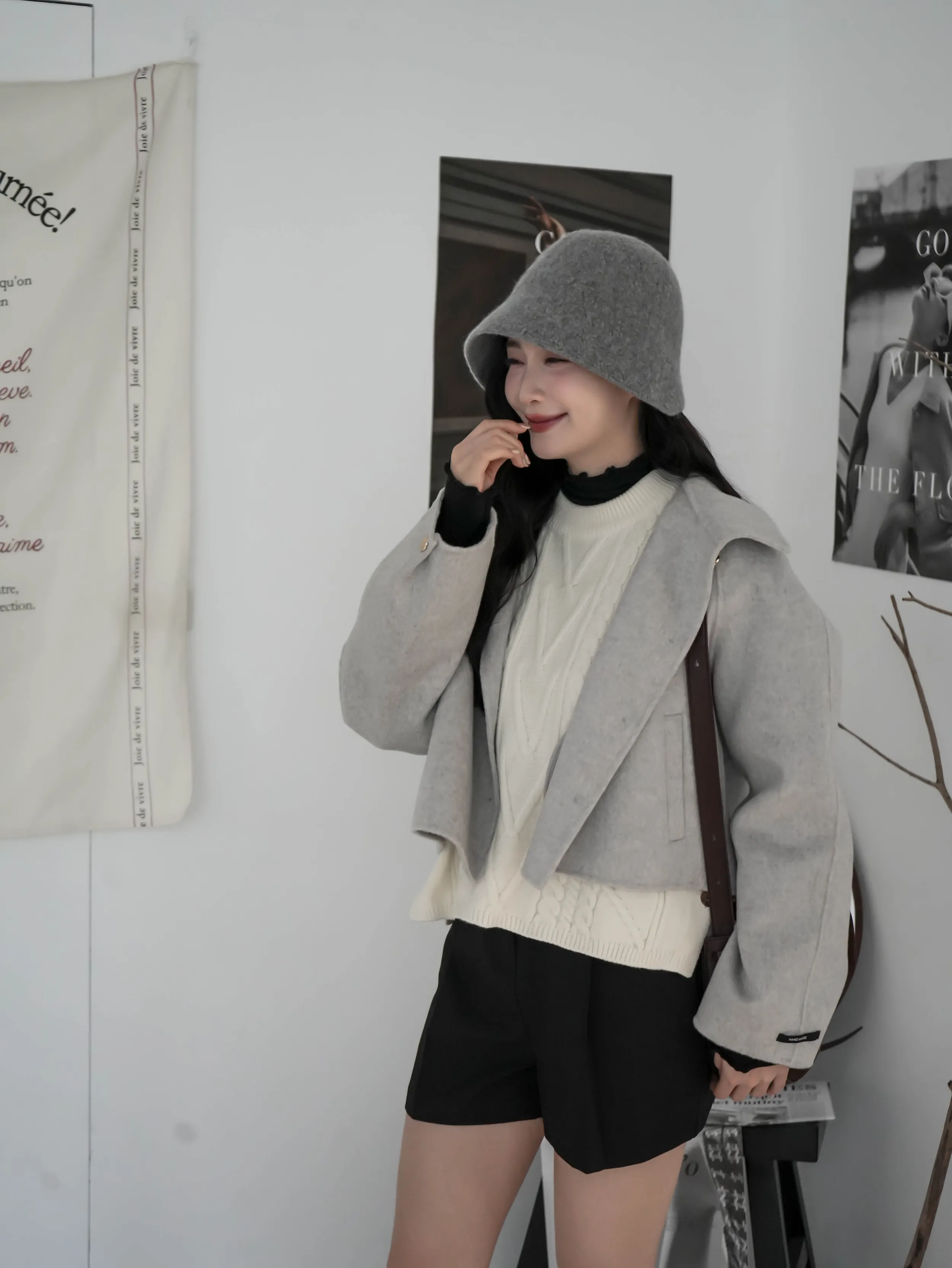 A13 (完售釋出黑1)超小臉質感羊毛遮陽帽