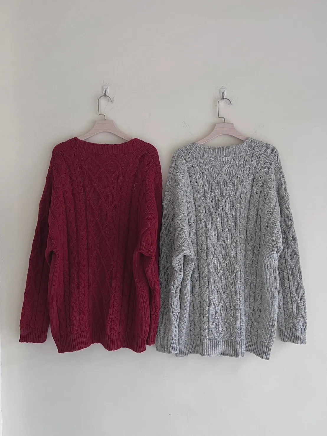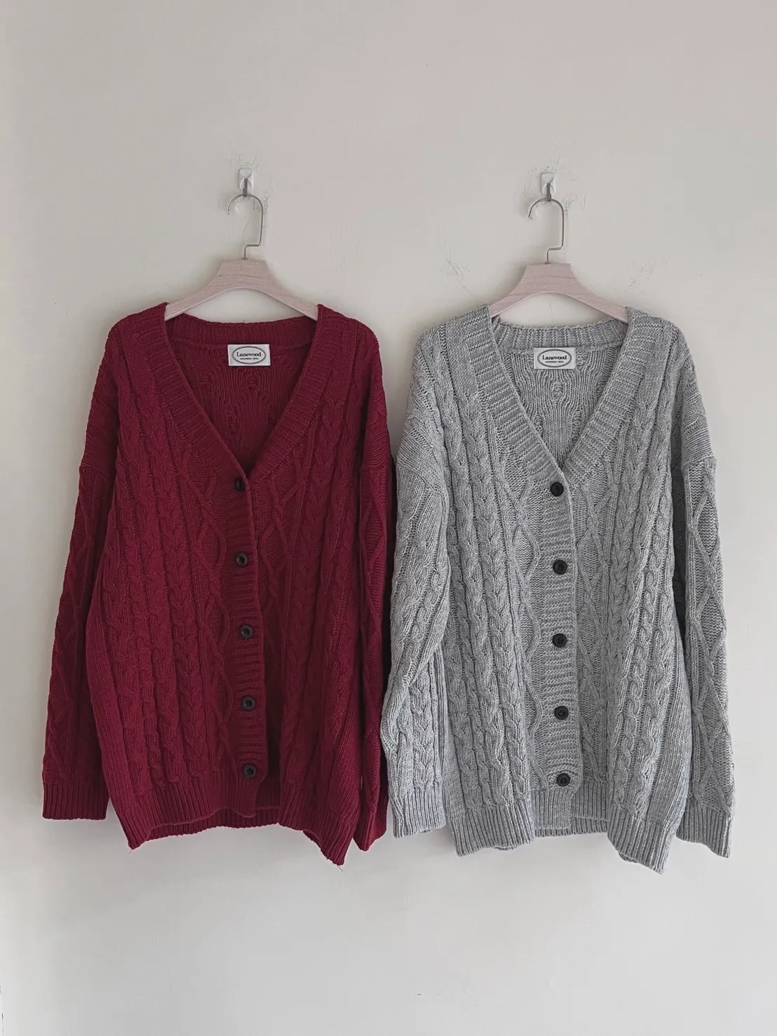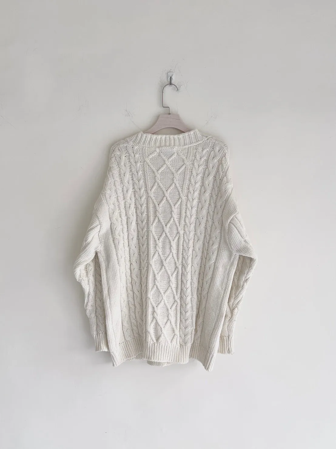 R21 #暖心告白 %羊毛V領針織麻花袖排釦小外套