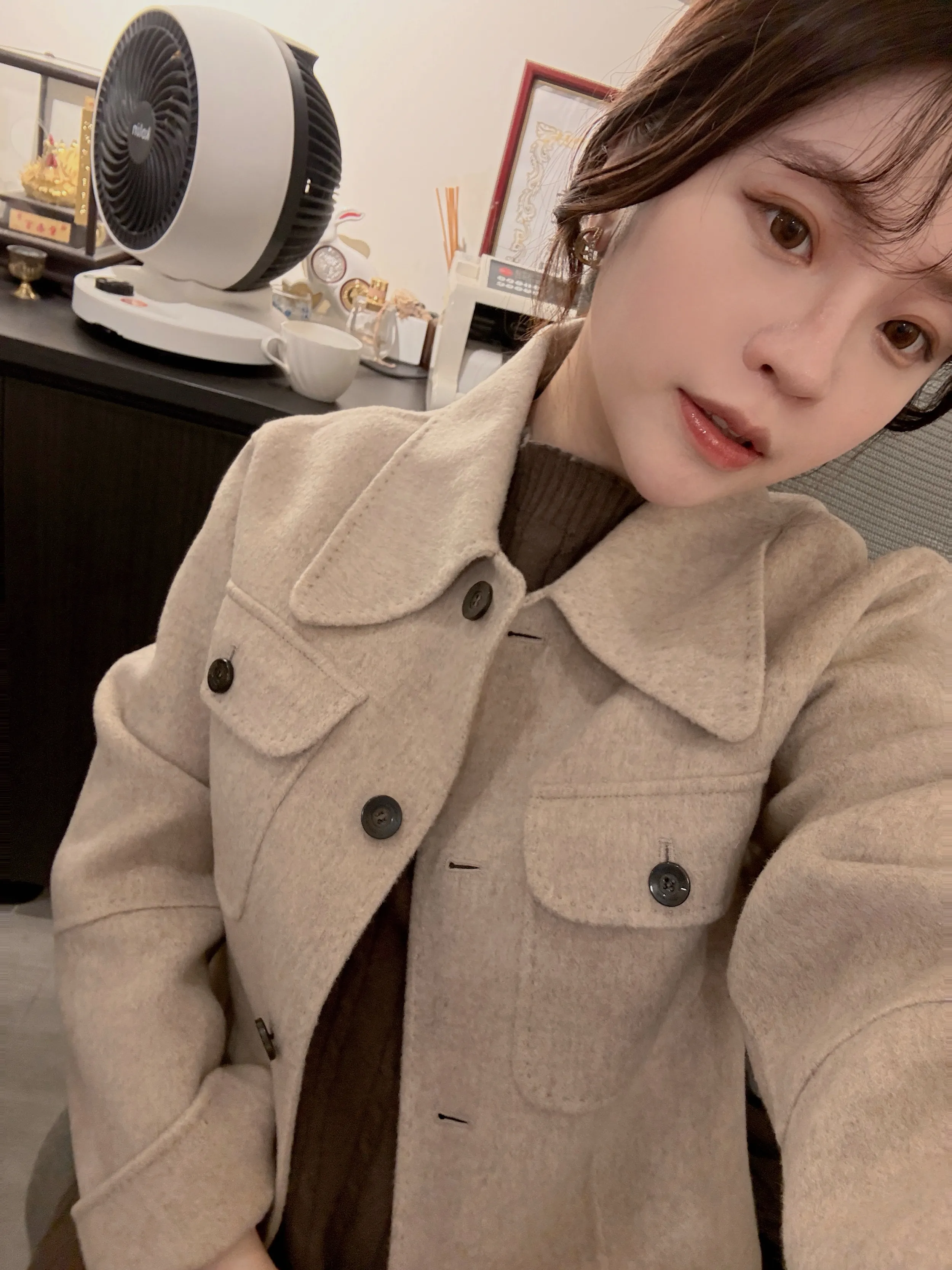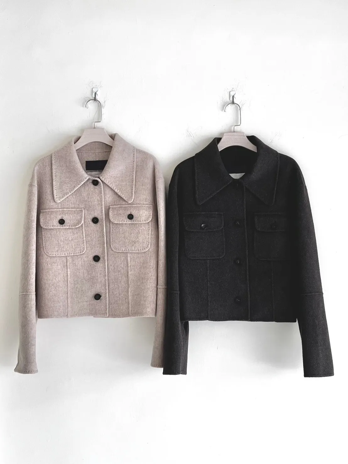G14(高級區限量商品)90% KoreaHandmade 手工羊毛大方領鈕釦口袋大衣