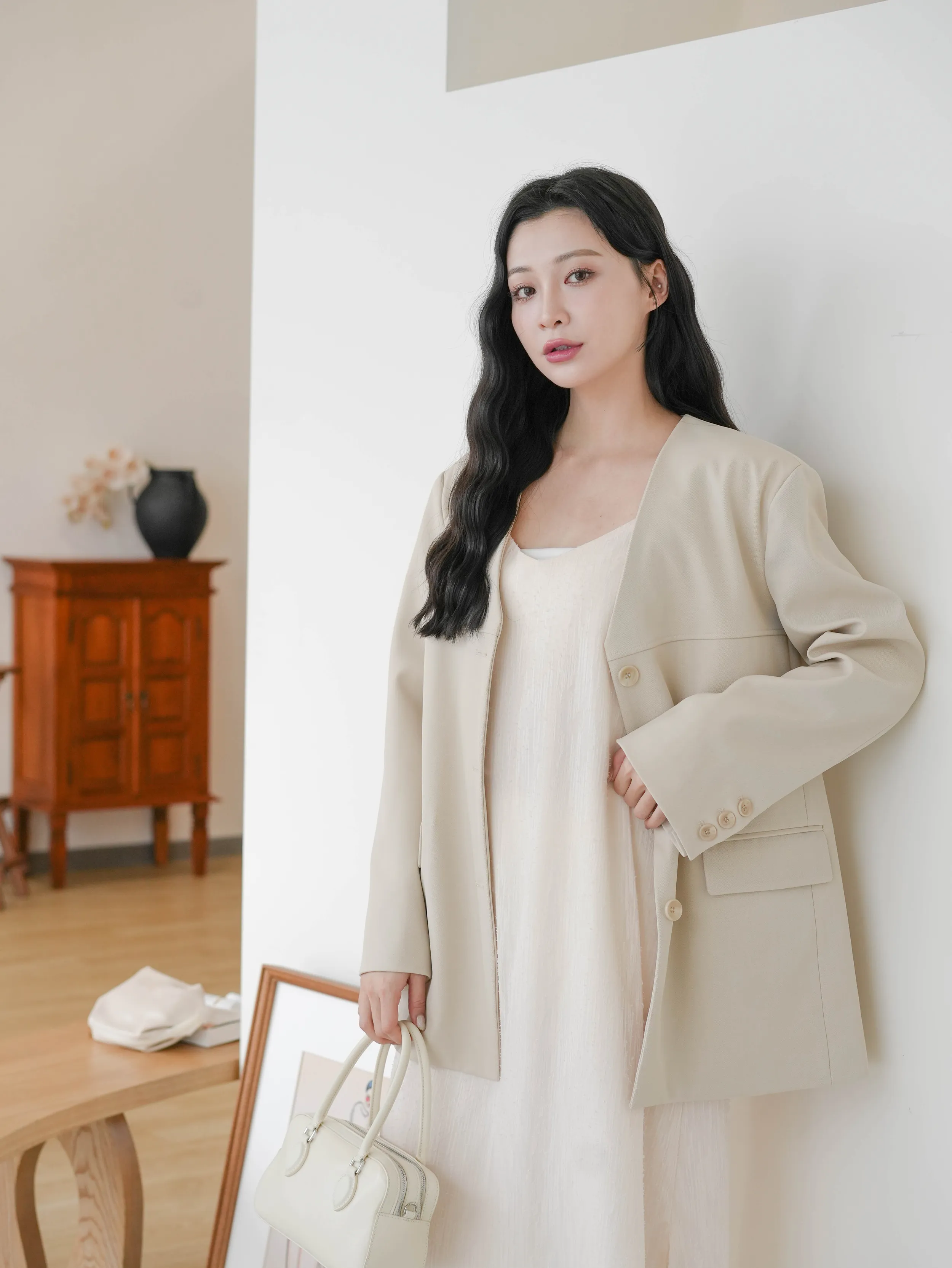J05 (完售釋出)#韓國歐膩的外套 V領排釦中長版西裝外套