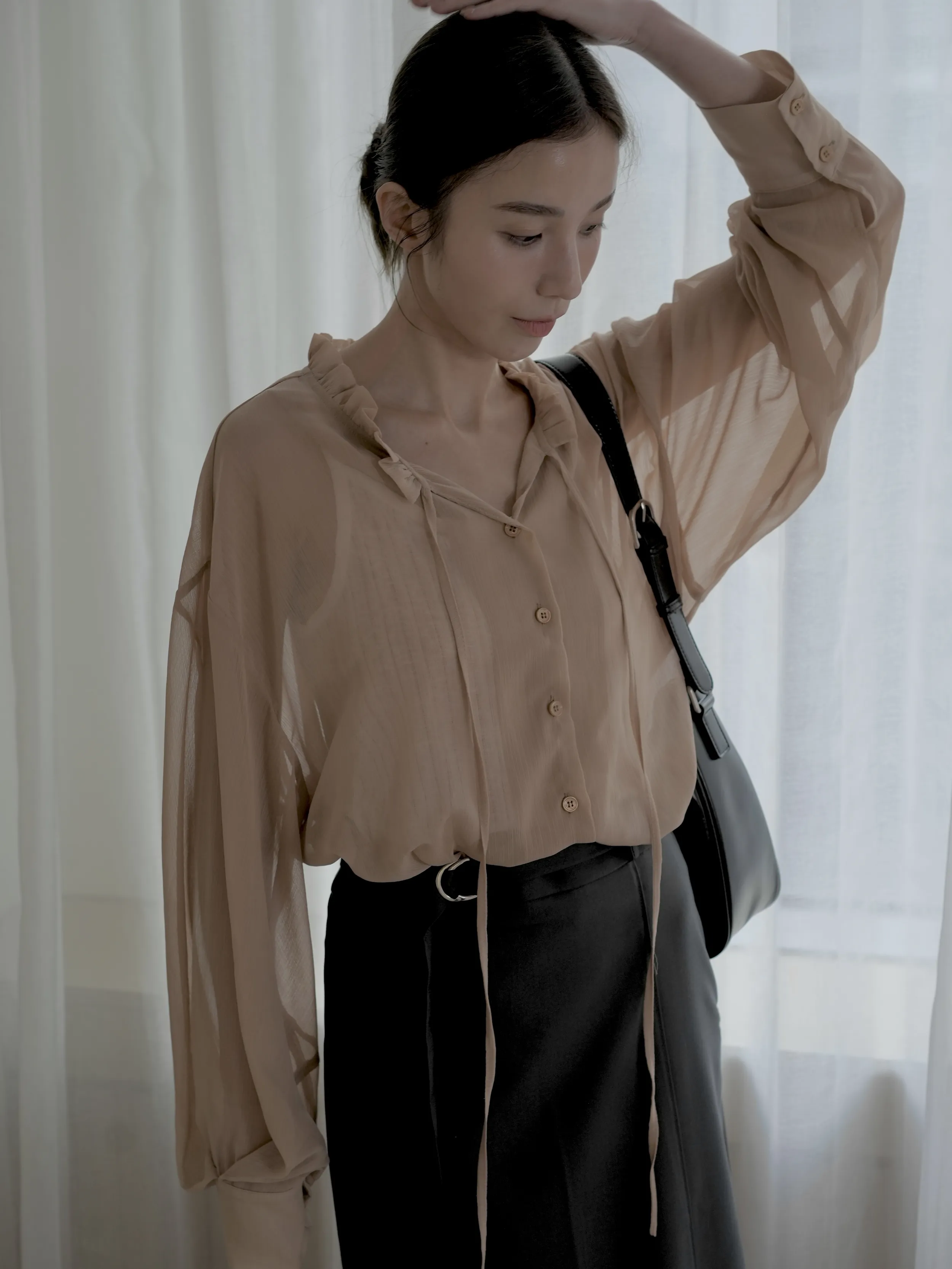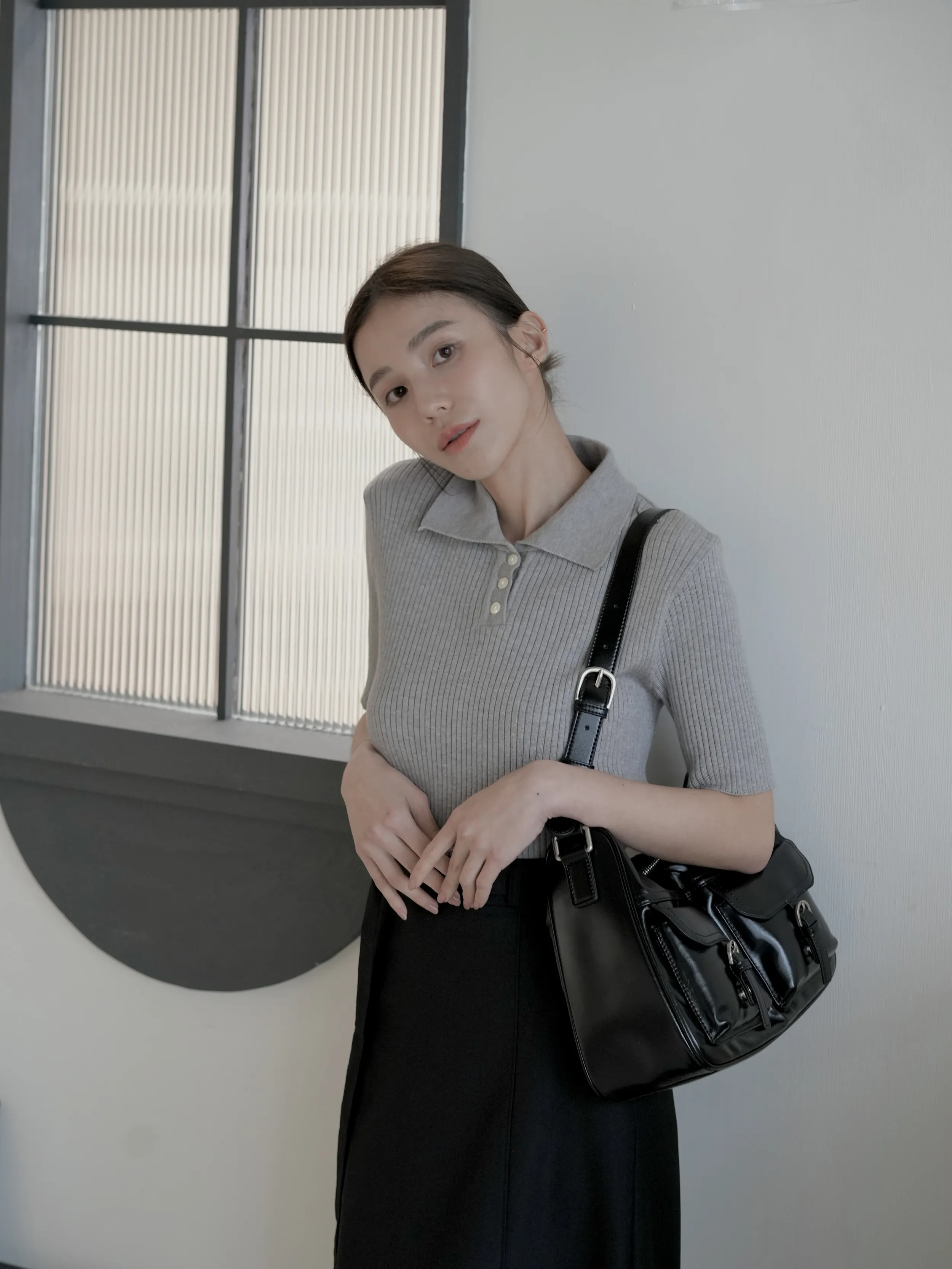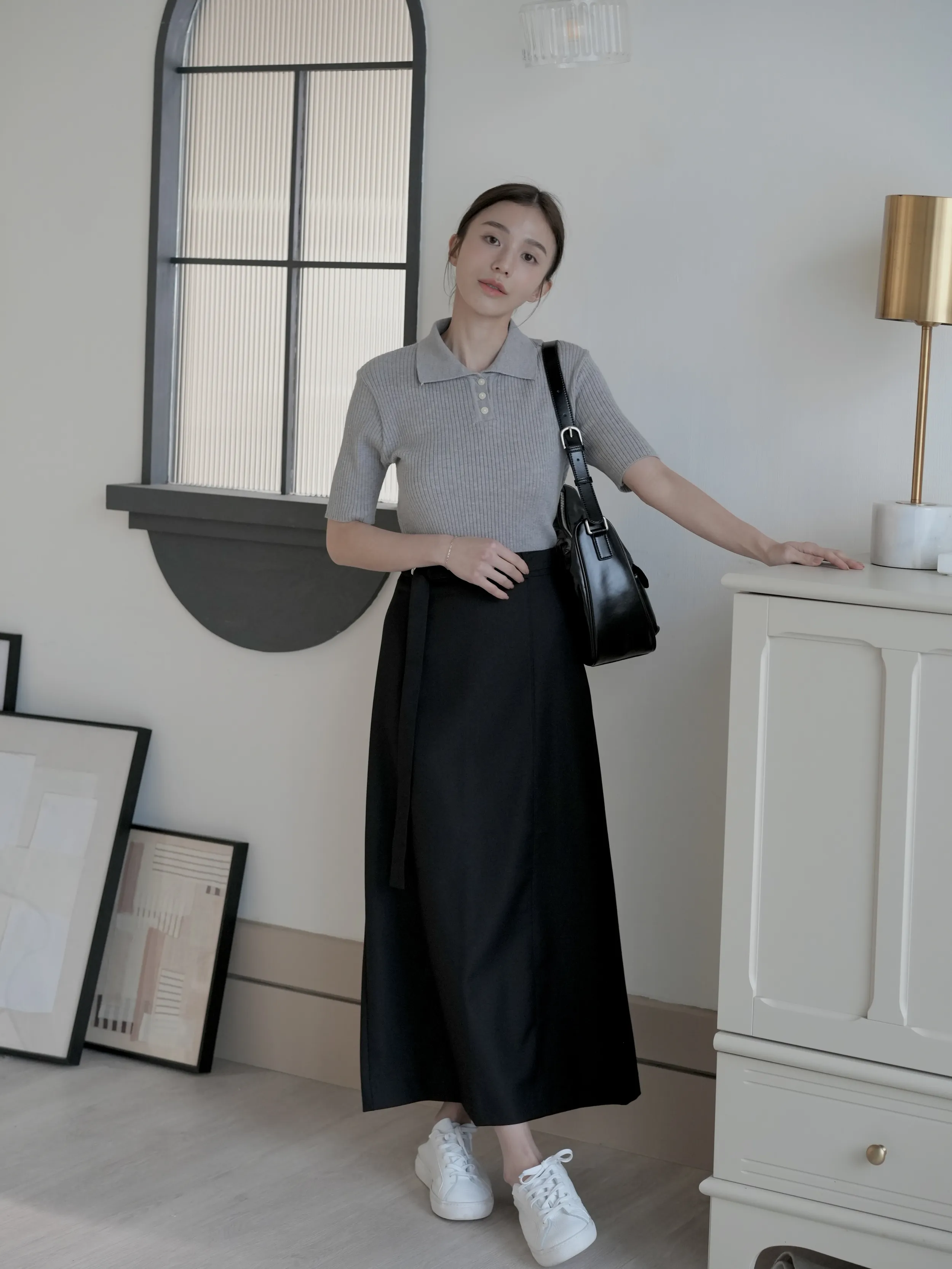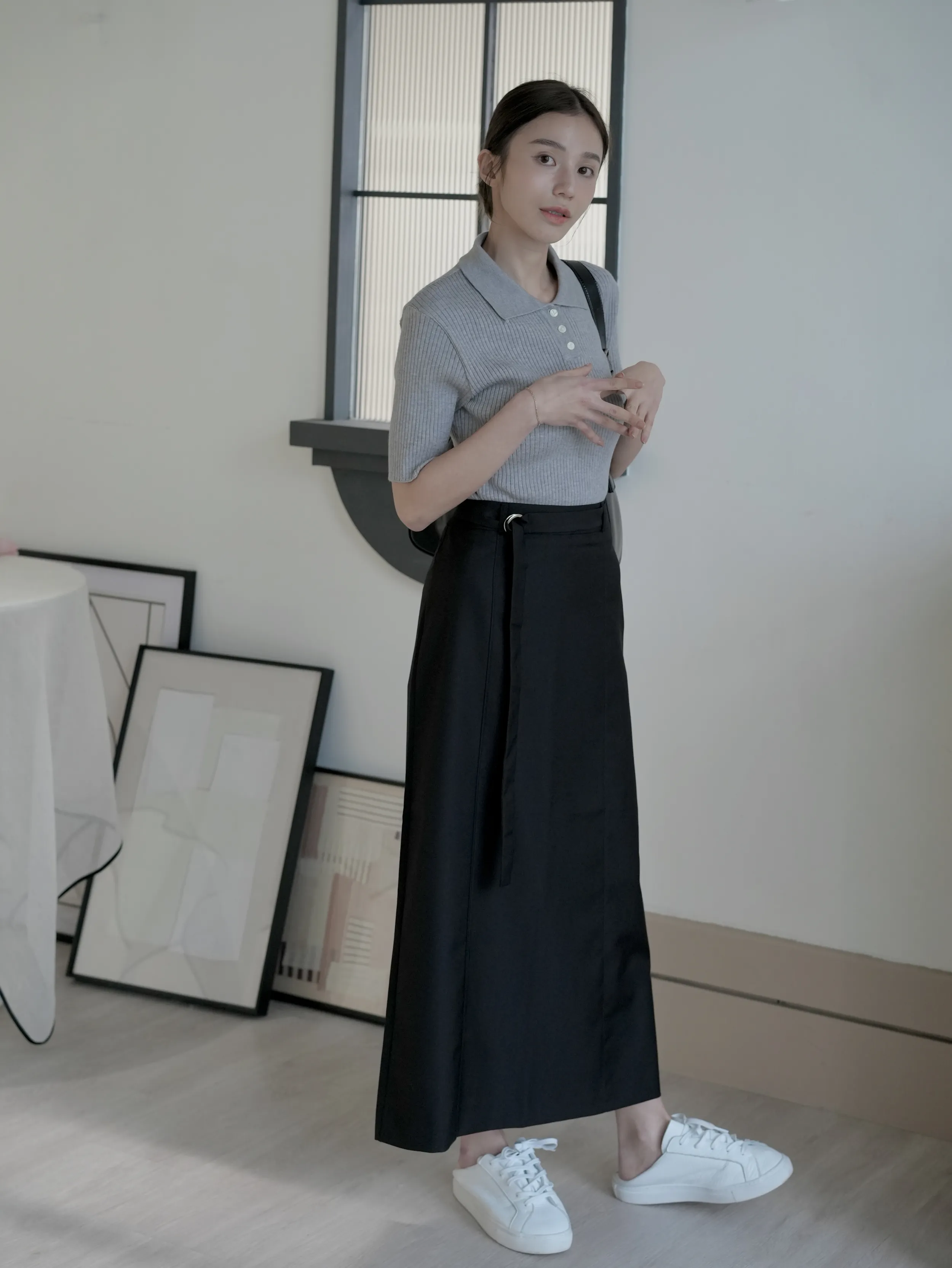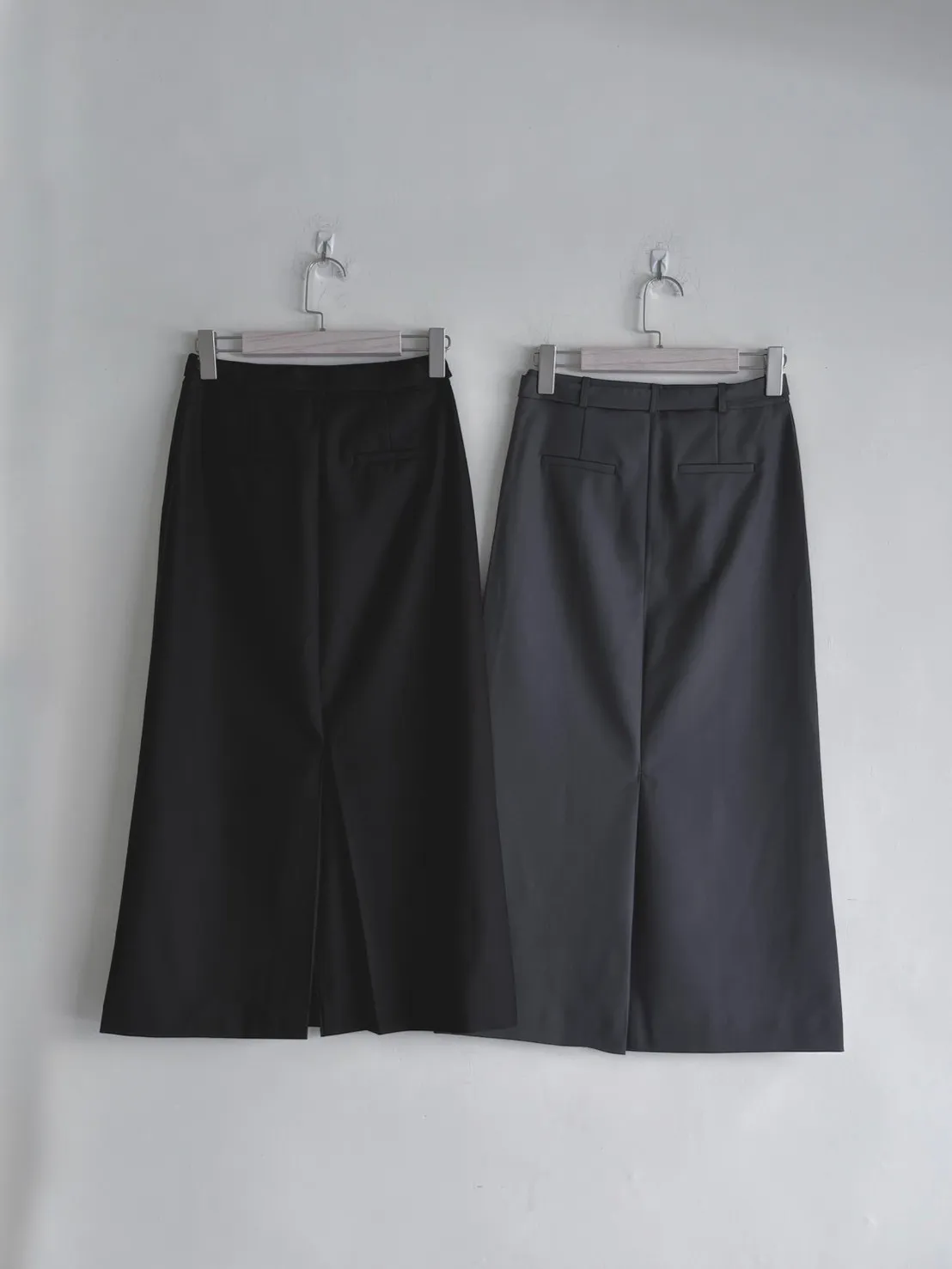 M03 釦環綁帶挺版後開衩直筒裙