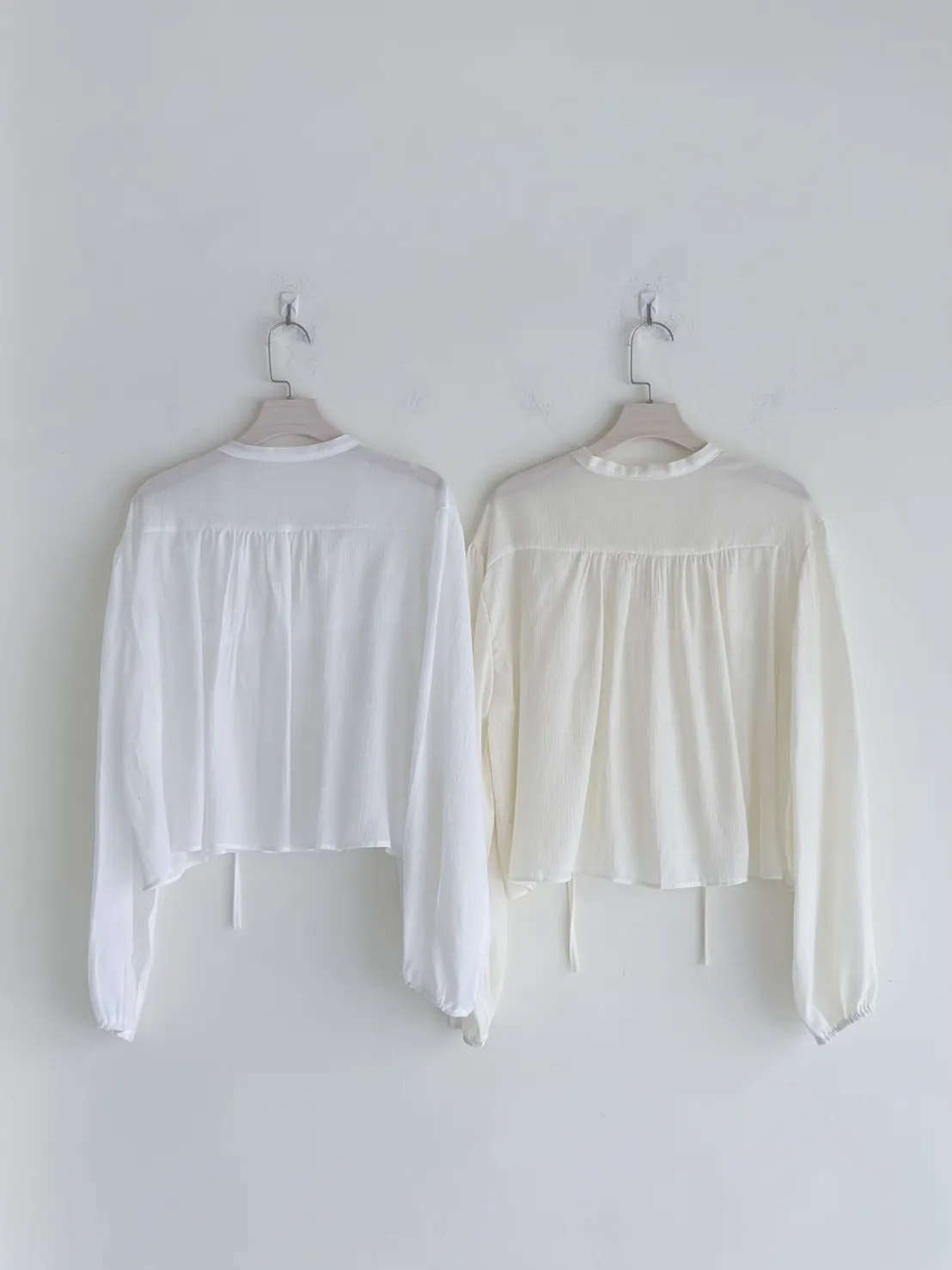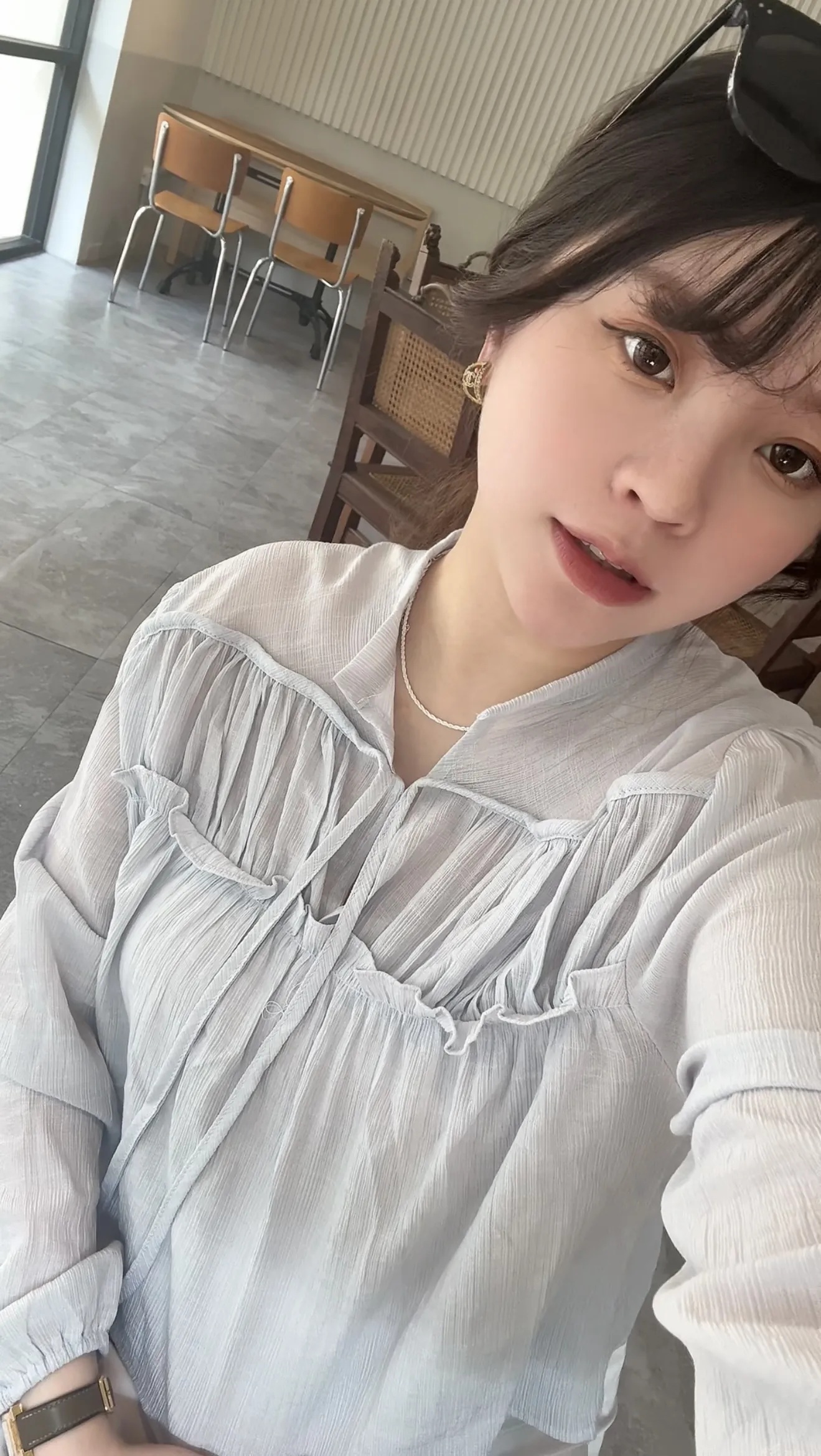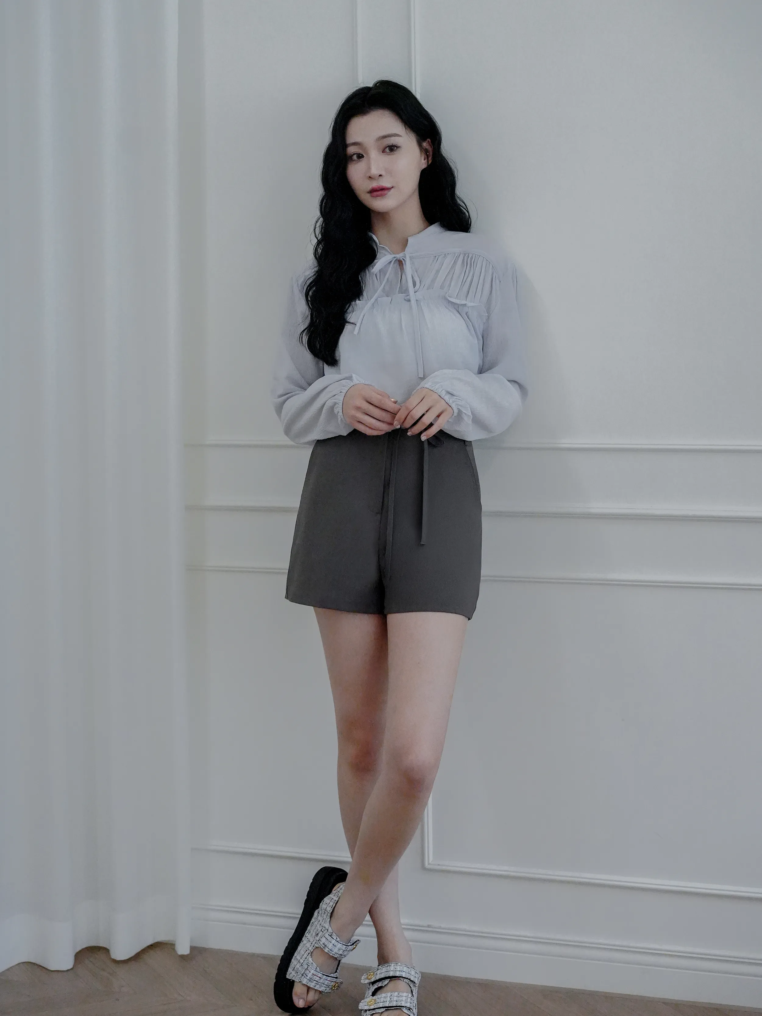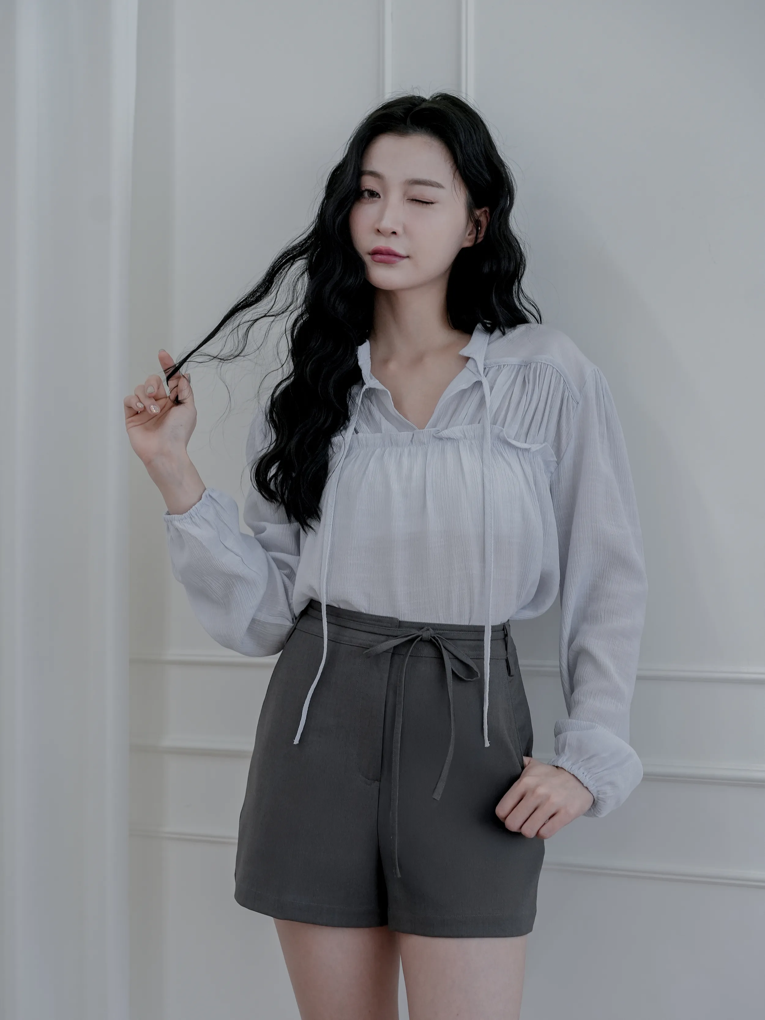 C01 #早秋仙女比例 抓皺花邊透膚綁帶上衣