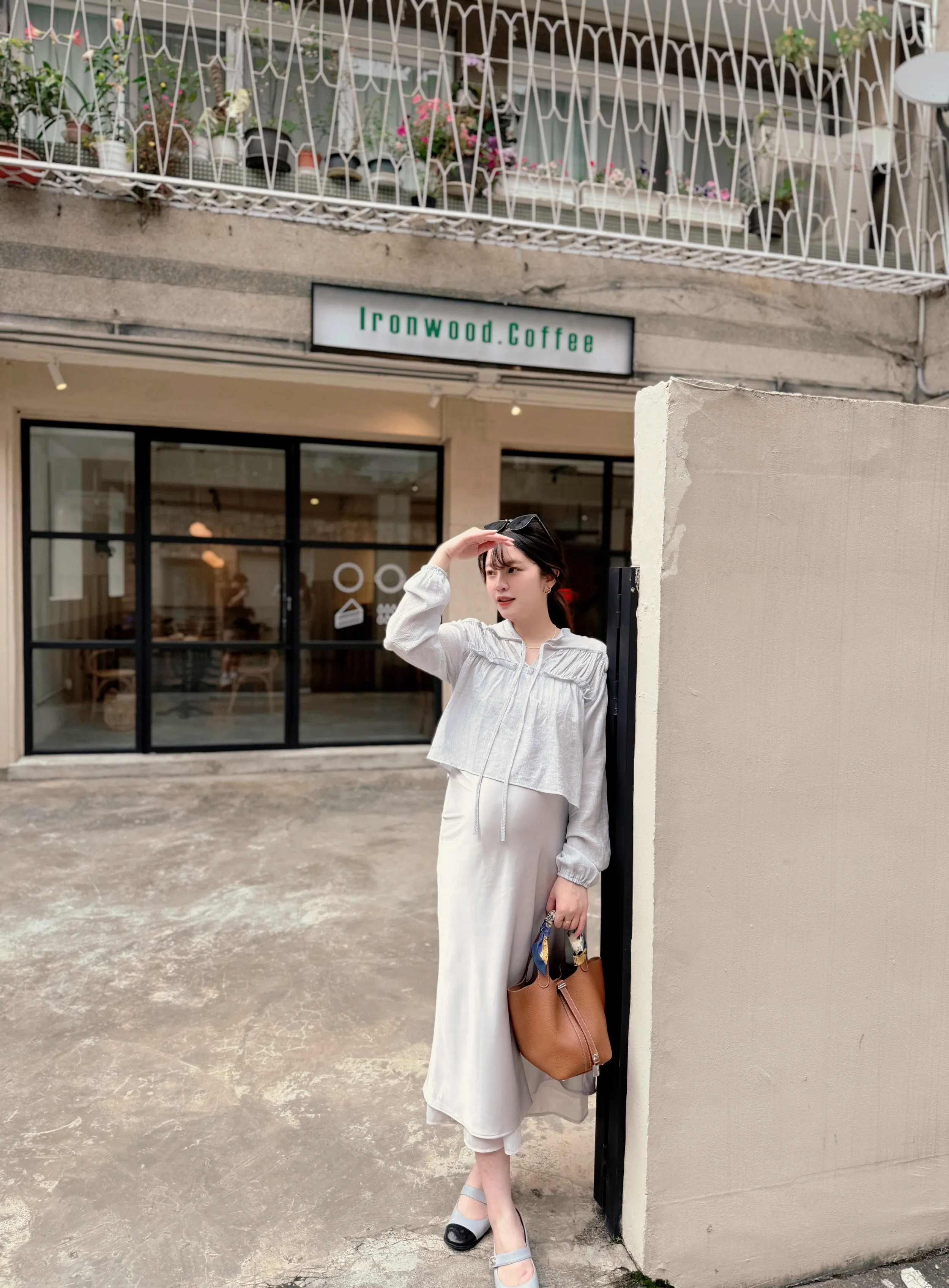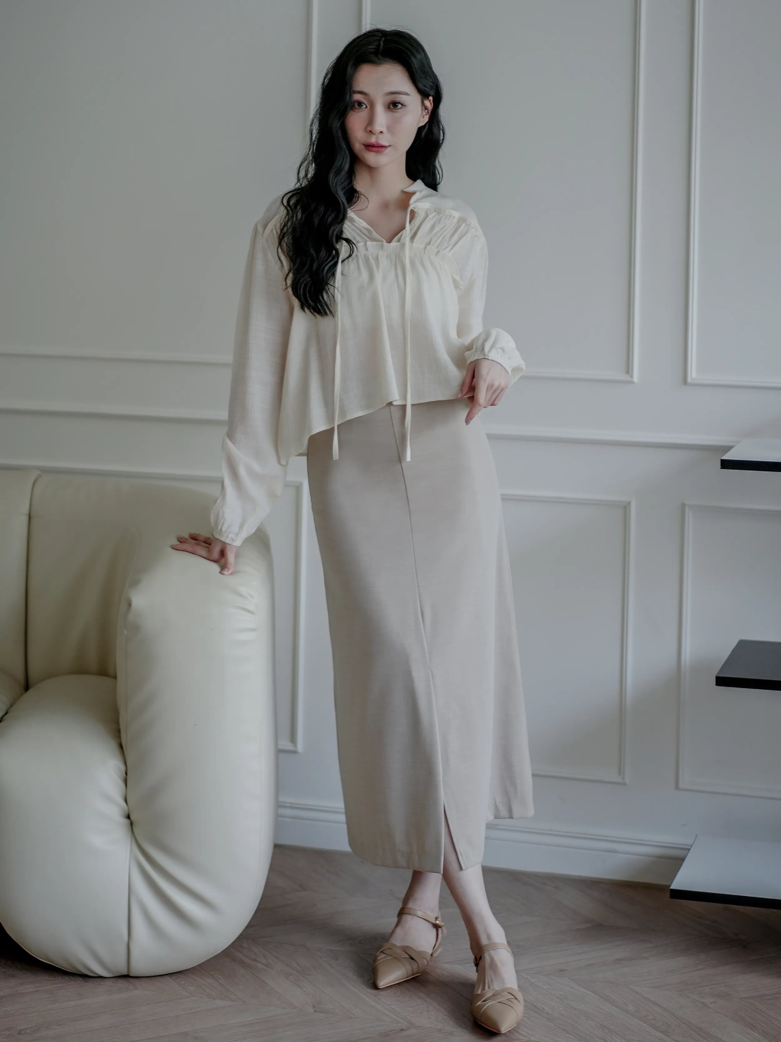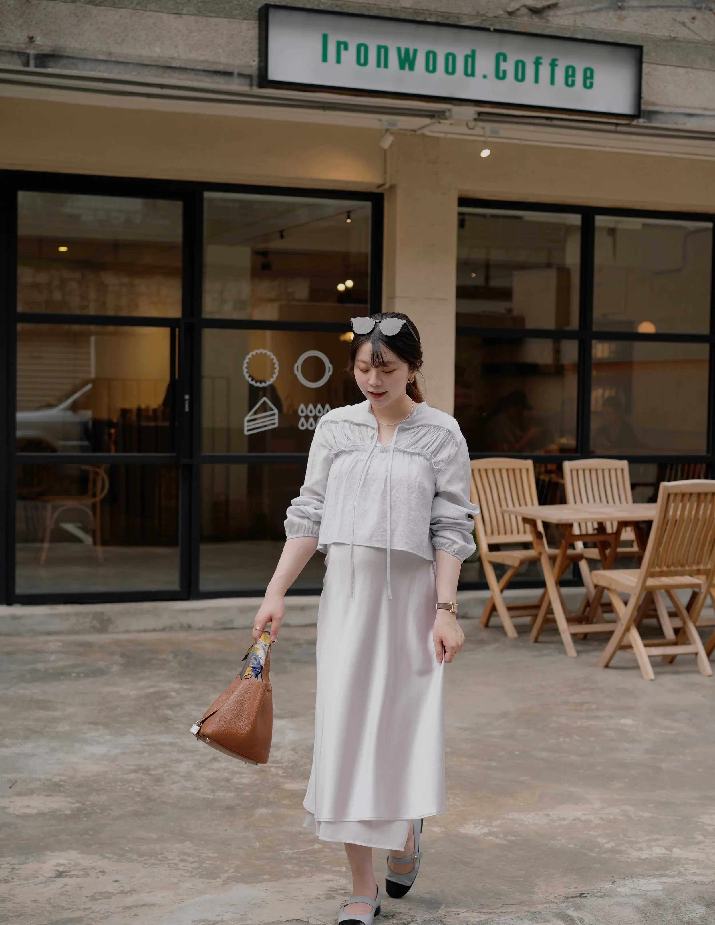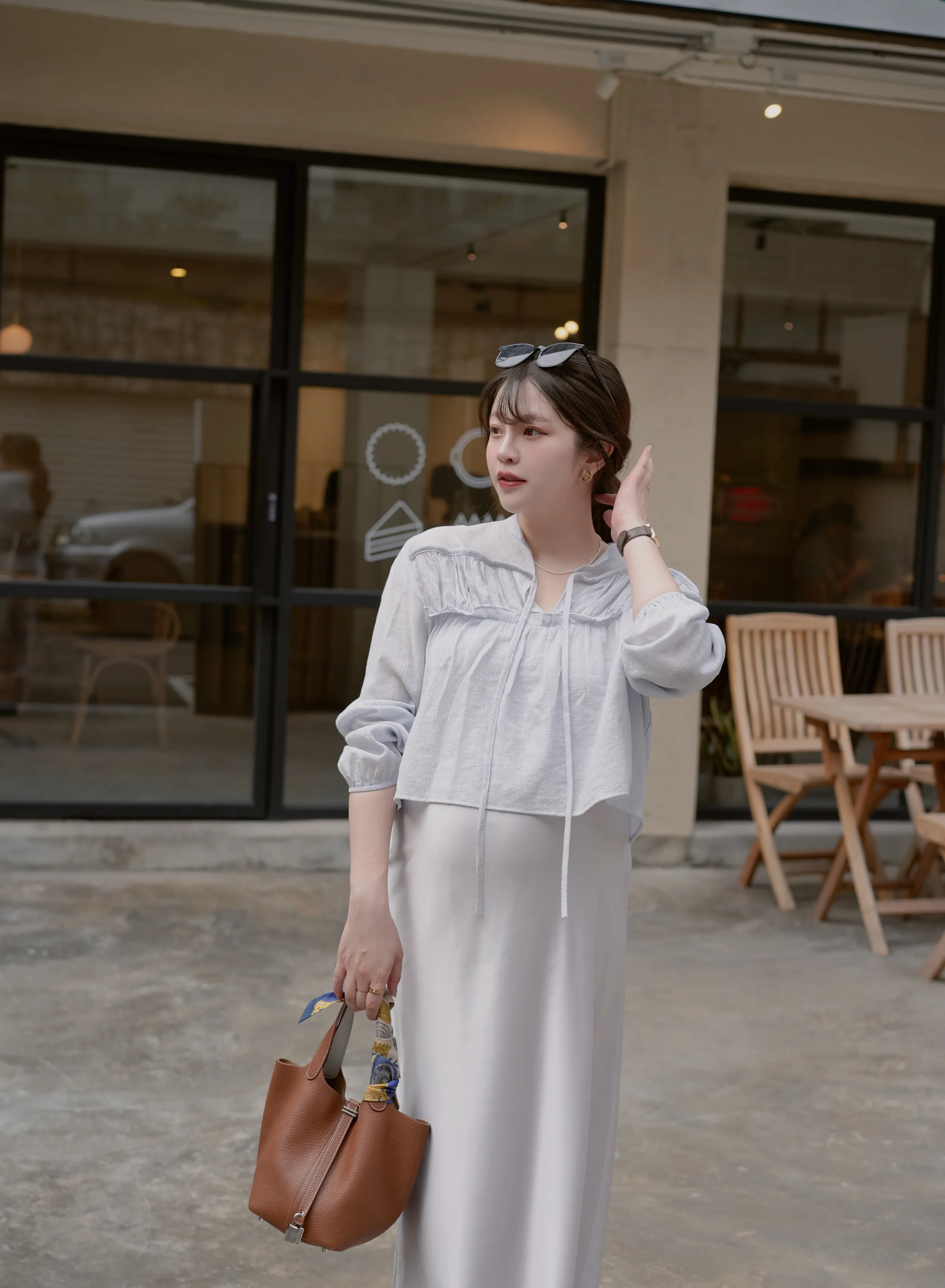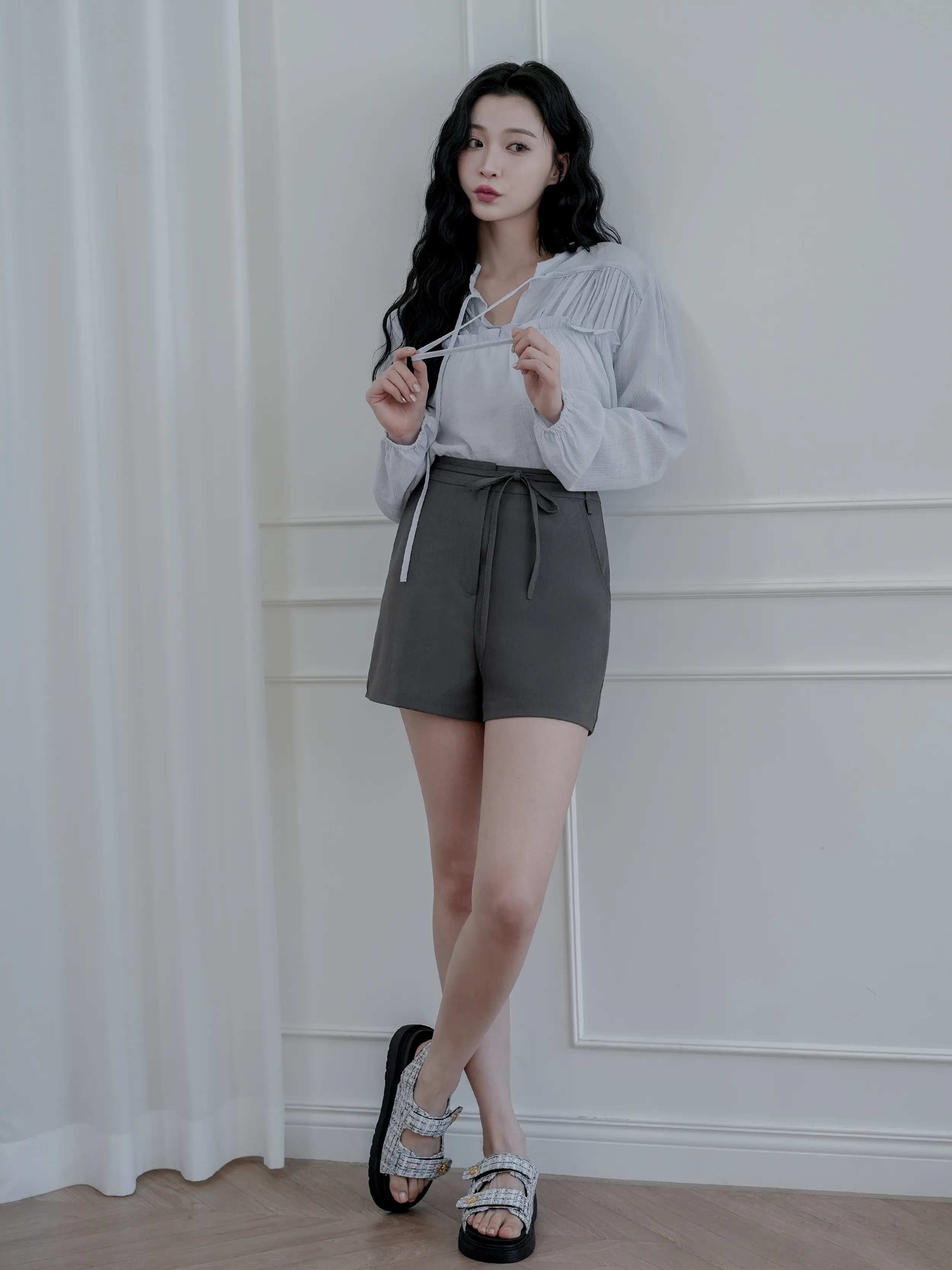 C01 #早秋仙女比例 抓皺花邊透膚綁帶上衣
