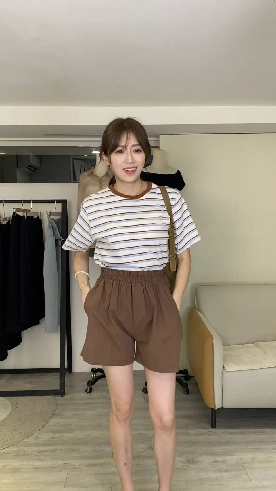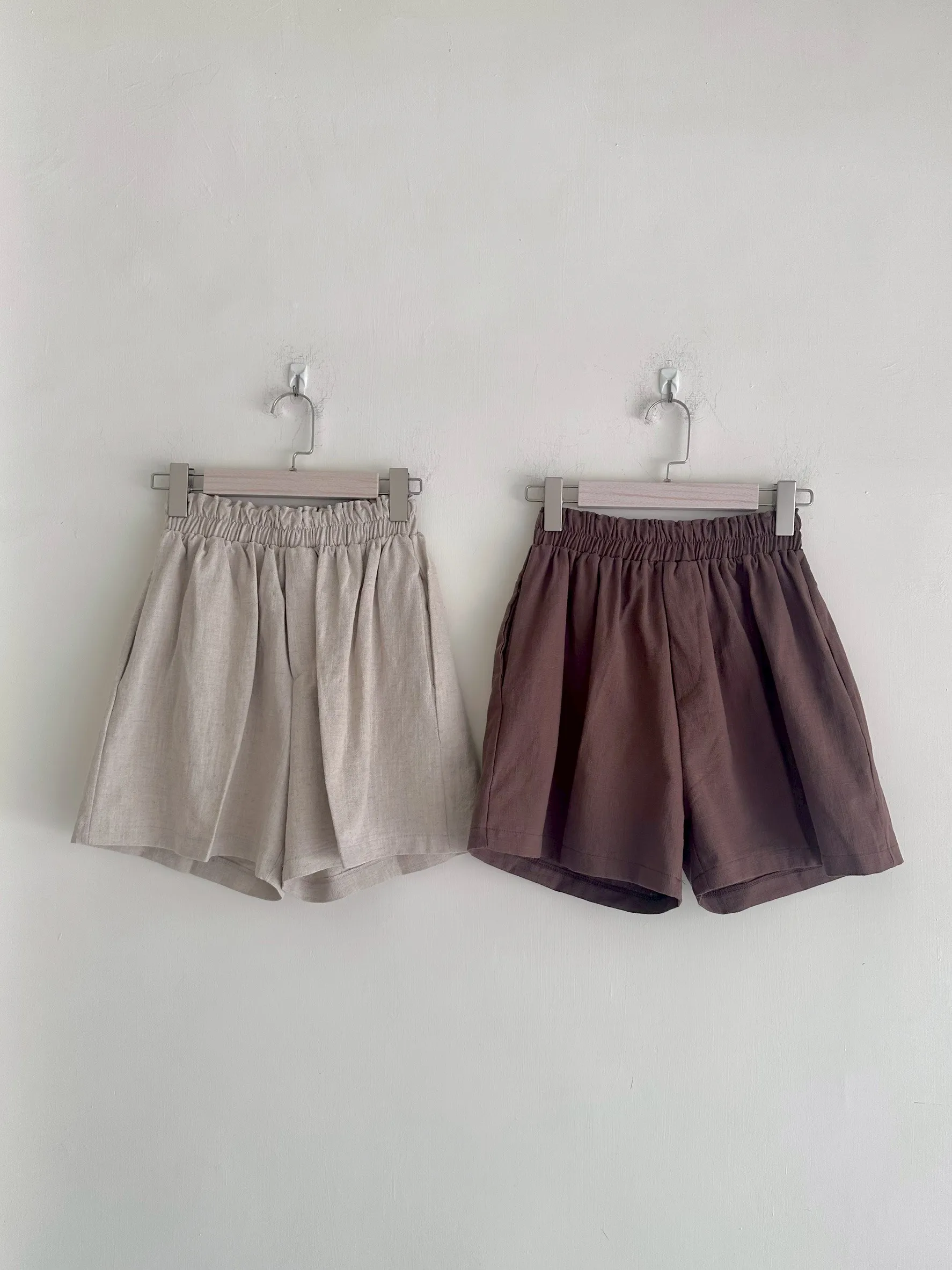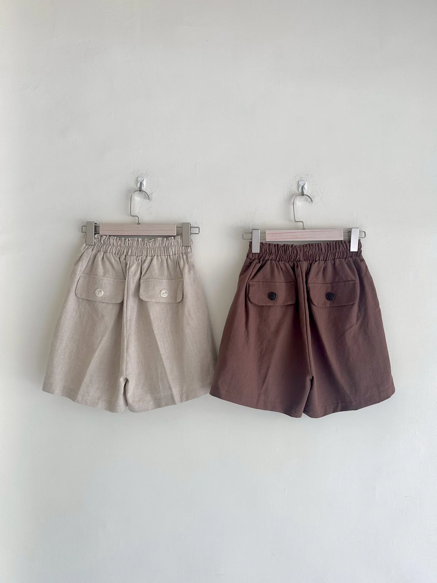 H01#夏日午後 棉麻鬆緊口袋造型短褲