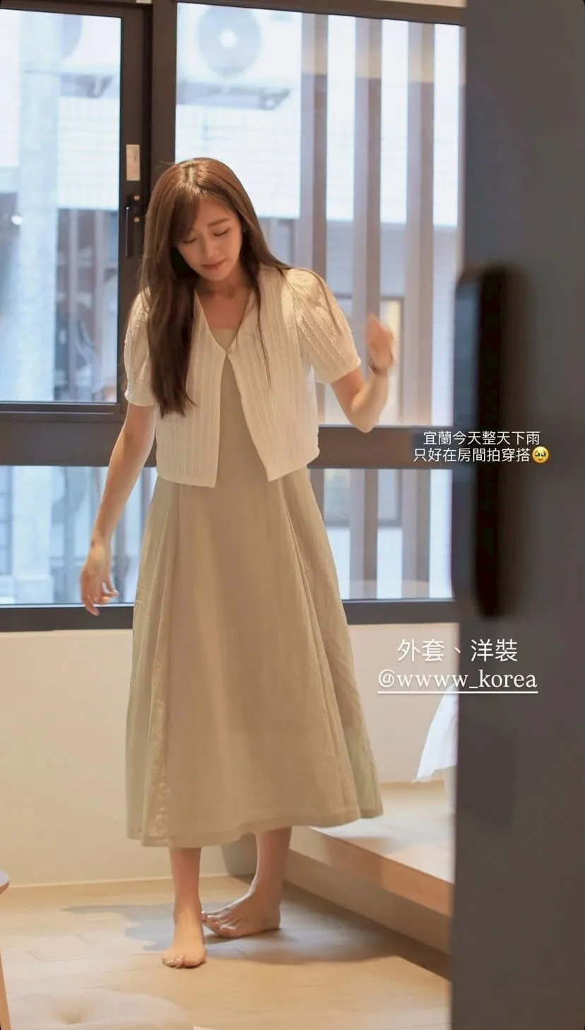 H04#午後暖陽 綁帶背後交叉連身長裙
