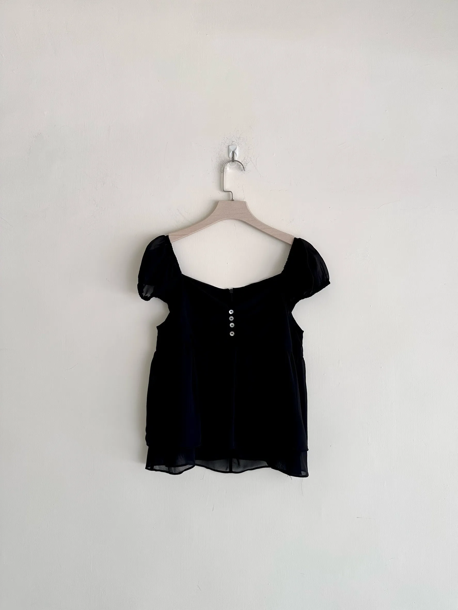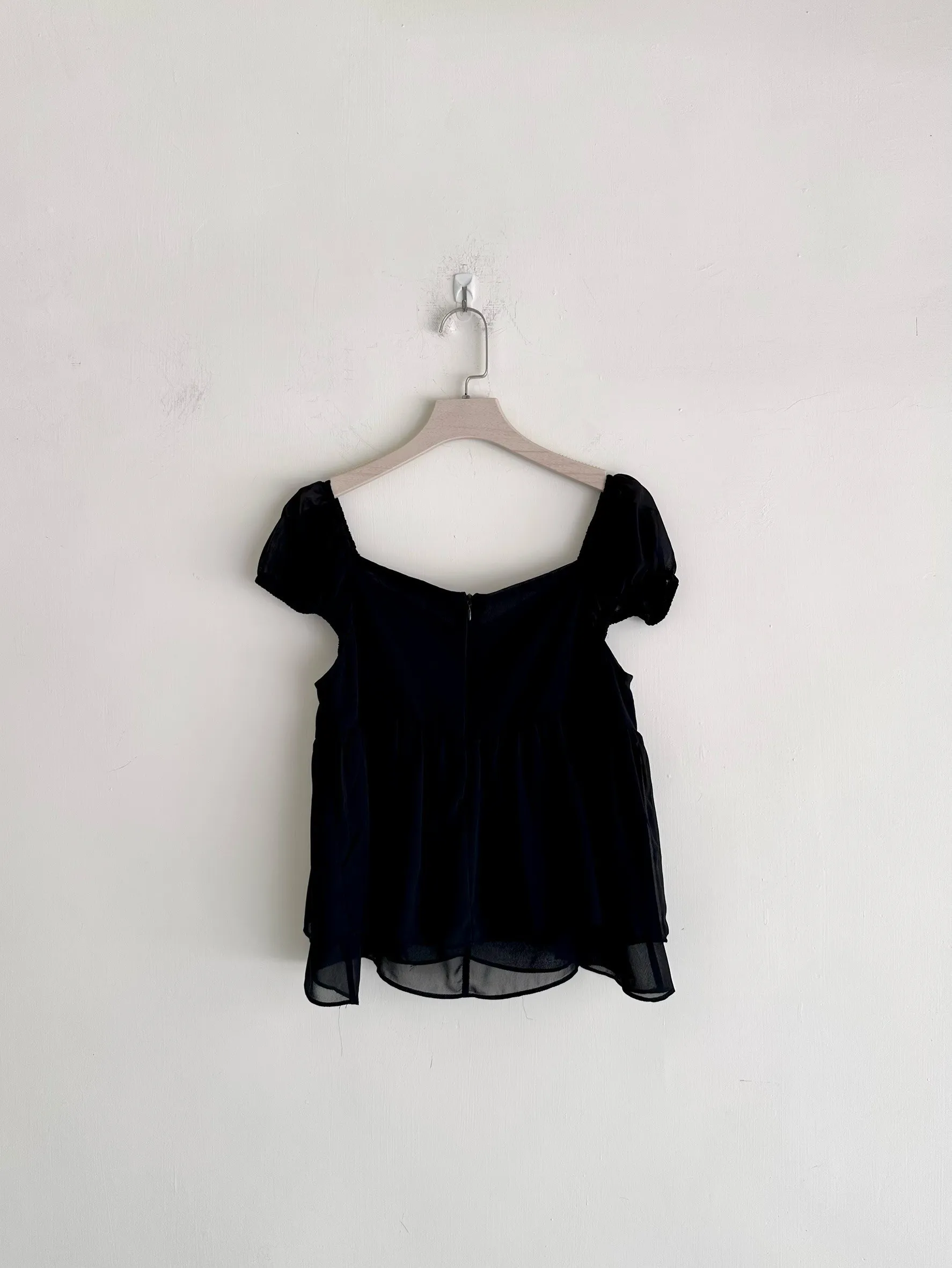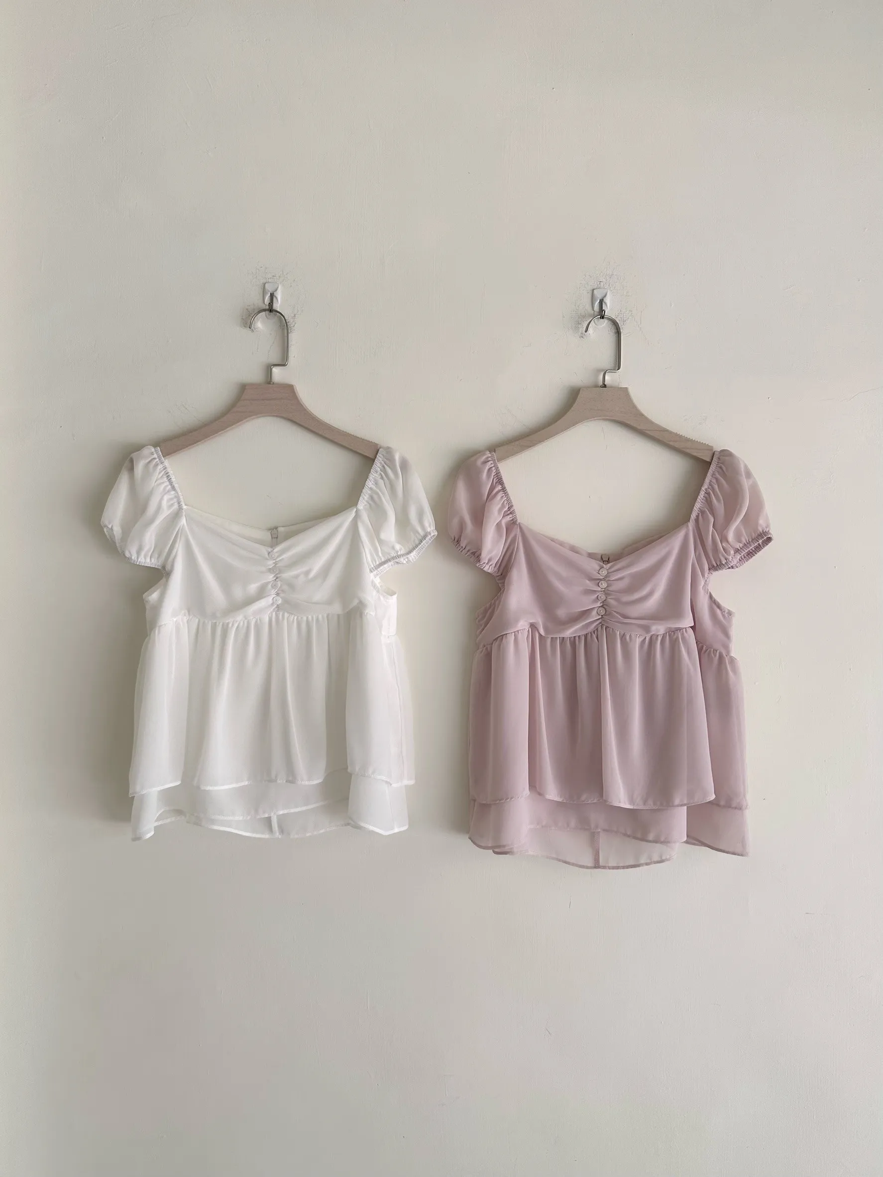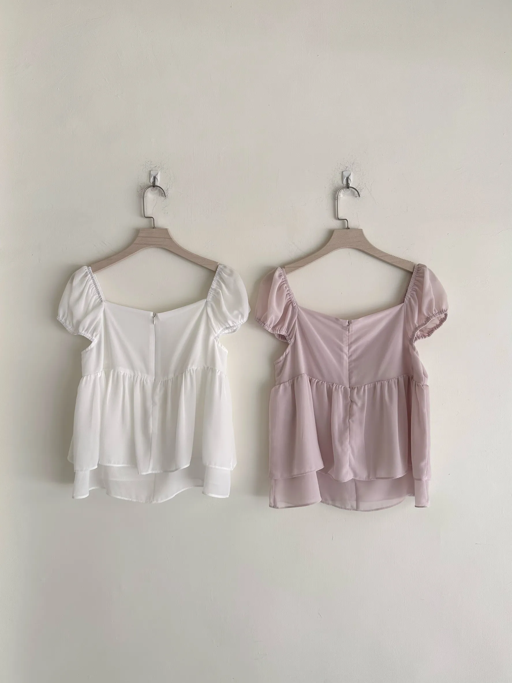 H07#甜美空氣感 抓皺層次感鑽石領雪紡背心