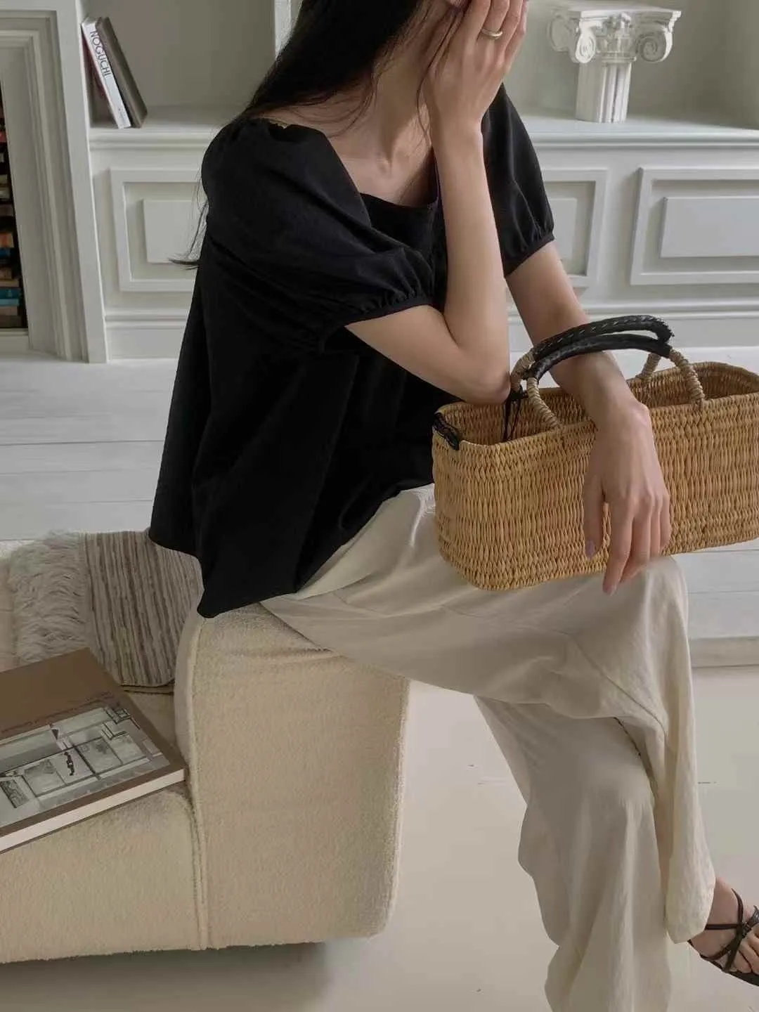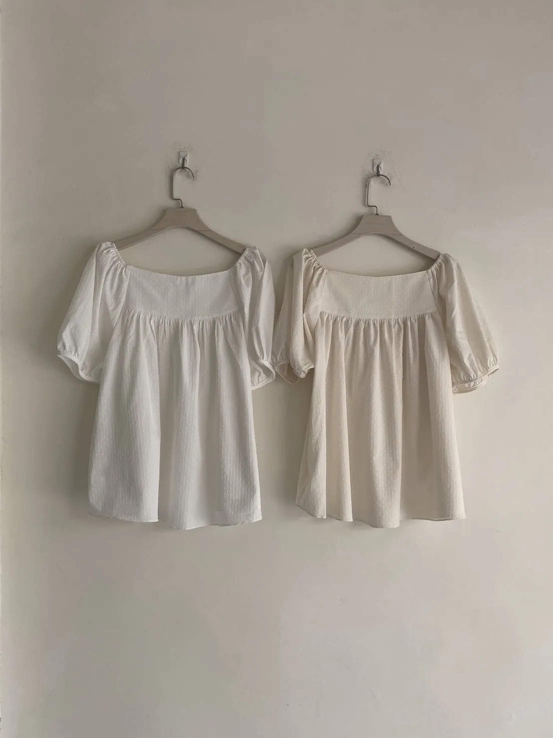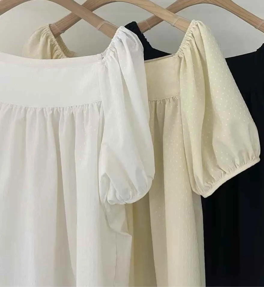 T15(高級區限量現貨)雪紡澎袖點點抓褶上衣