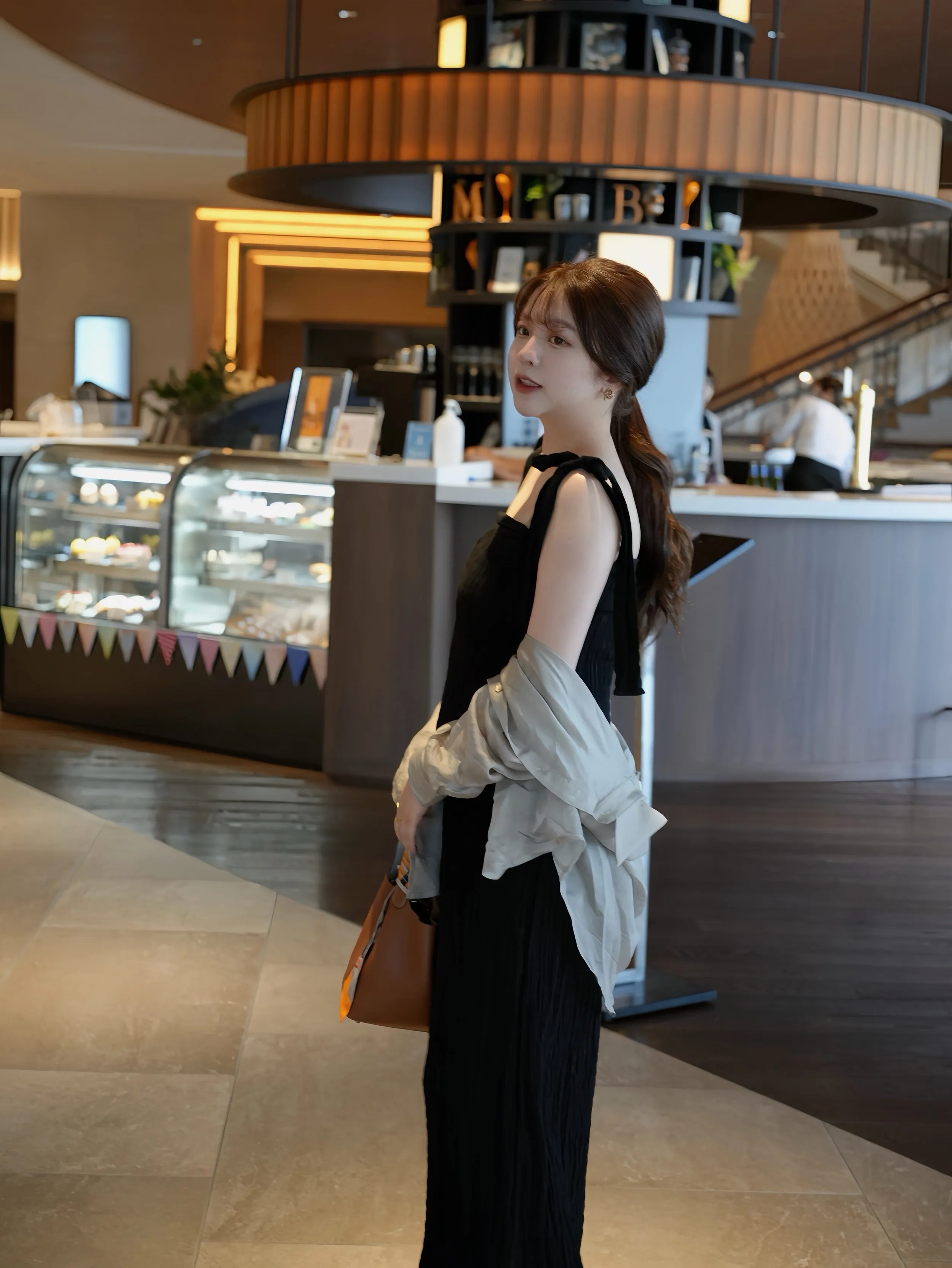 T16(高級區限量現貨)渡假風綁帶皺皺長洋