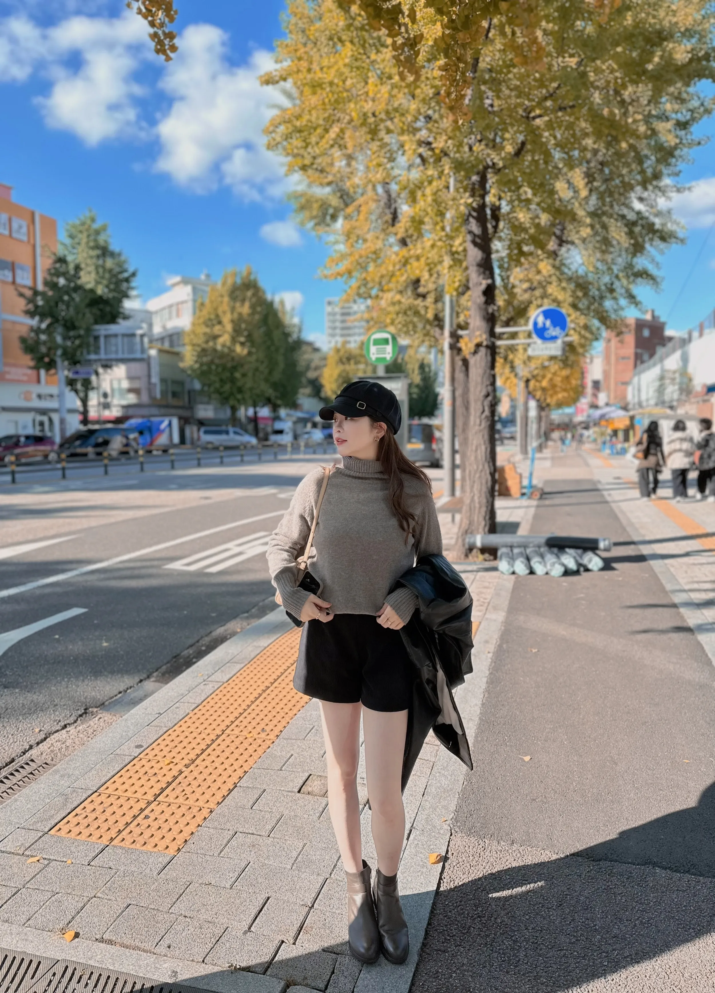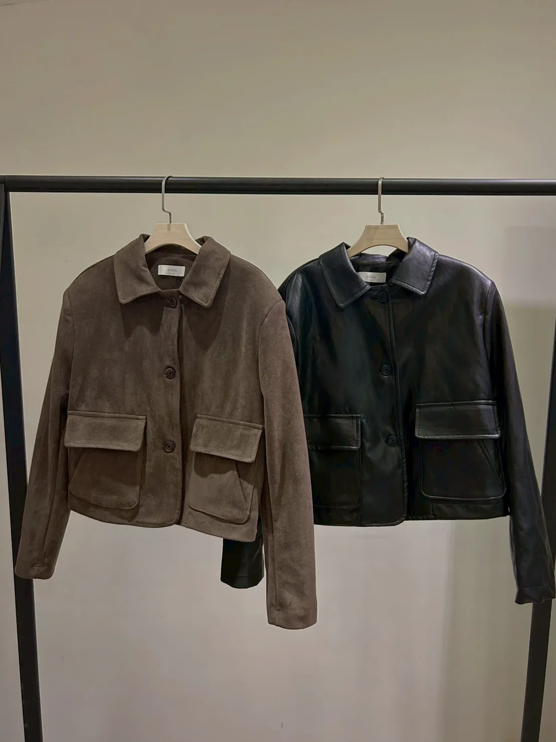 S01#梨泰院的夜 皮革內刷親膚絨面排扣外套