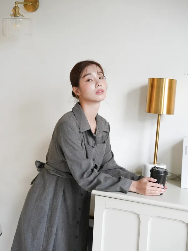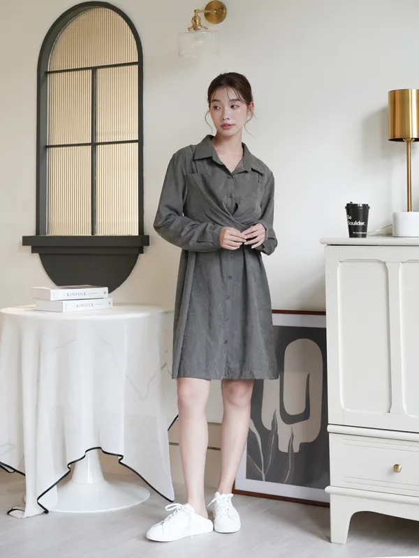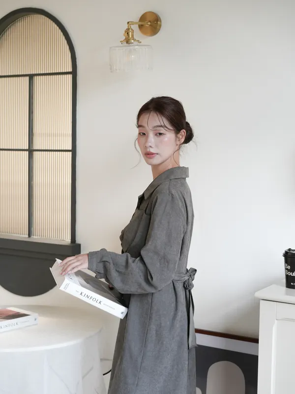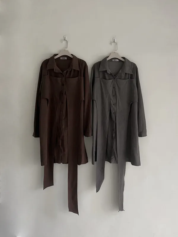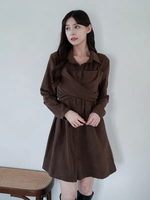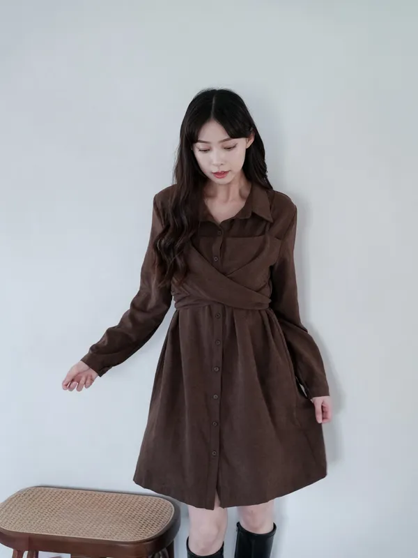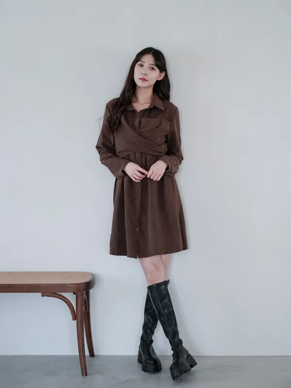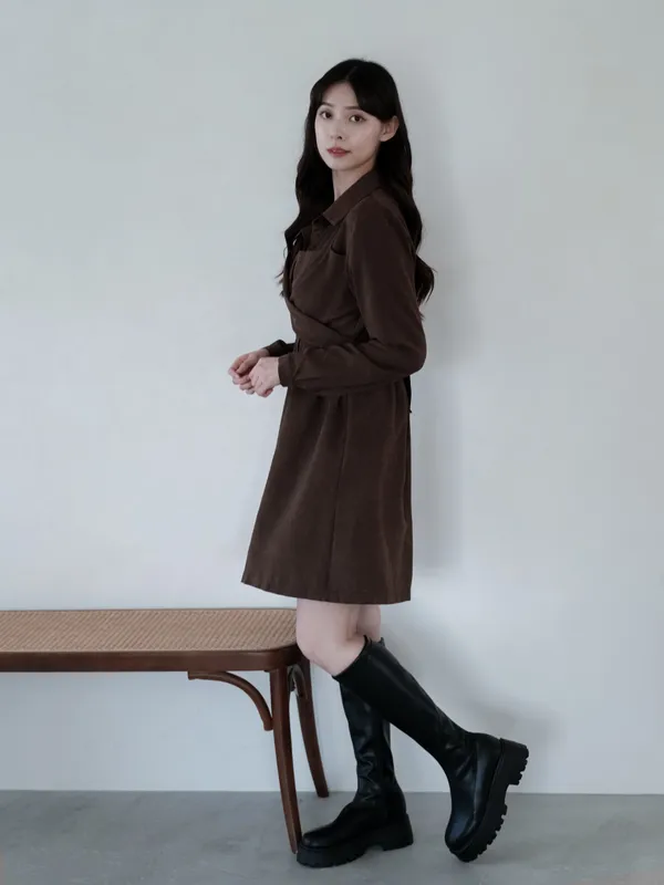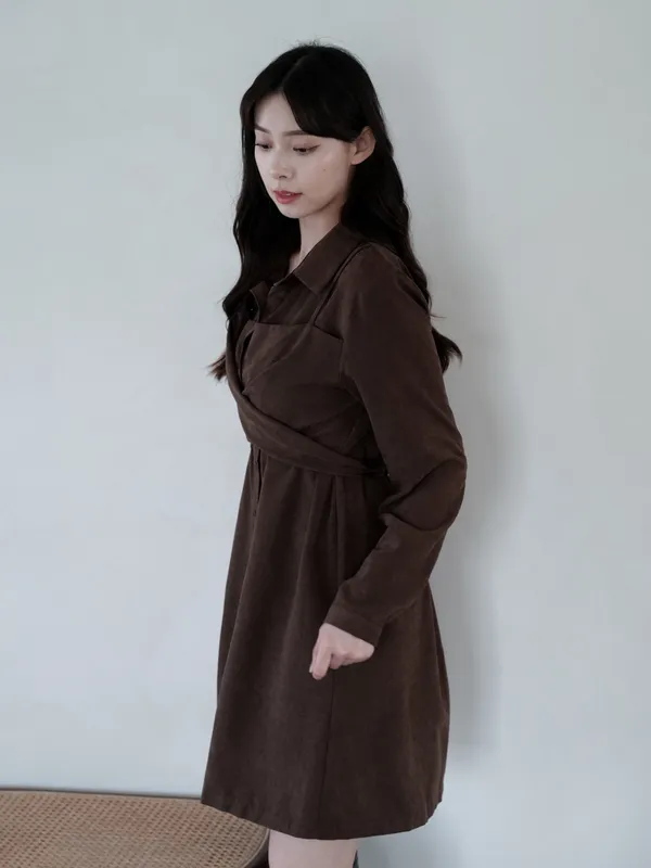 S07 #絕對高級 麂皮綁帶扭結襯衫式短洋