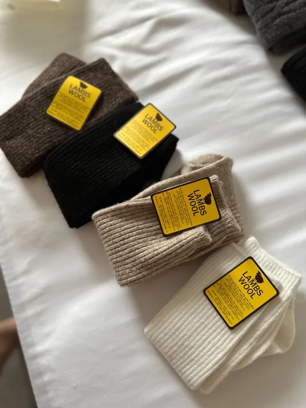 G10 #落日晚霞 LAMBS Wool直坑條羊毛中長襪(四色一組)