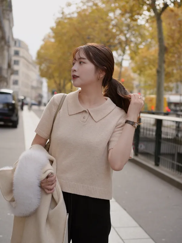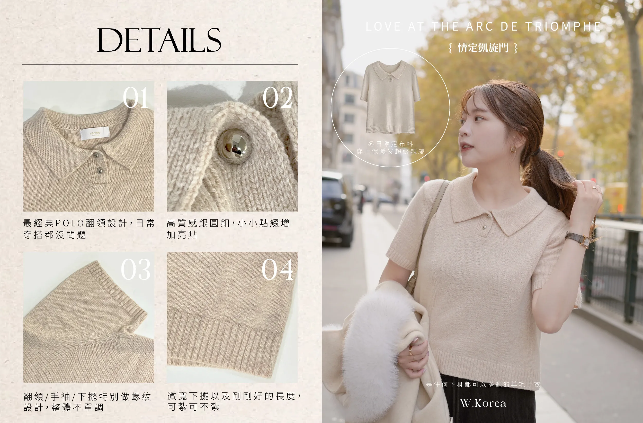 翻領/手袖/下擺特別做螺紋設計 整體不單調