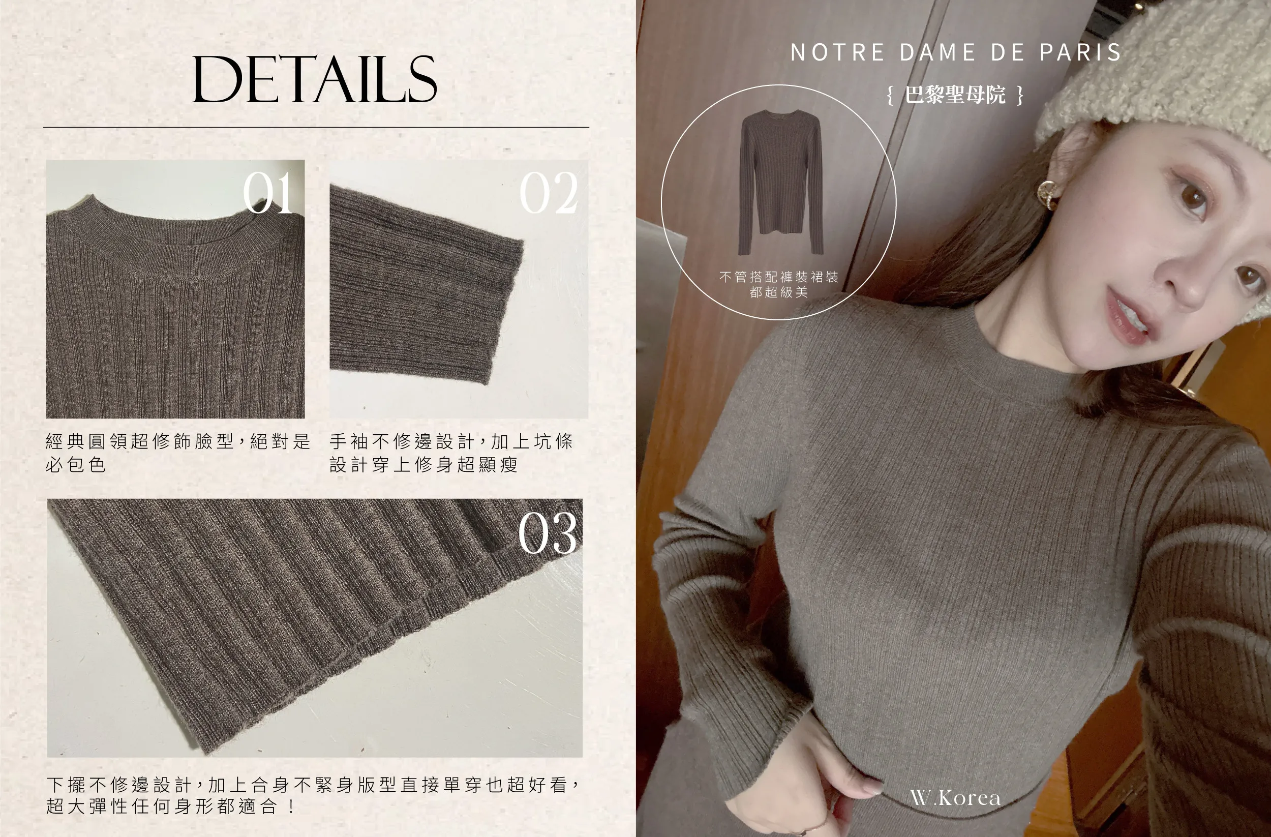 材質:10%羊毛超柔軟10%羊毛極親膚保暖材質經典圓領超修飾臉型 絕對是必包色坑條設計穿上修身超顯瘦合身不緊身版型直接單穿也超好看超大彈性任何身形都適合 !不管搭配褲裝裙裝都超級美 身形指南 身高 體重 鞋碼 麻糬媽 160 50 24.5 逸歡 168 48 25 彭彭 165 47 23.5