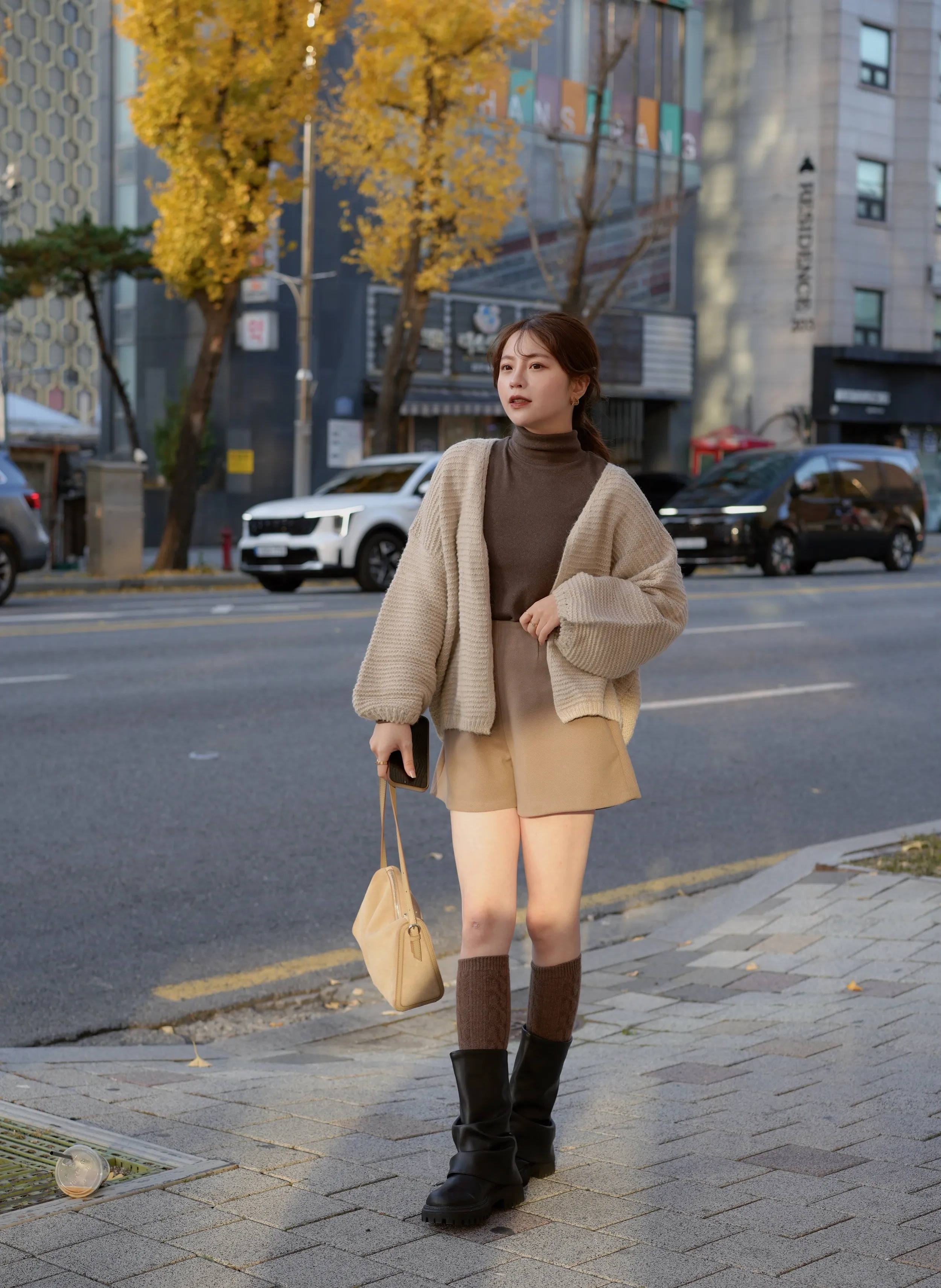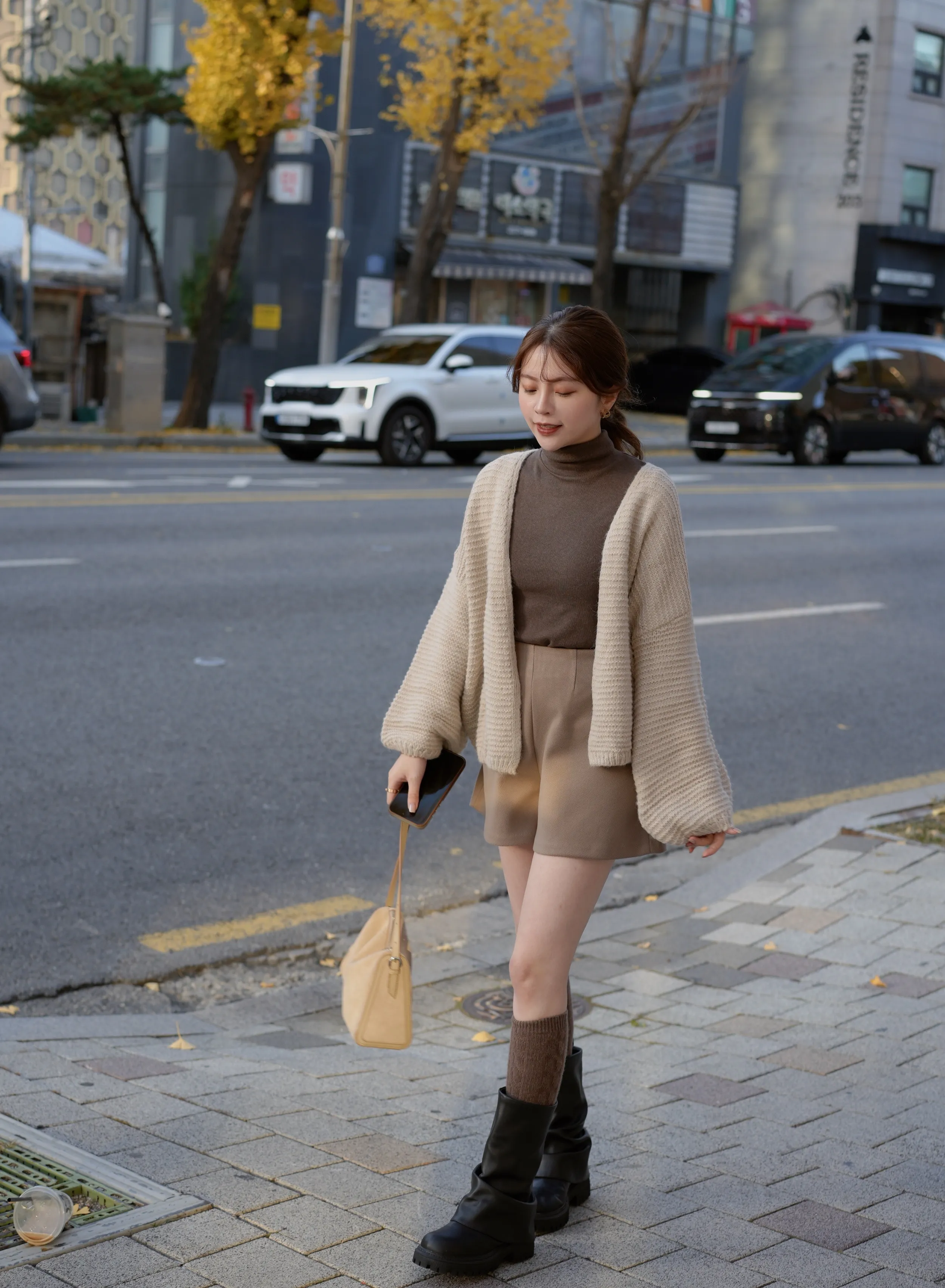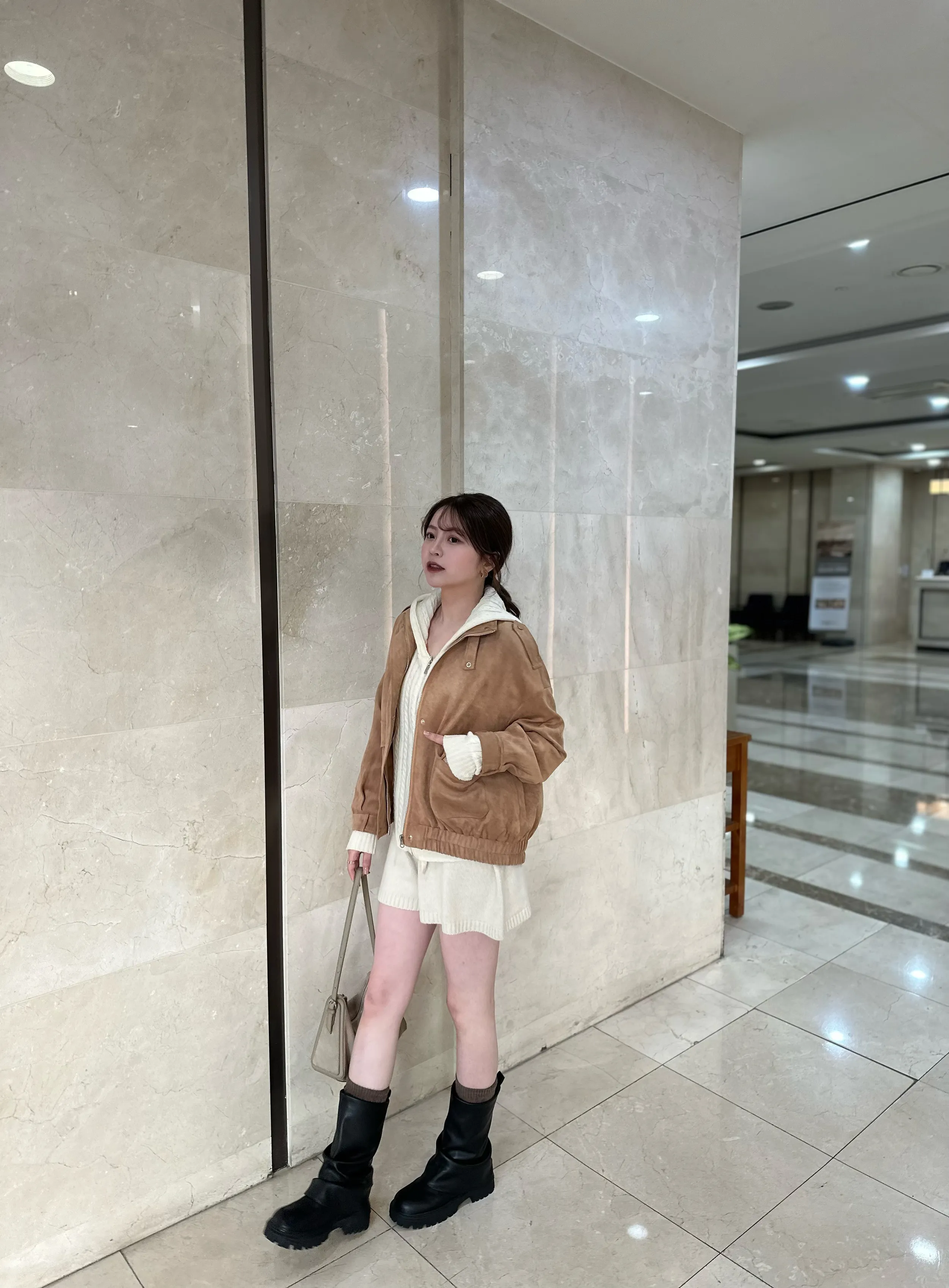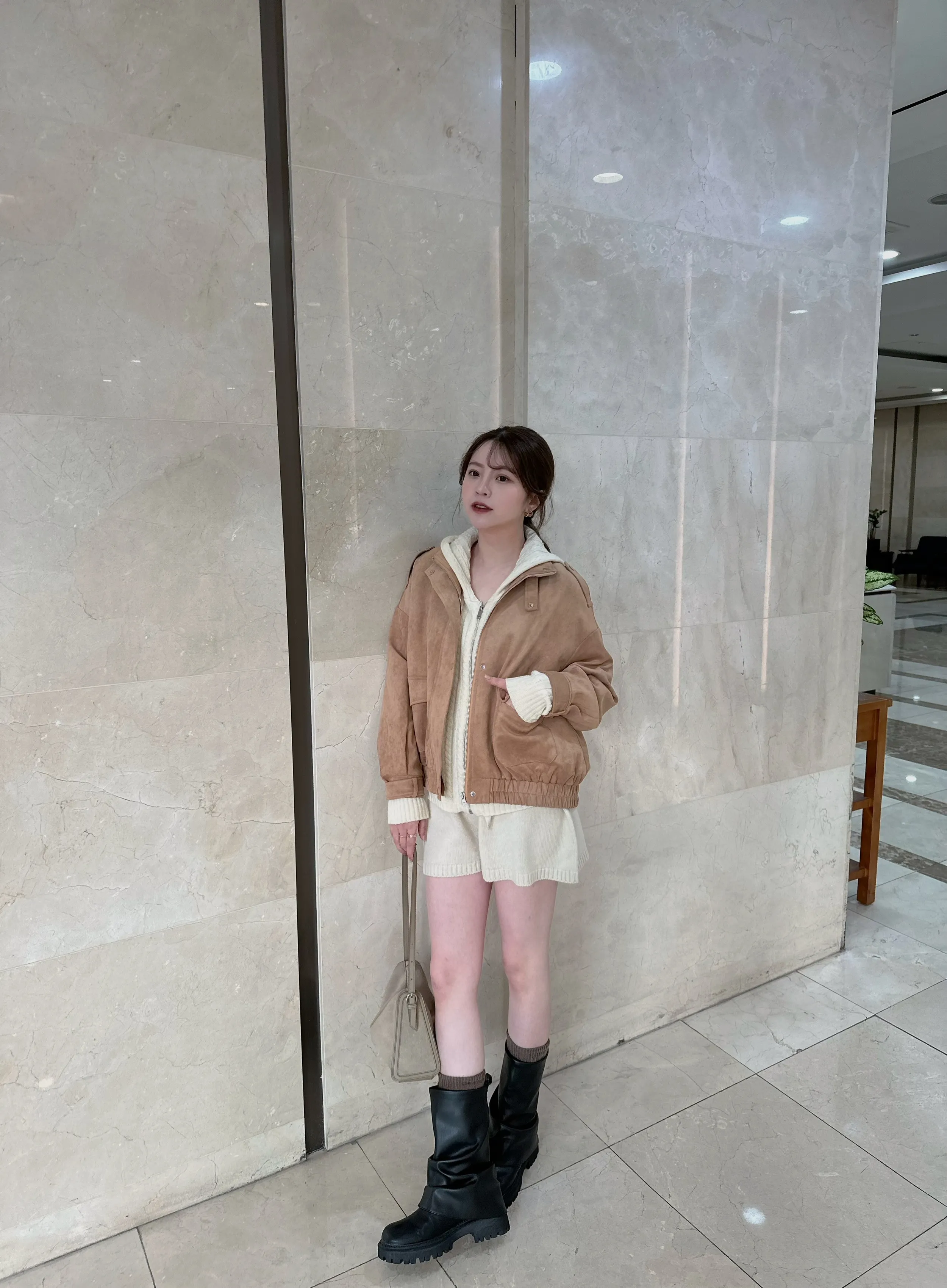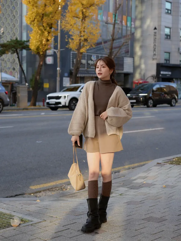 F06 #巴黎率性街頭感 韓國中筒手工牛皮皺皺靴