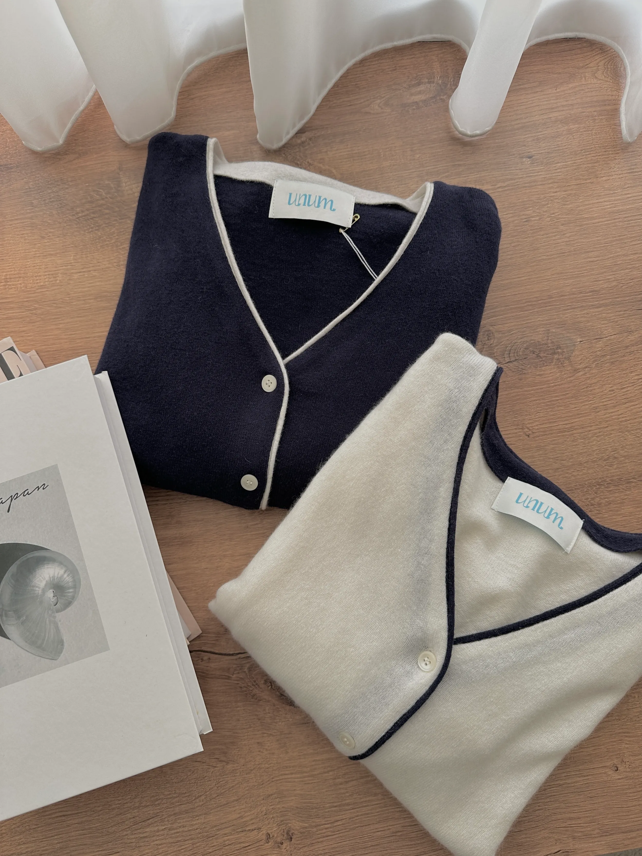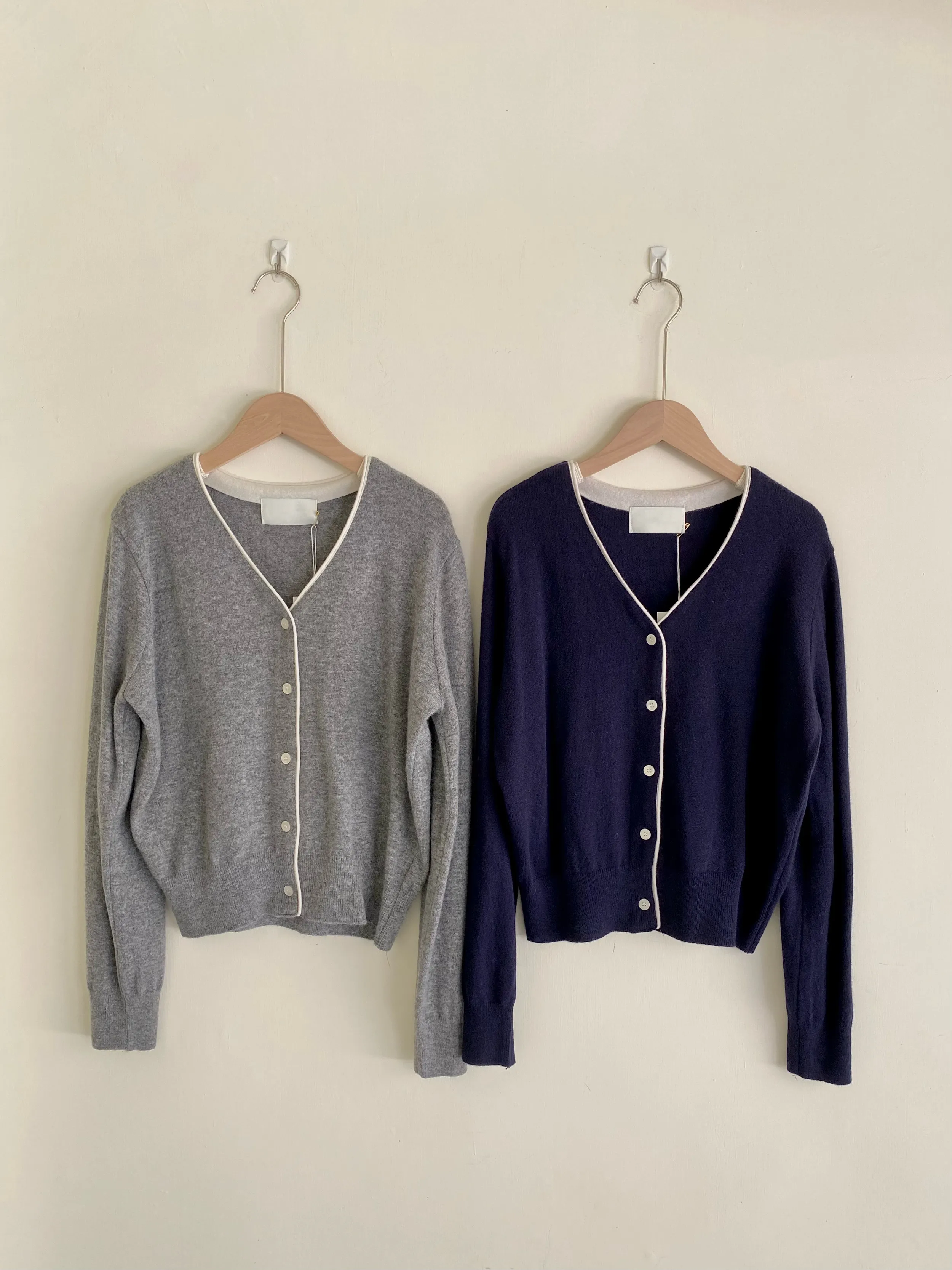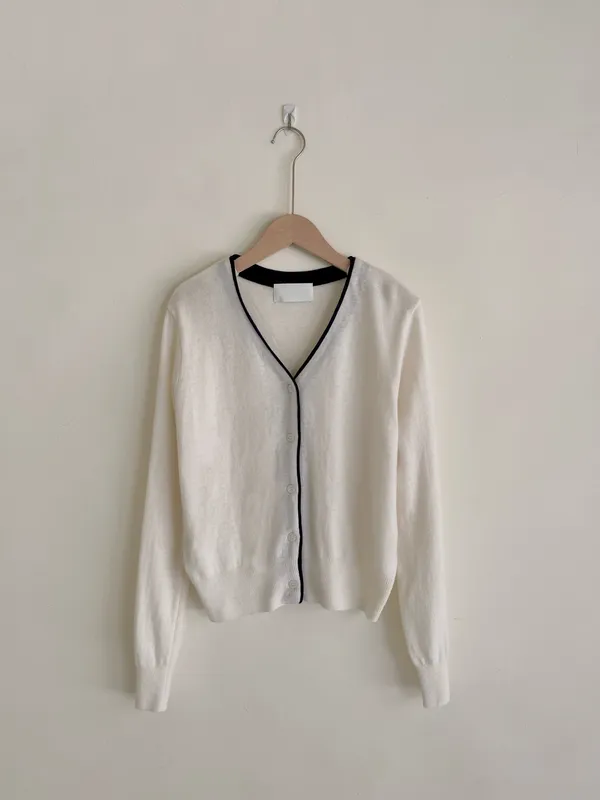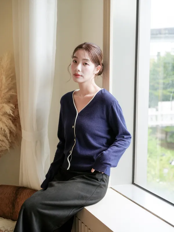 F19 #韓系慵懶 撞色滾邊排釦羊毛開衫