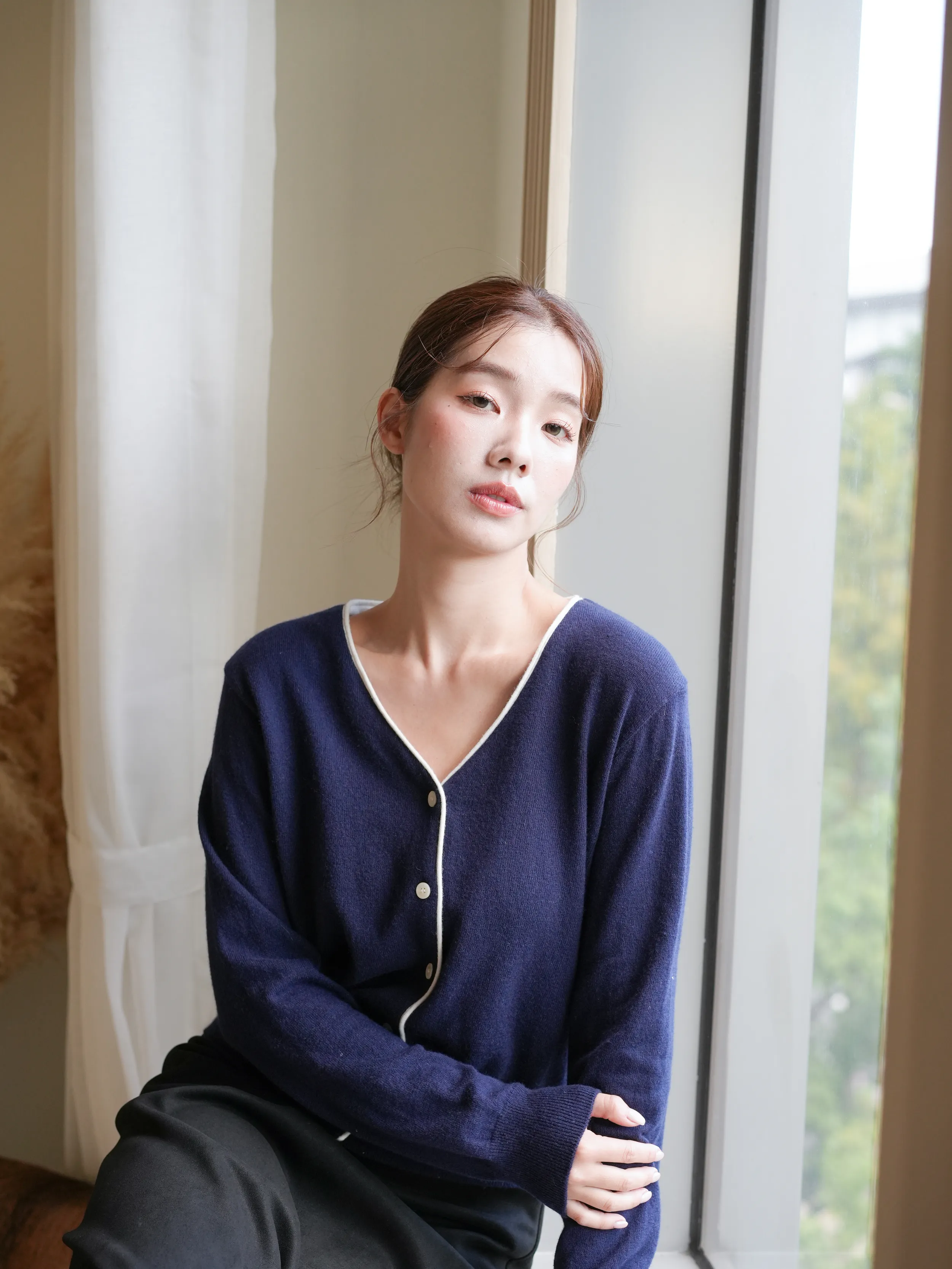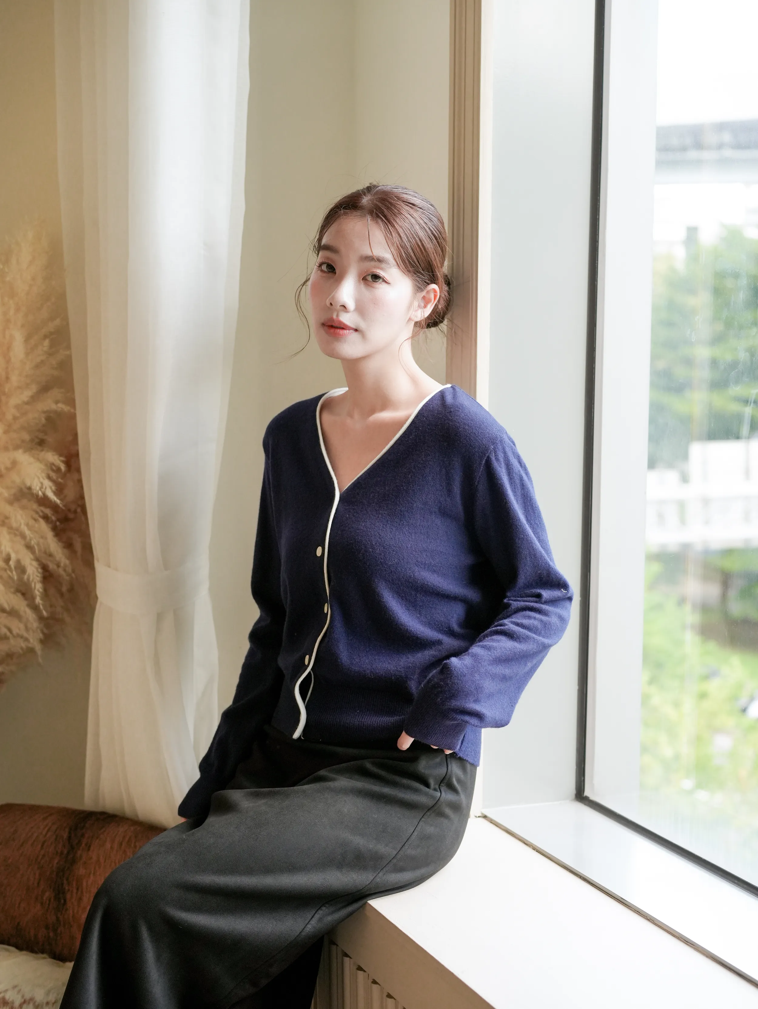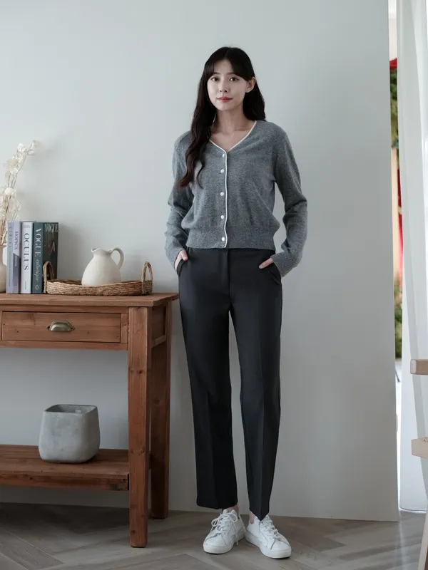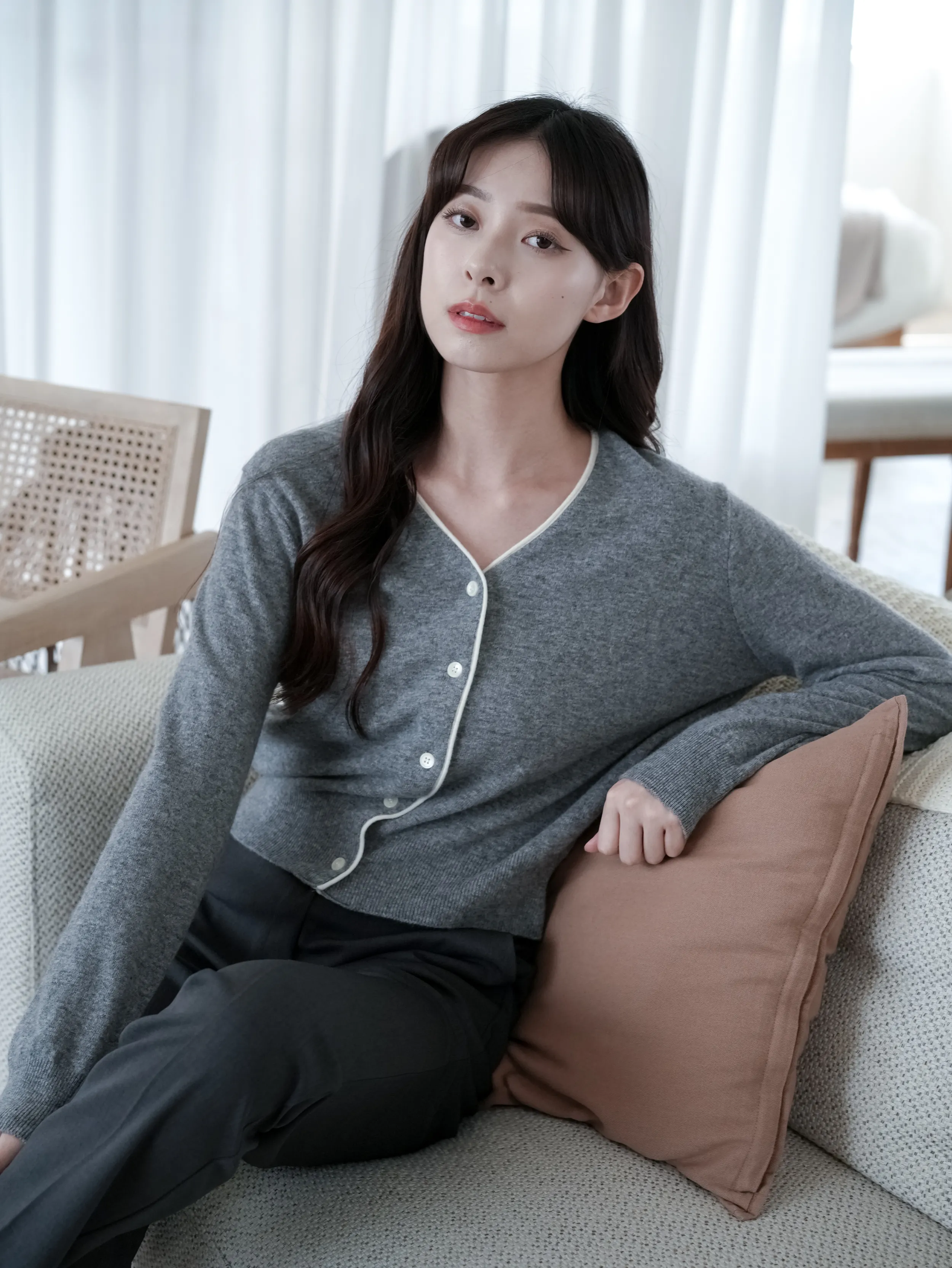 F19 #韓系慵懶 撞色滾邊排釦羊毛開衫