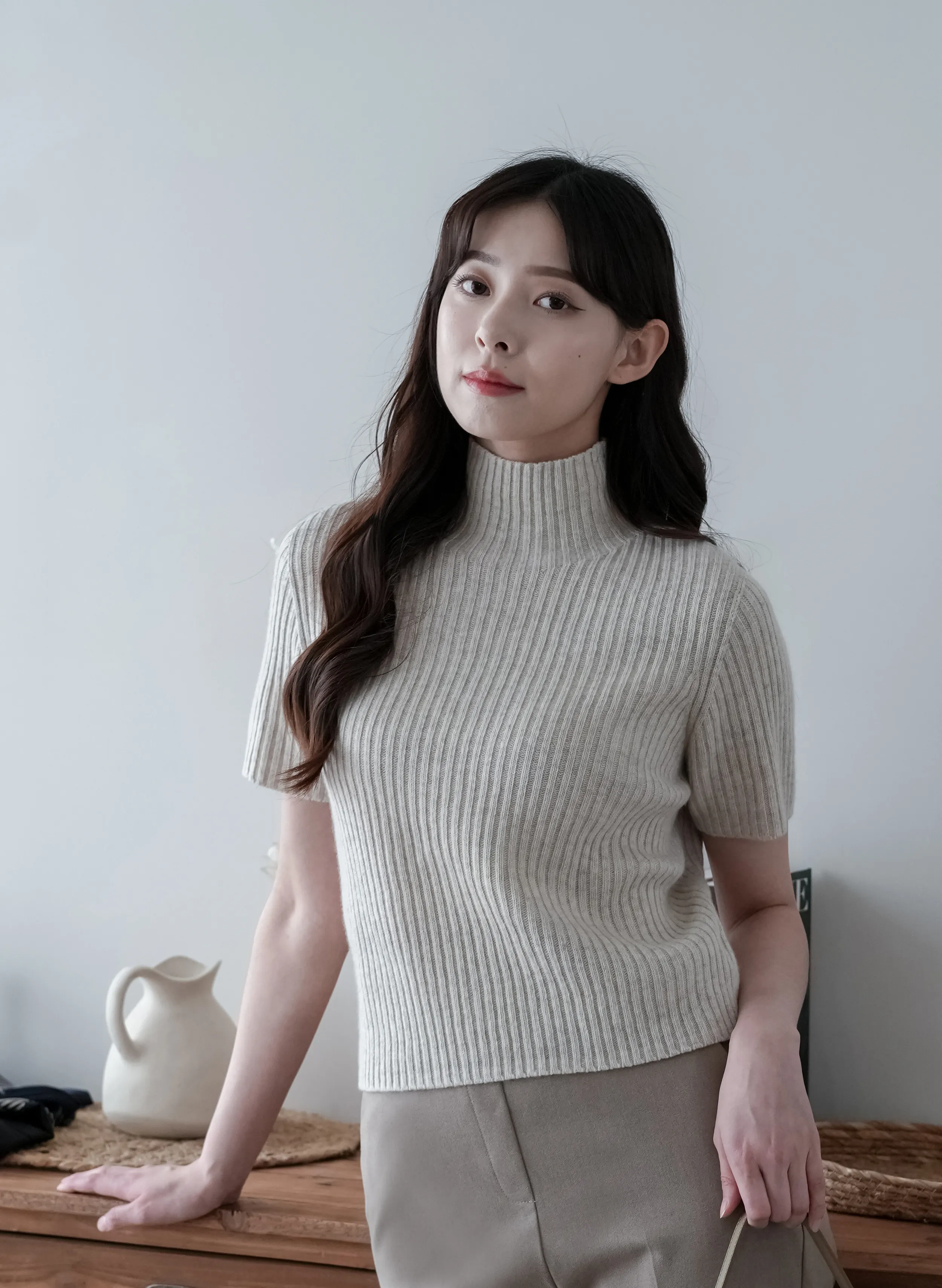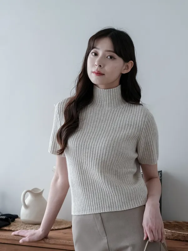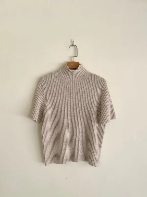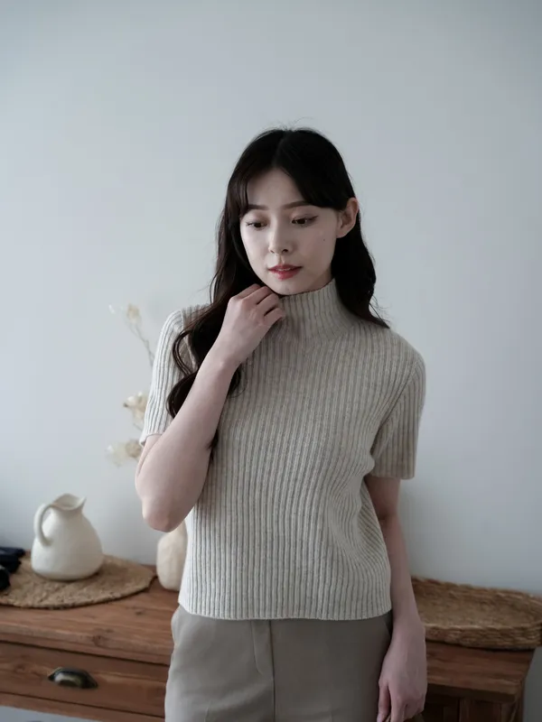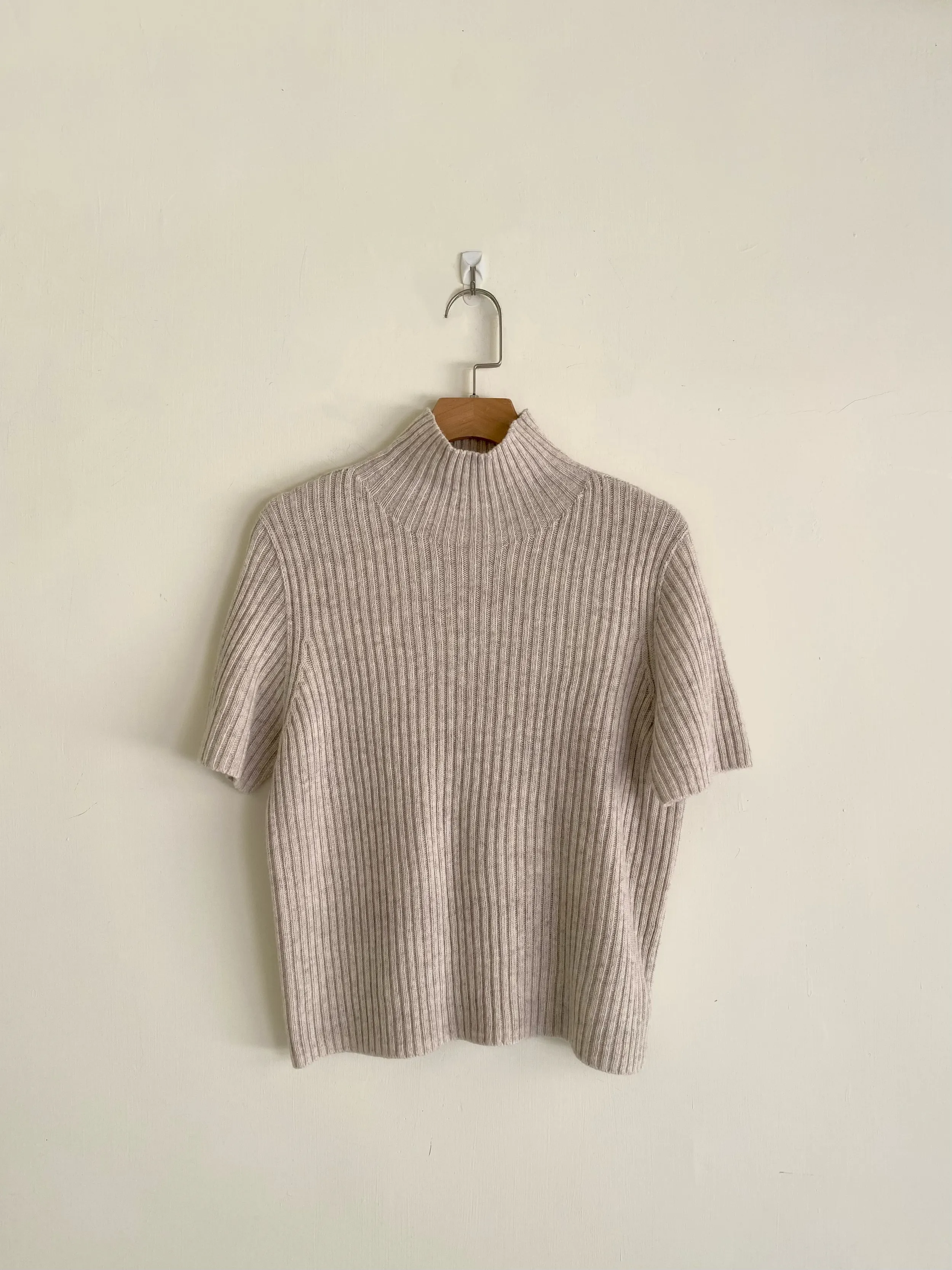 F20 #日常百搭 半高領坑條短袖羊毛衣