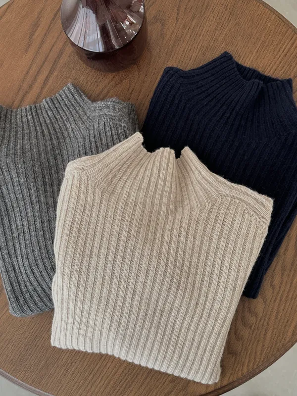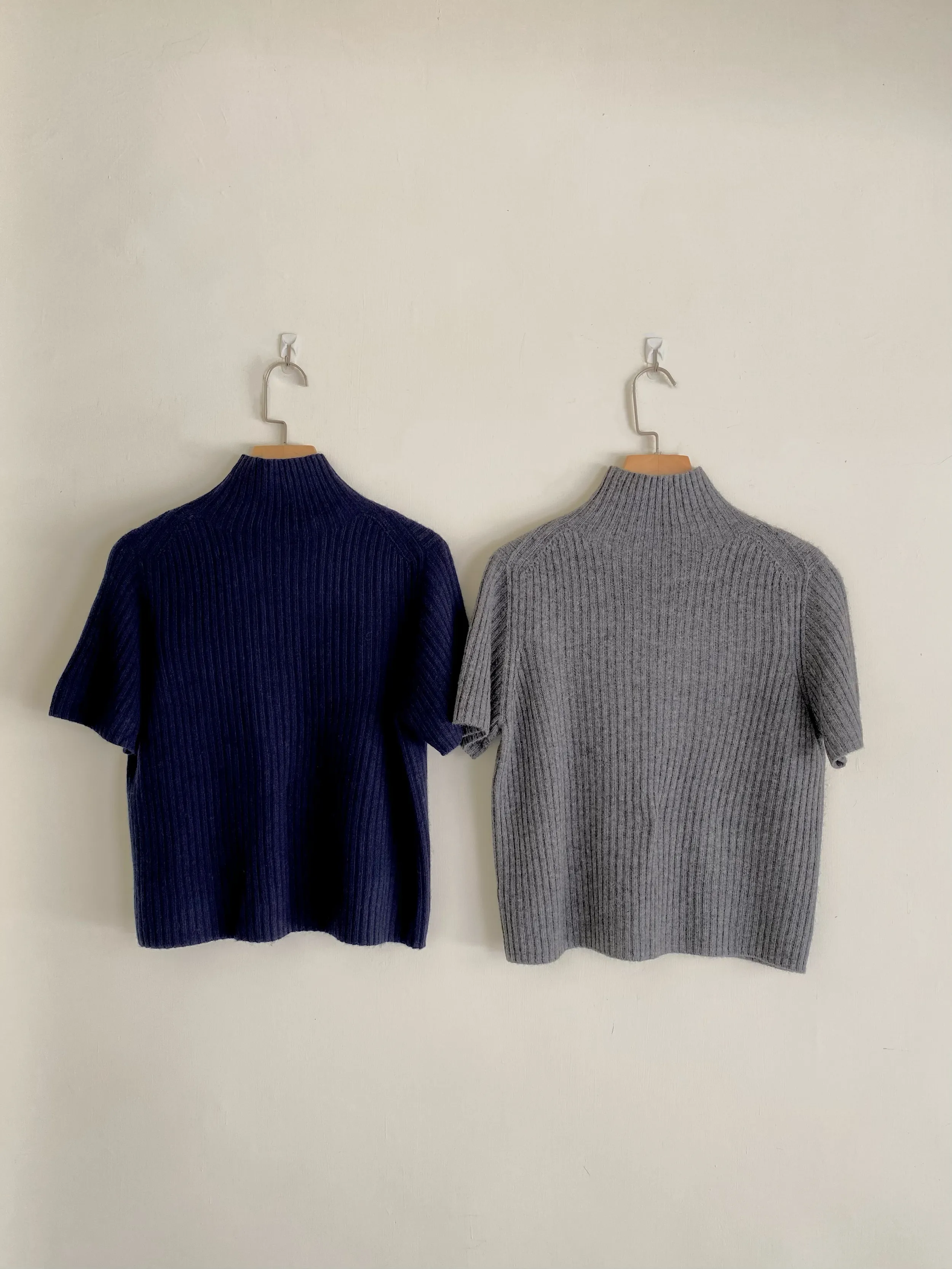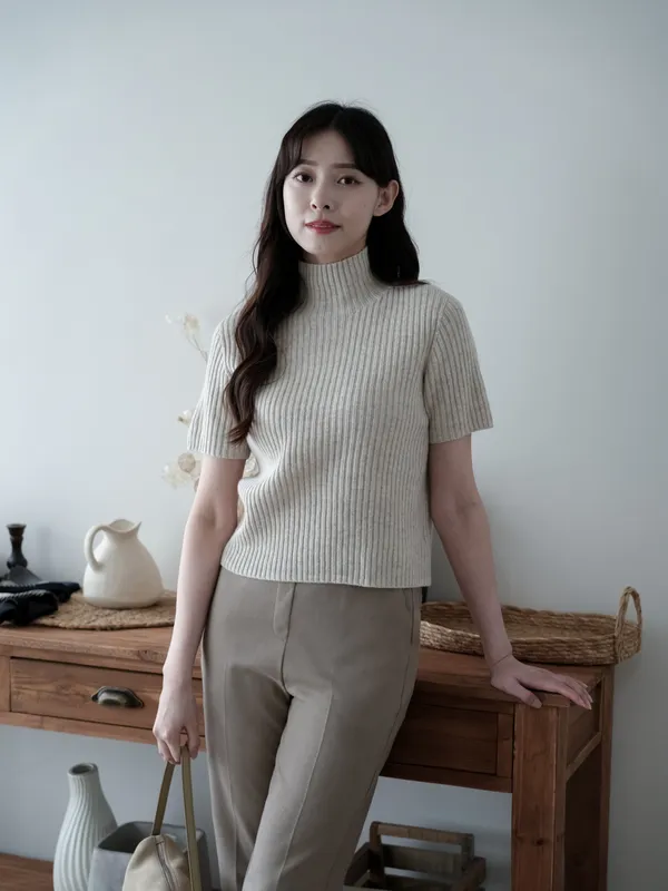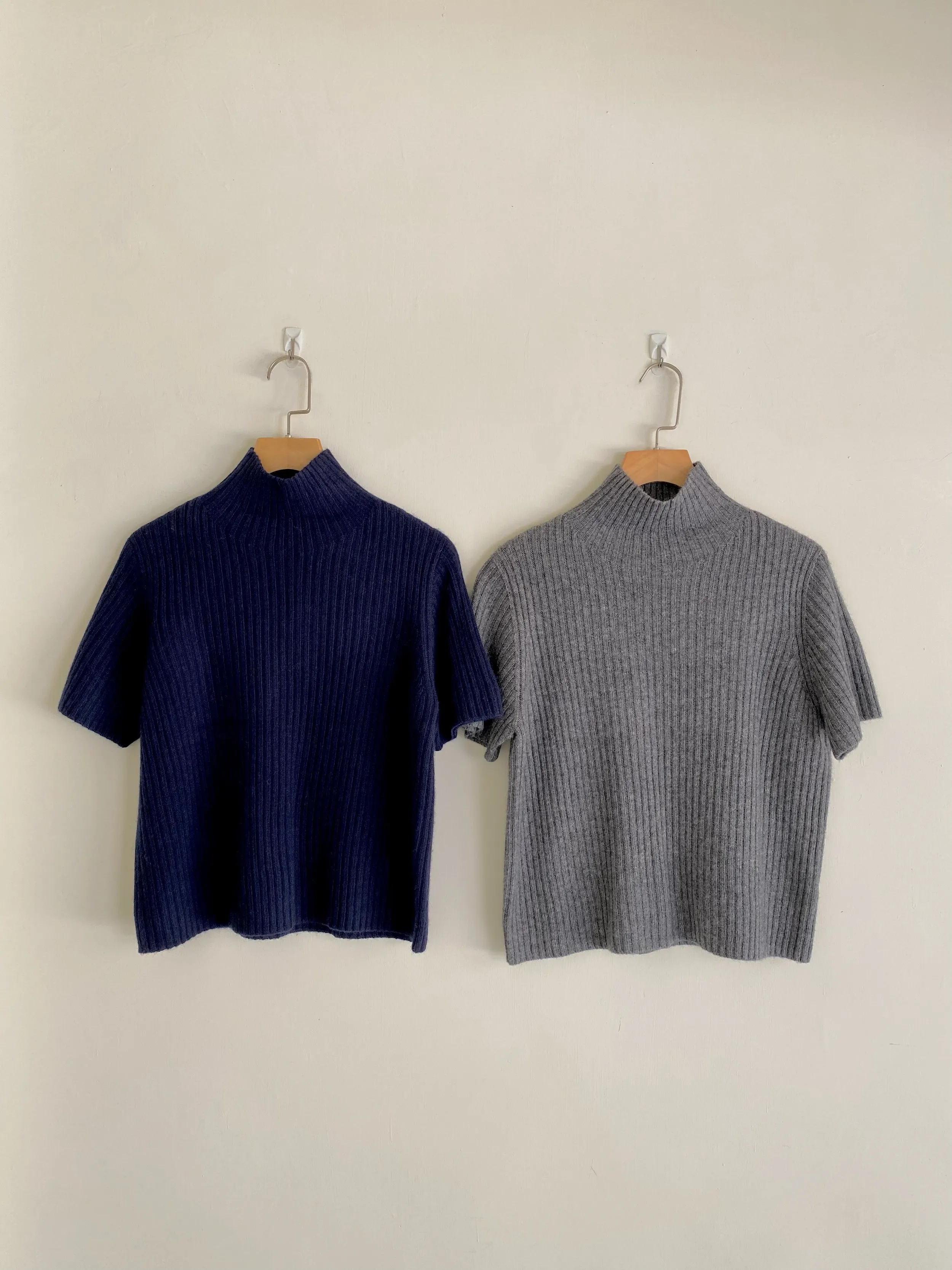 F20 #日常百搭 半高領坑條短袖羊毛衣
