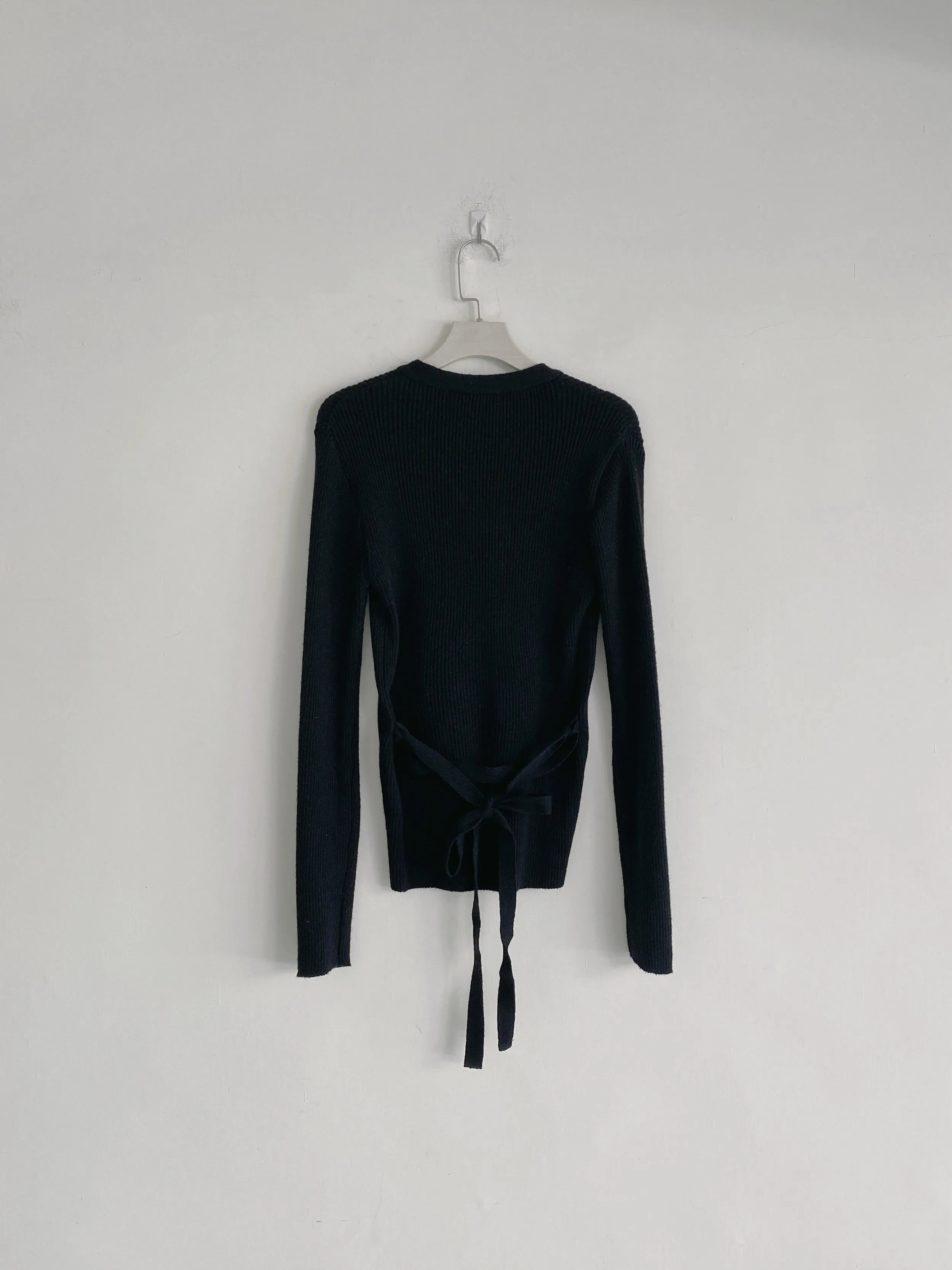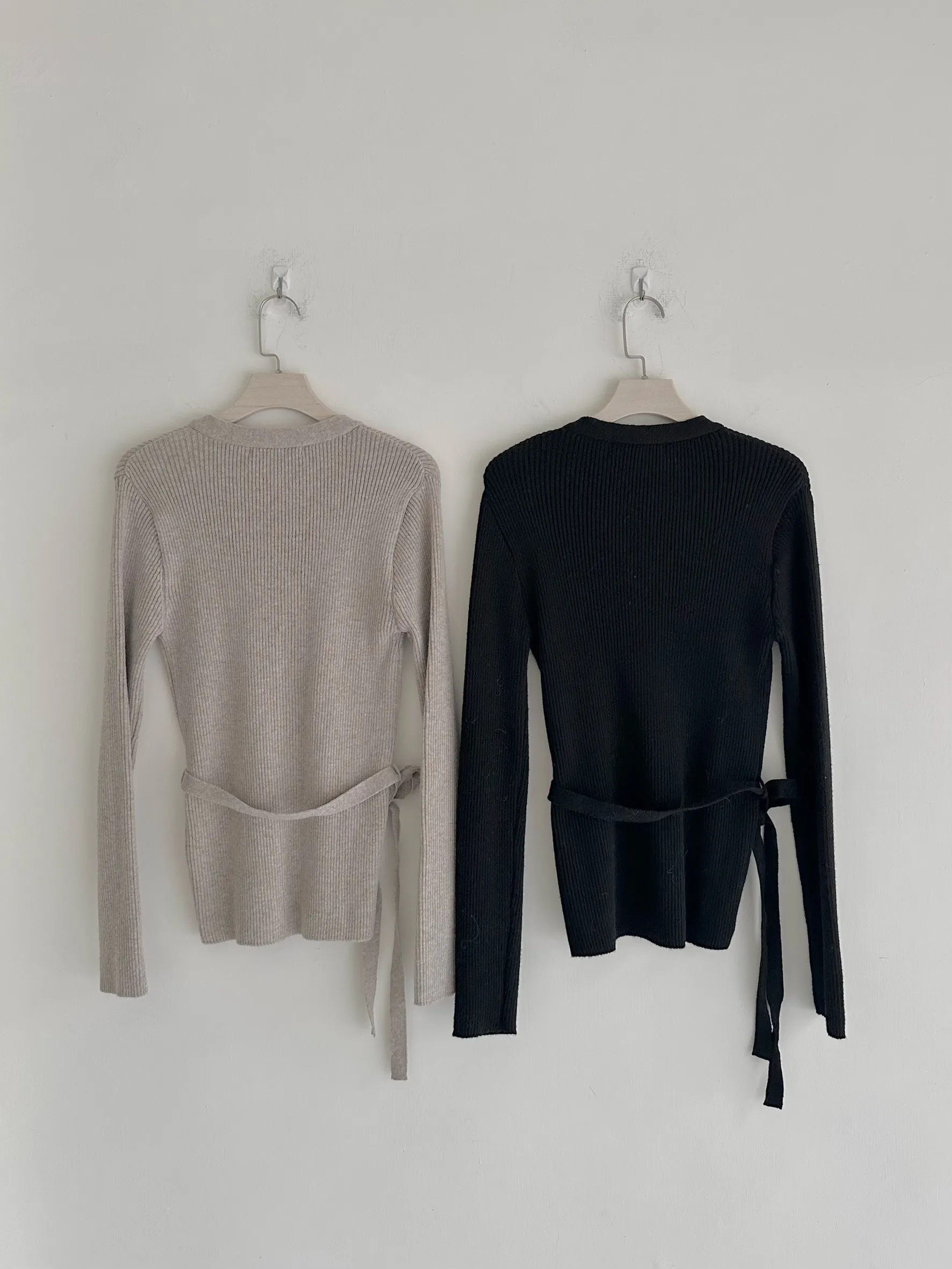 F22 #綁出氣質 羊毛直坑條綁帶上衣
