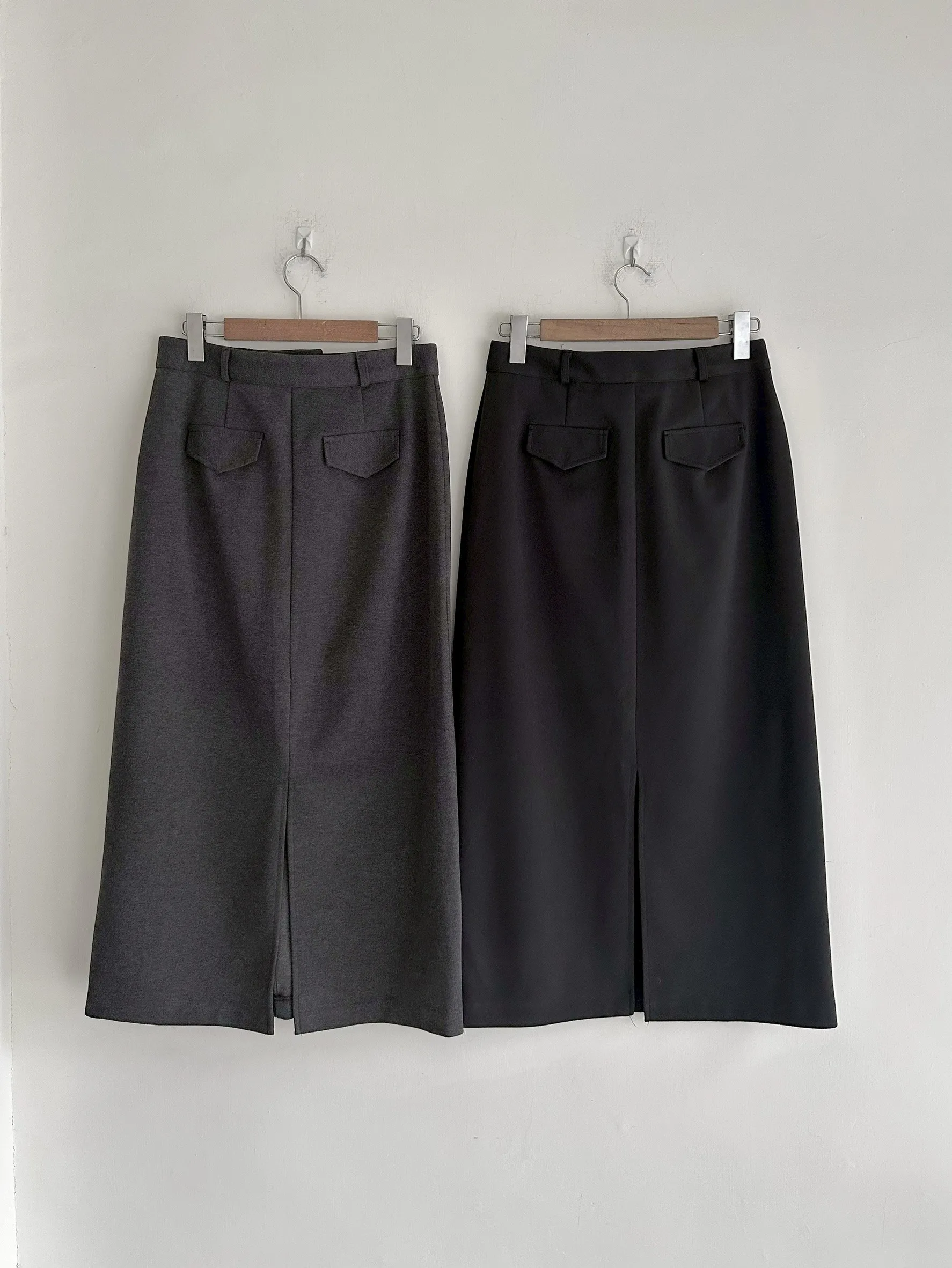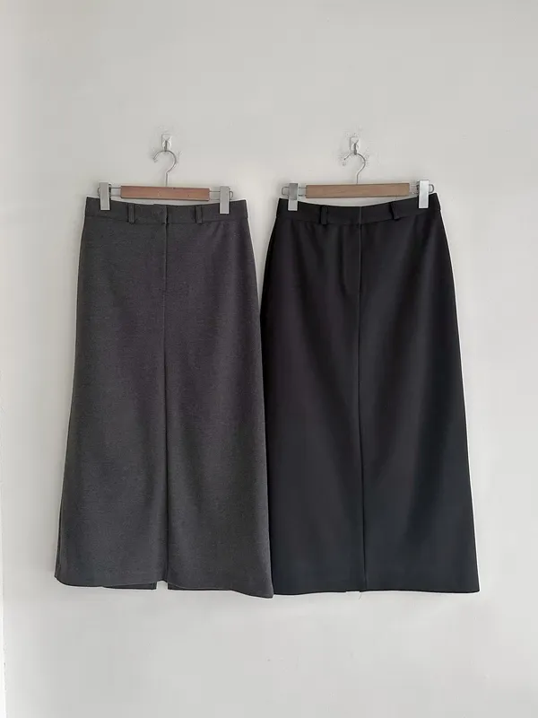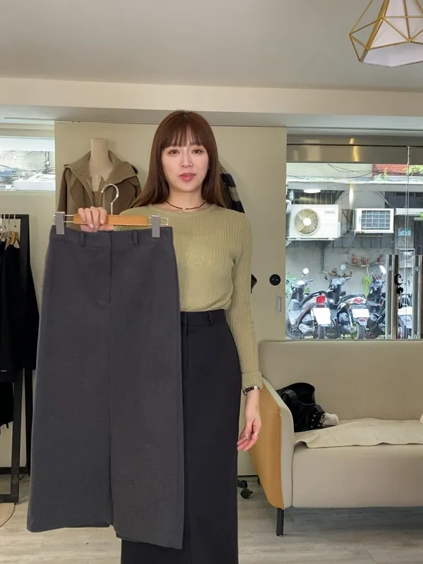 F37 隱藏釦後開岔直筒長裙