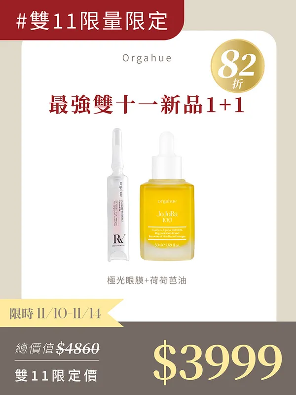 最強雙十一新品1+1|逆時光全效能抗皺眼部精華+黃金女神奇蹟修護荷荷巴油