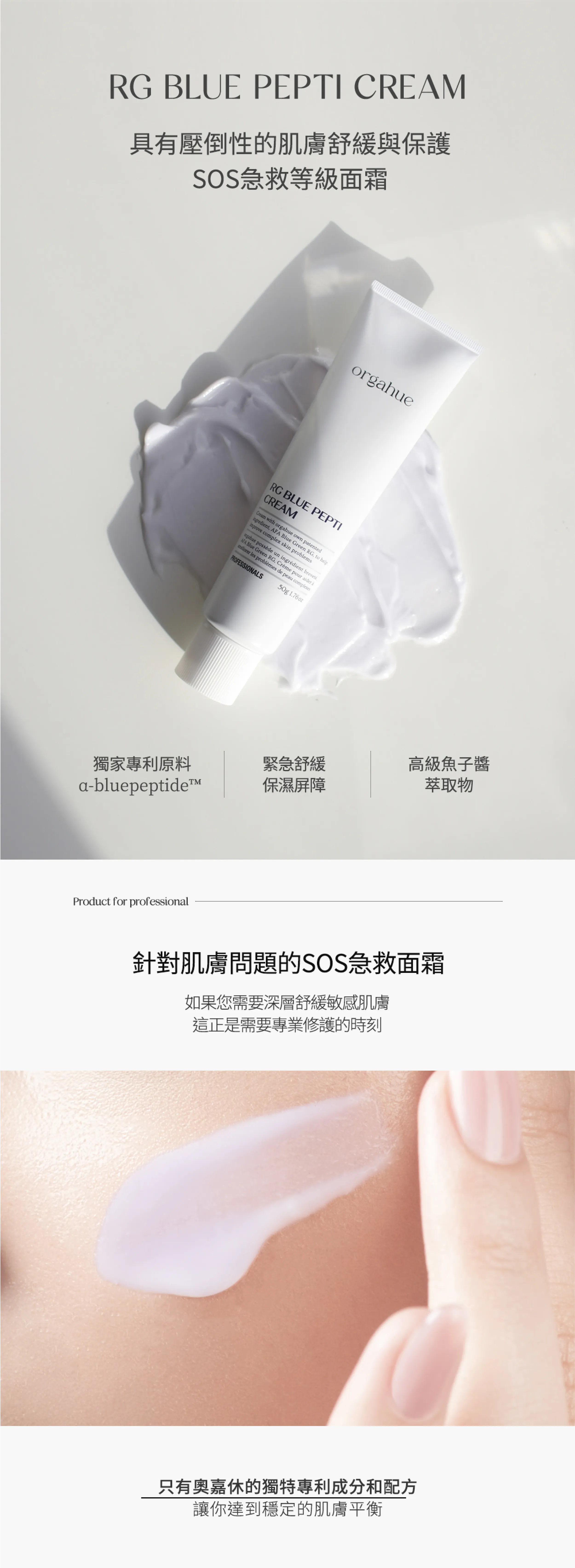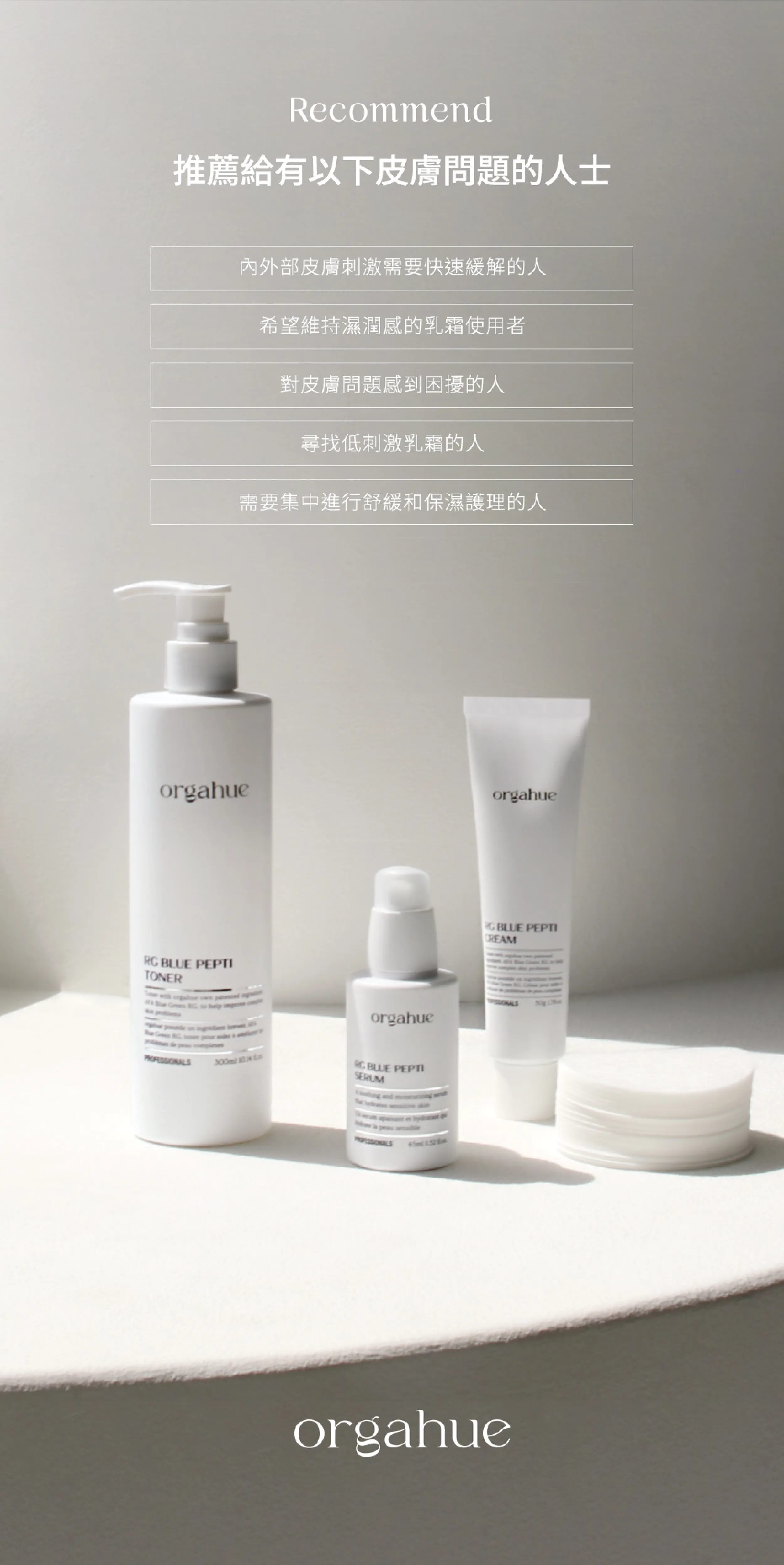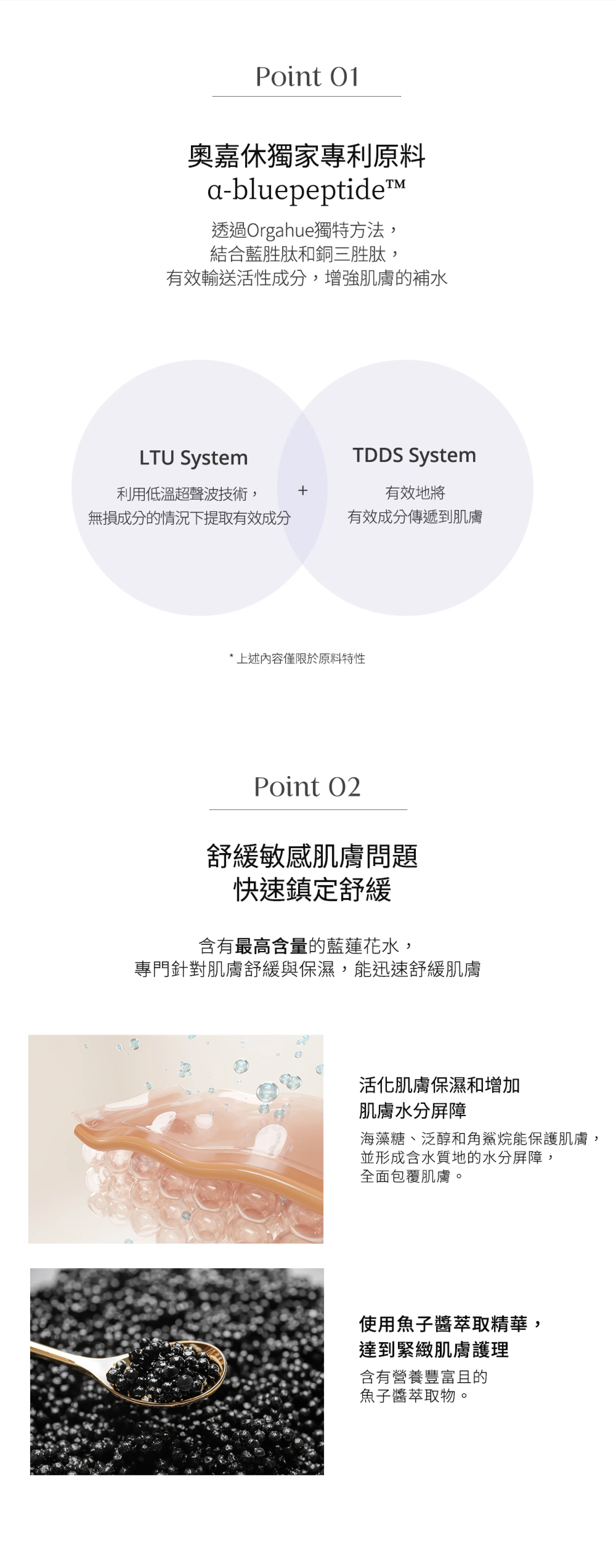內含Orgahue專利藍胜肽α-blue peptideTM激活防止肌膚老化