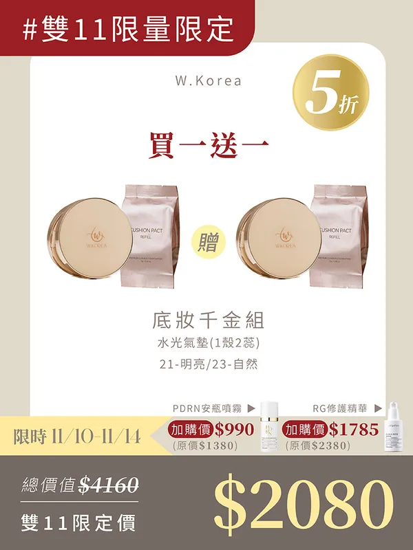 底妝千金組|#最猛氣墊 韓國奢華輕透水光持久膠原氣墊(1殼2蕊) 買一送一
